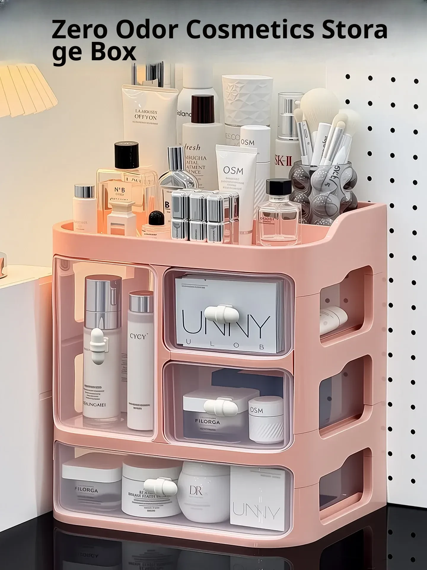 Large Capacity Makeup Organizer Box – Dustproof Vanity Storage for Skincare and Cosmetics – Elegant and Luxurious Lipstick Holder and Display Cabinet