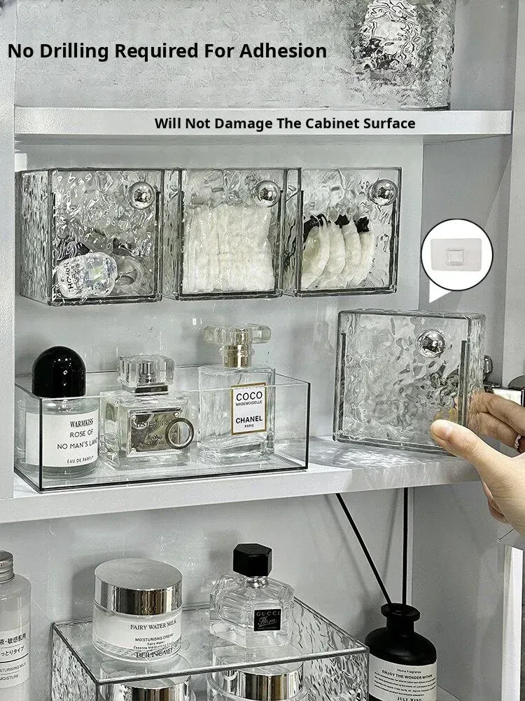Cotton Swab Storage Box - Wall-Mounted Makeup Remover Cotton Organizer, No Drilling Needed, Perfect for Bathrooms, Lipstick and Hair Tie Holder, Space-Saving Vanity Solution
