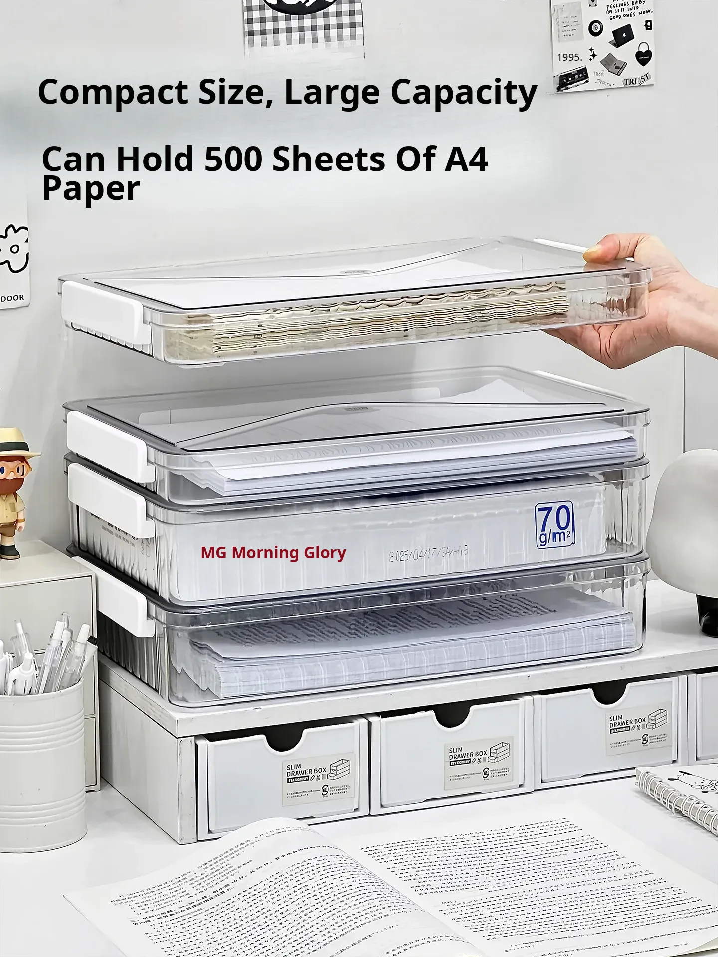 Large Capacity Desktop Organizer Box for Students - Perfect for A4 Paper and Documents, Portable Acrylic Storage Solution for Efficient File Management