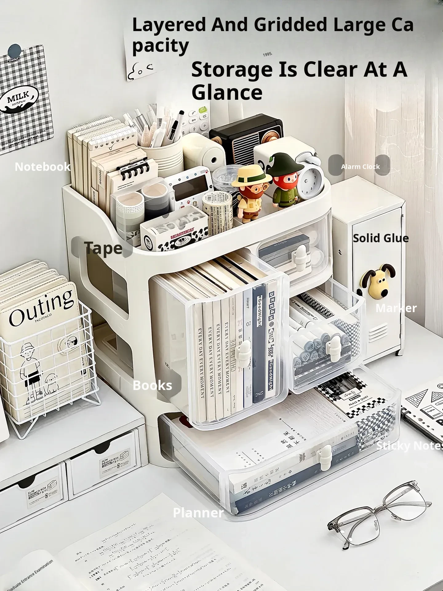 Transparent Desk Organizer with Drawers - Large Capacity Storage Box for Stationery and Books, Perfect for Sorting Small Items and Keeping Your Workspace Tidy!