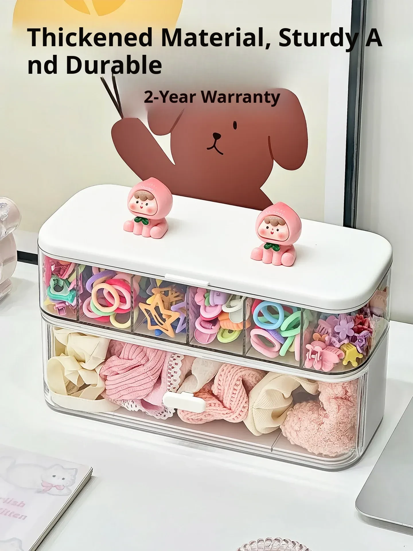 Large Capacity Desktop Hair Accessory Organizer Box for Girls - Tiered Storage for Hair Ties, Clips, and Scrunchies, Perfect for Kids and Adults to Keep Your Hair Accessories Neatly Arranged!
