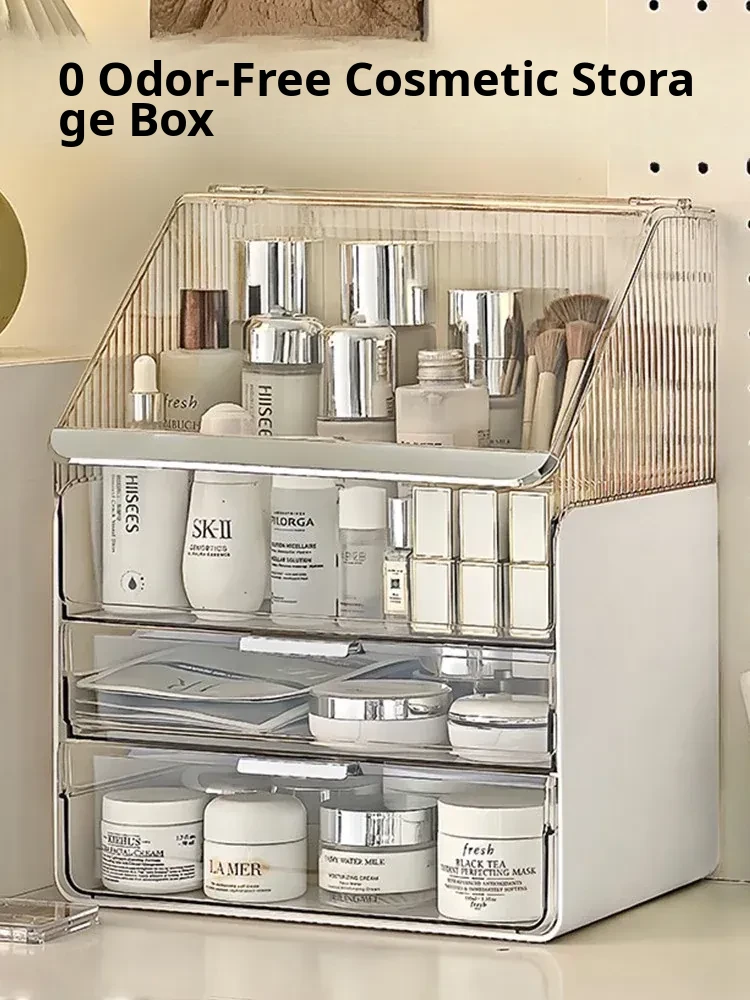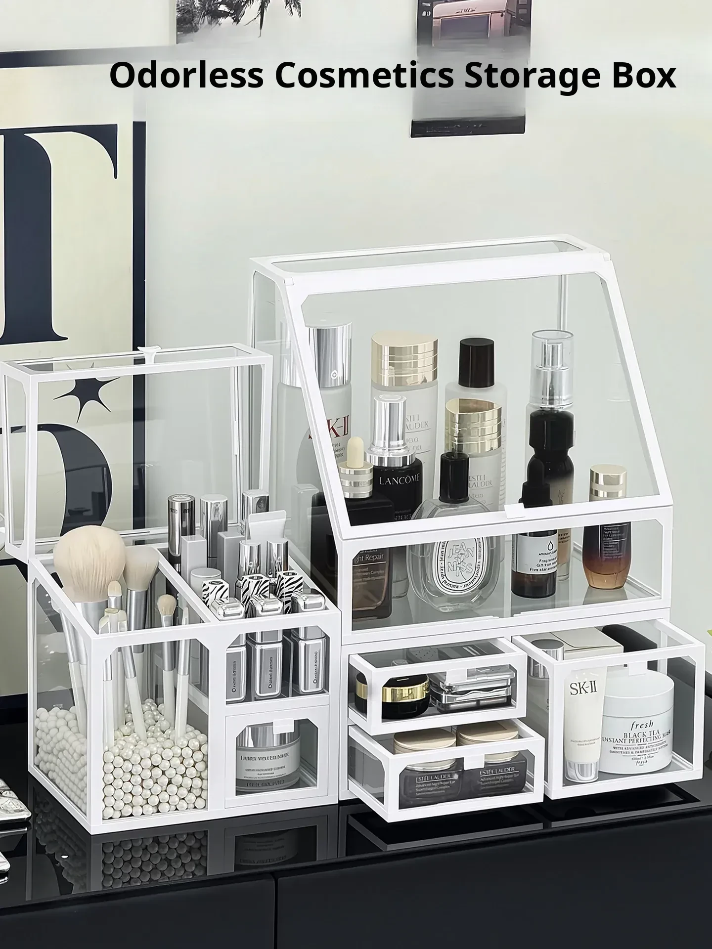 Elegant Cosmetic Organizer Box - Large Capacity Makeup Storage for Vanity, Dustproof Skincare and Perfume Holder, Perfect for Lipstick and Beauty Essentials.