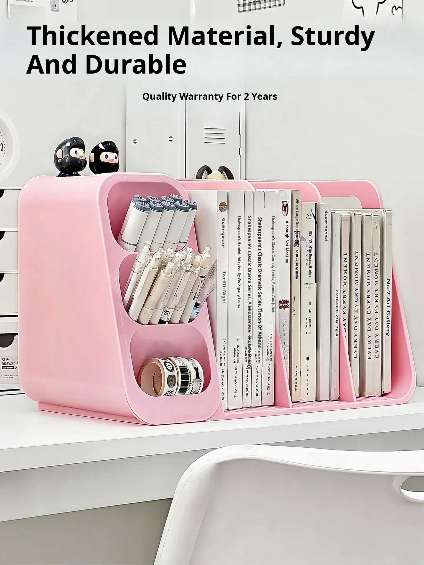 Multilayer Book Storage Box for Middle and High School Students - Stylish Desktop Book Stand with Drawers and Pencil Holder for Kids' Room Organization