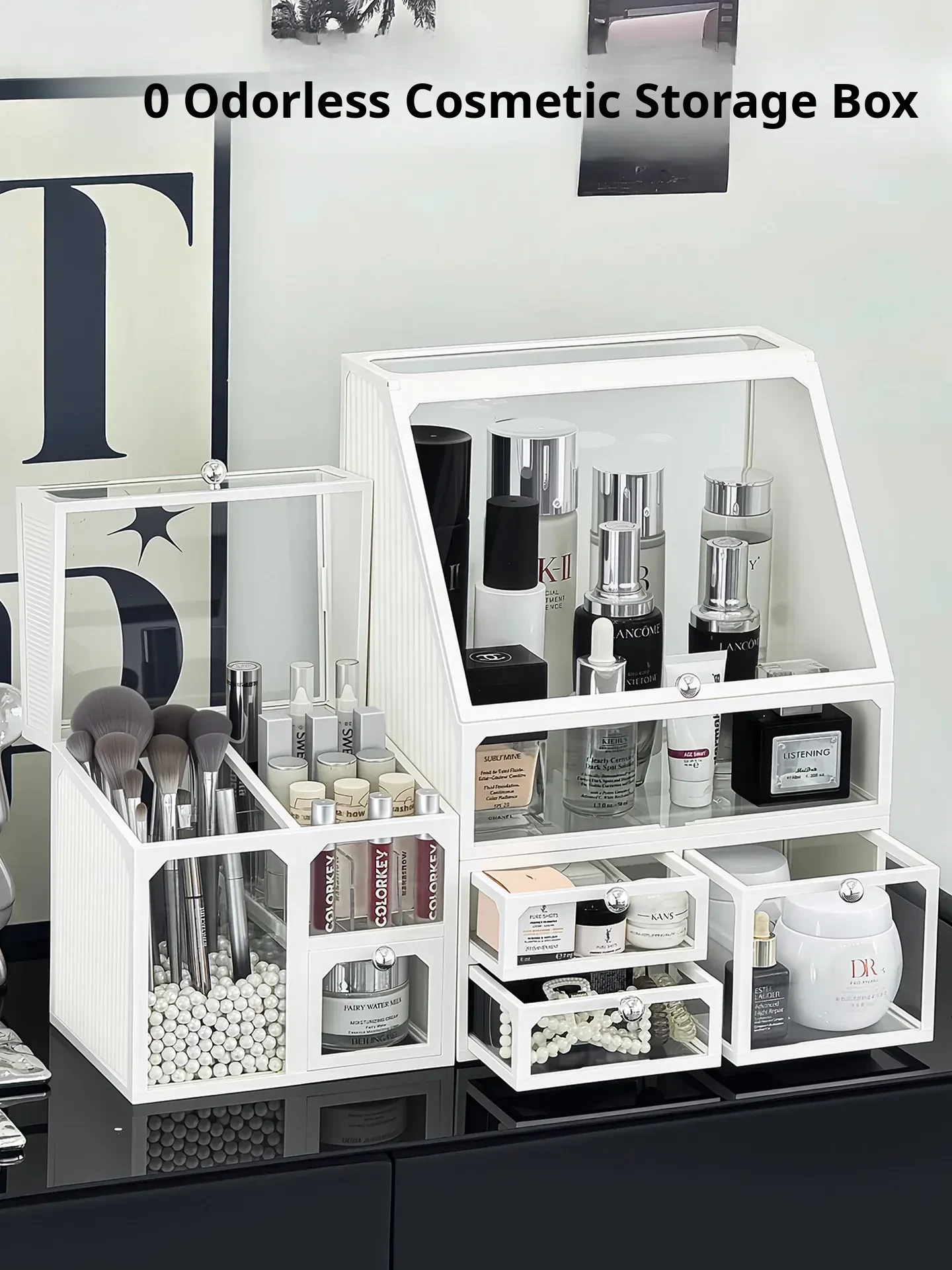 Premium Makeup Organizer Box - Stylish Desktop Vanity Storage for Cosmetics, Dustproof Skincare and Lipstick Display Rack, Perfect for Your Beauty Essentials!