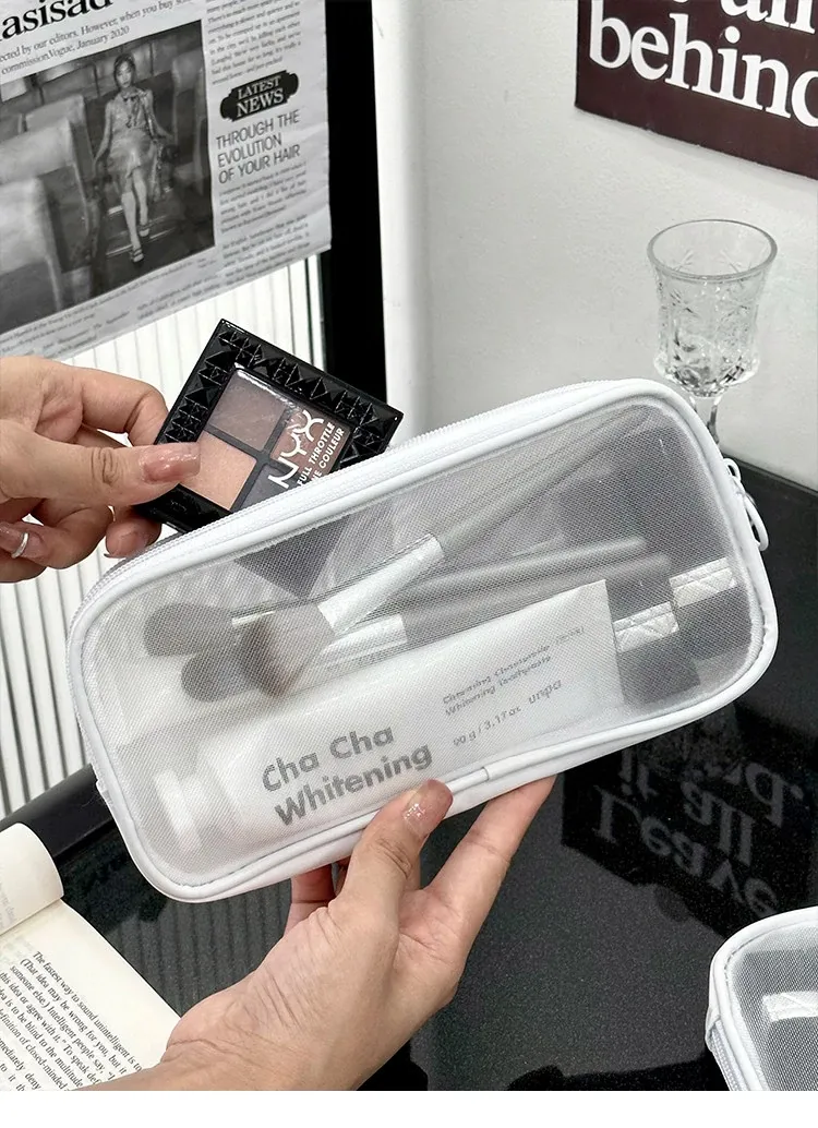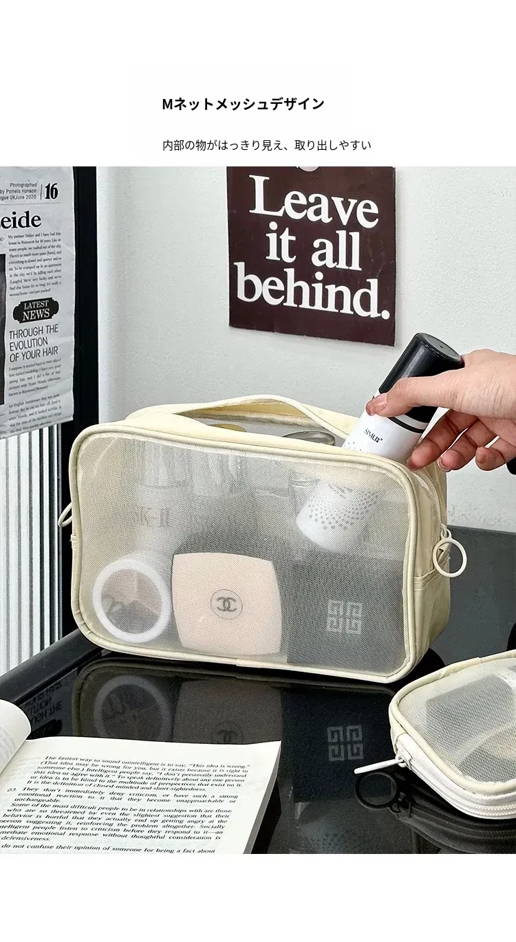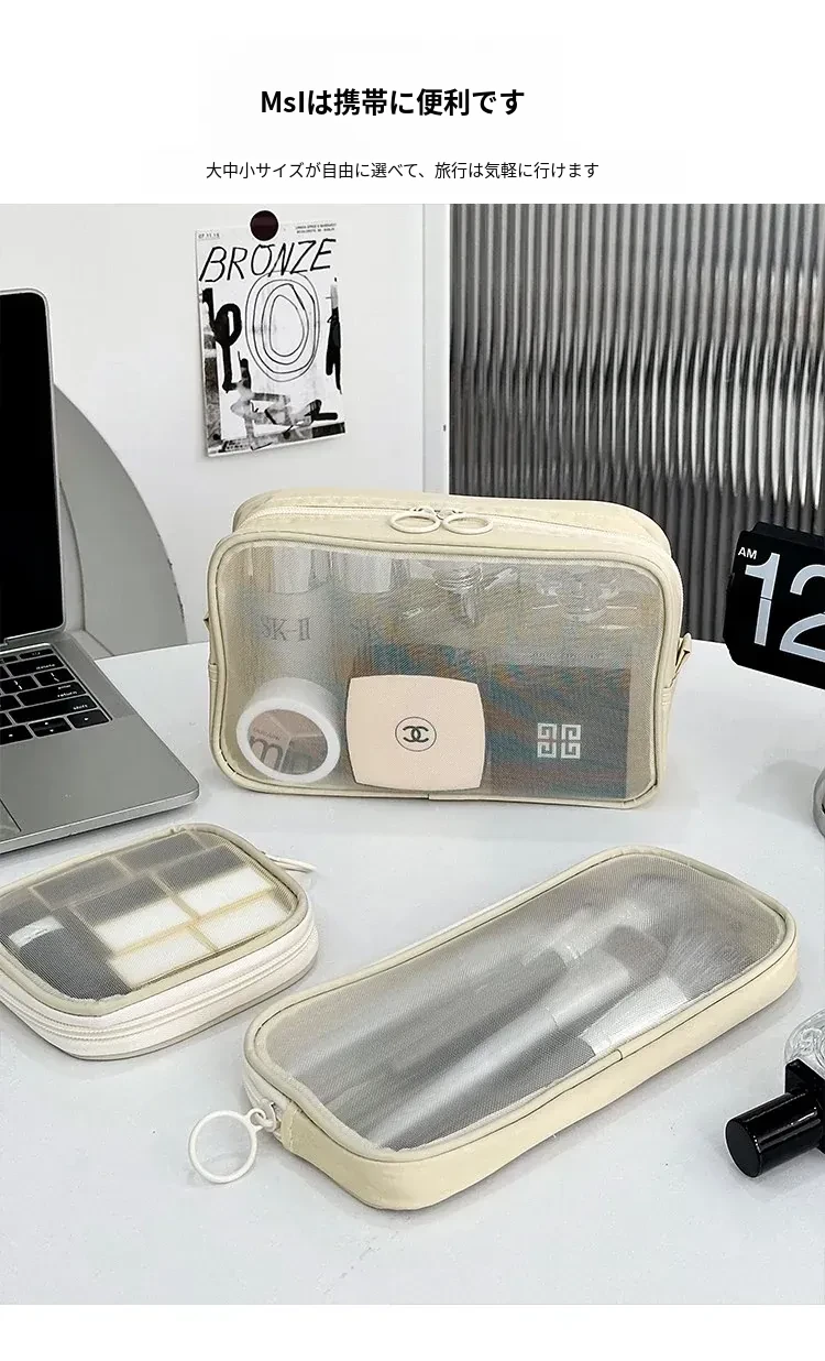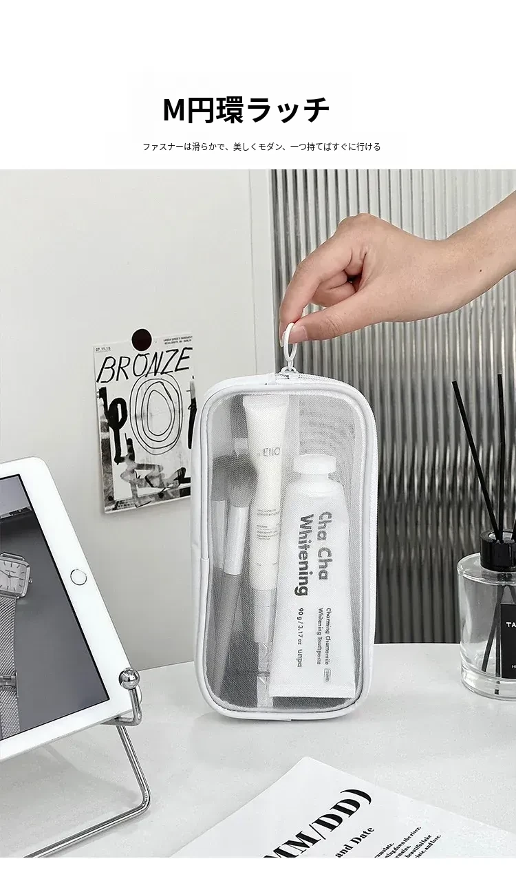 白色のメイクアップポーチ【中】