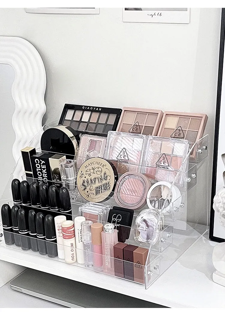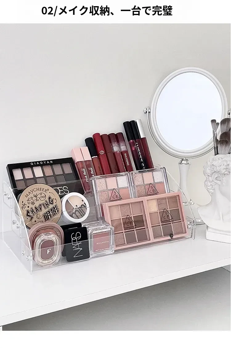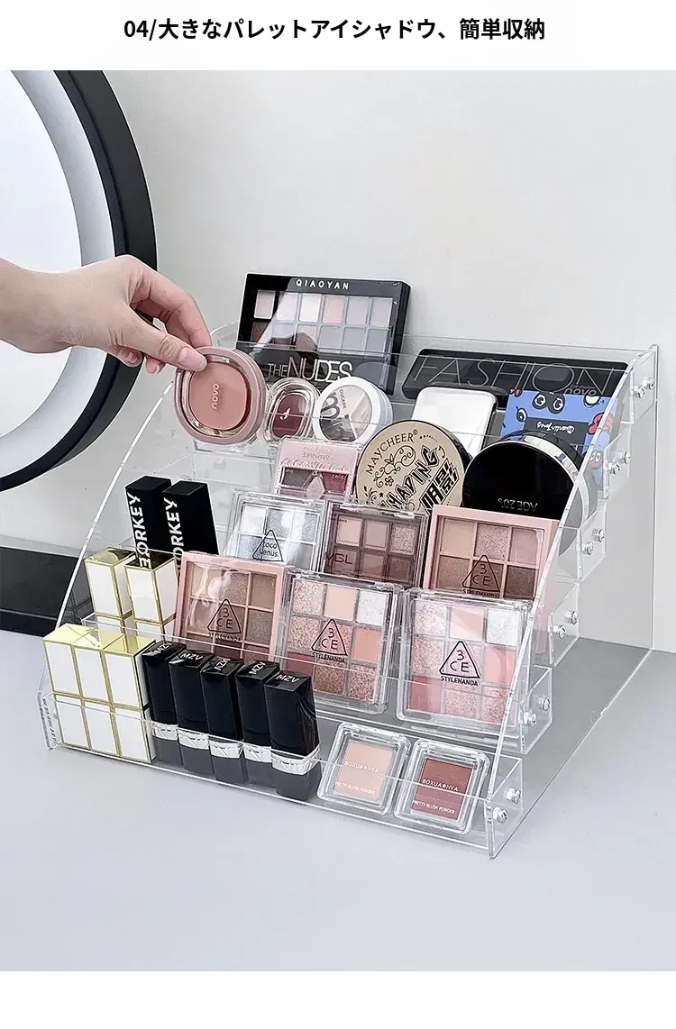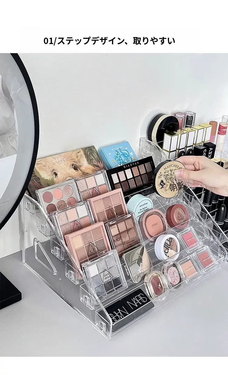 大容量化粧品収納ラック - メイクアップテーブル用アクリル製多層ディスプレイスタンド!口紅やアイシャドウ、チークをすっきり整理して、美しいメイク空間を実現します。おしゃれなデザインで、使いやすさ抜群!