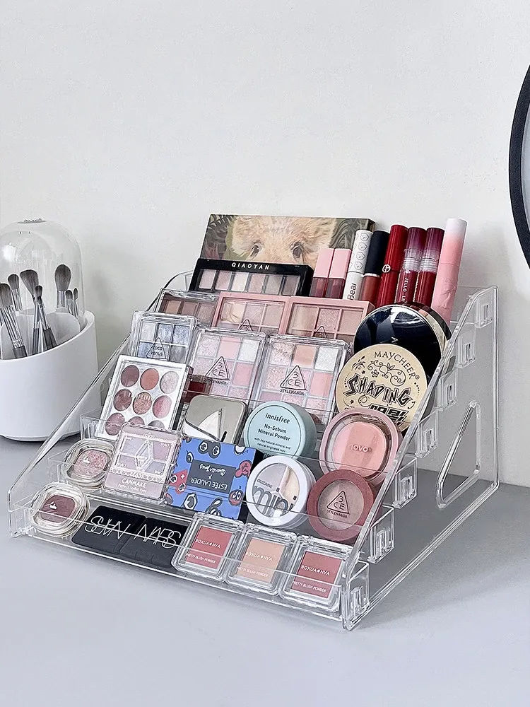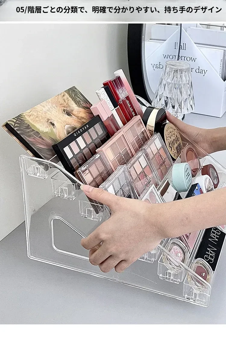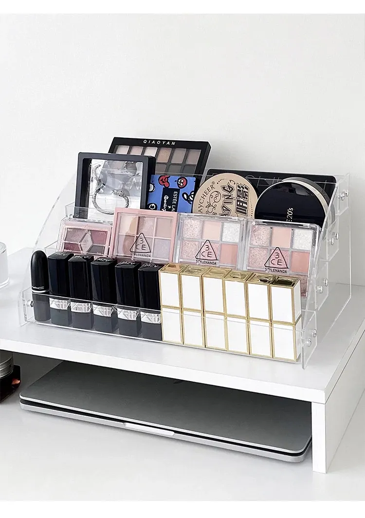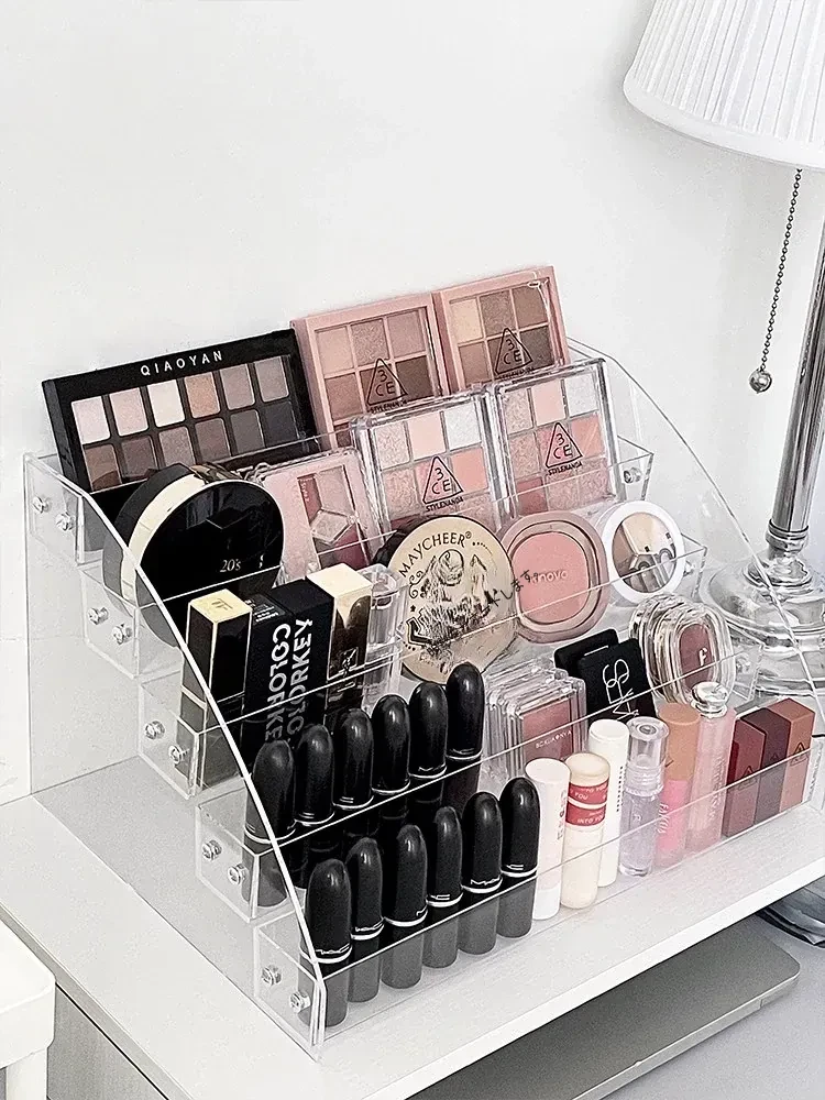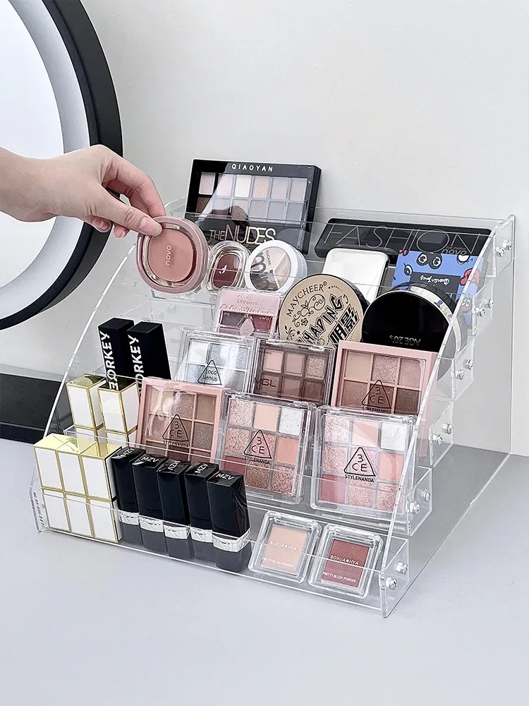大容量化粧品収納ラック - メイクアップテーブル用アクリル製多層ディスプレイスタンド!口紅やアイシャドウ、チークをすっきり整理して、美しいメイク空間を実現します。おしゃれなデザインで、使いやすさ抜群!