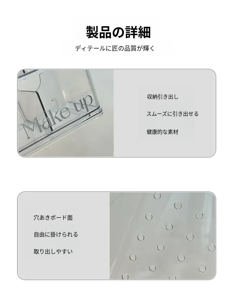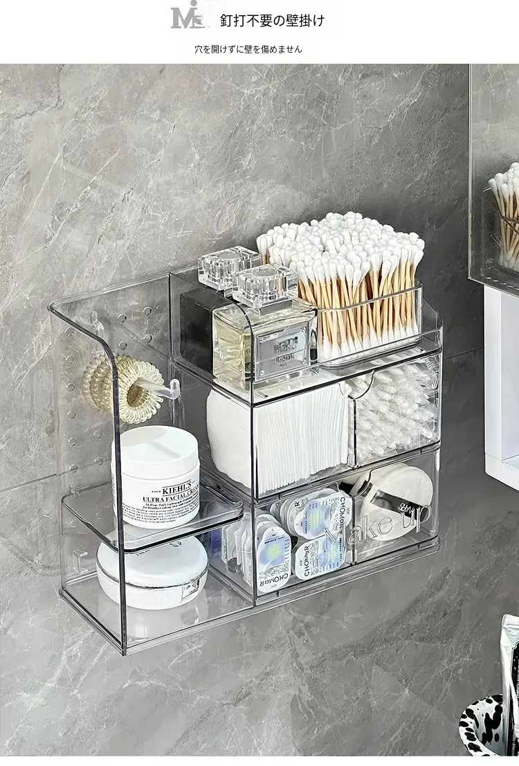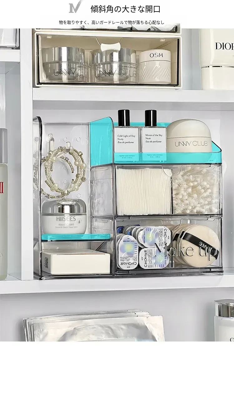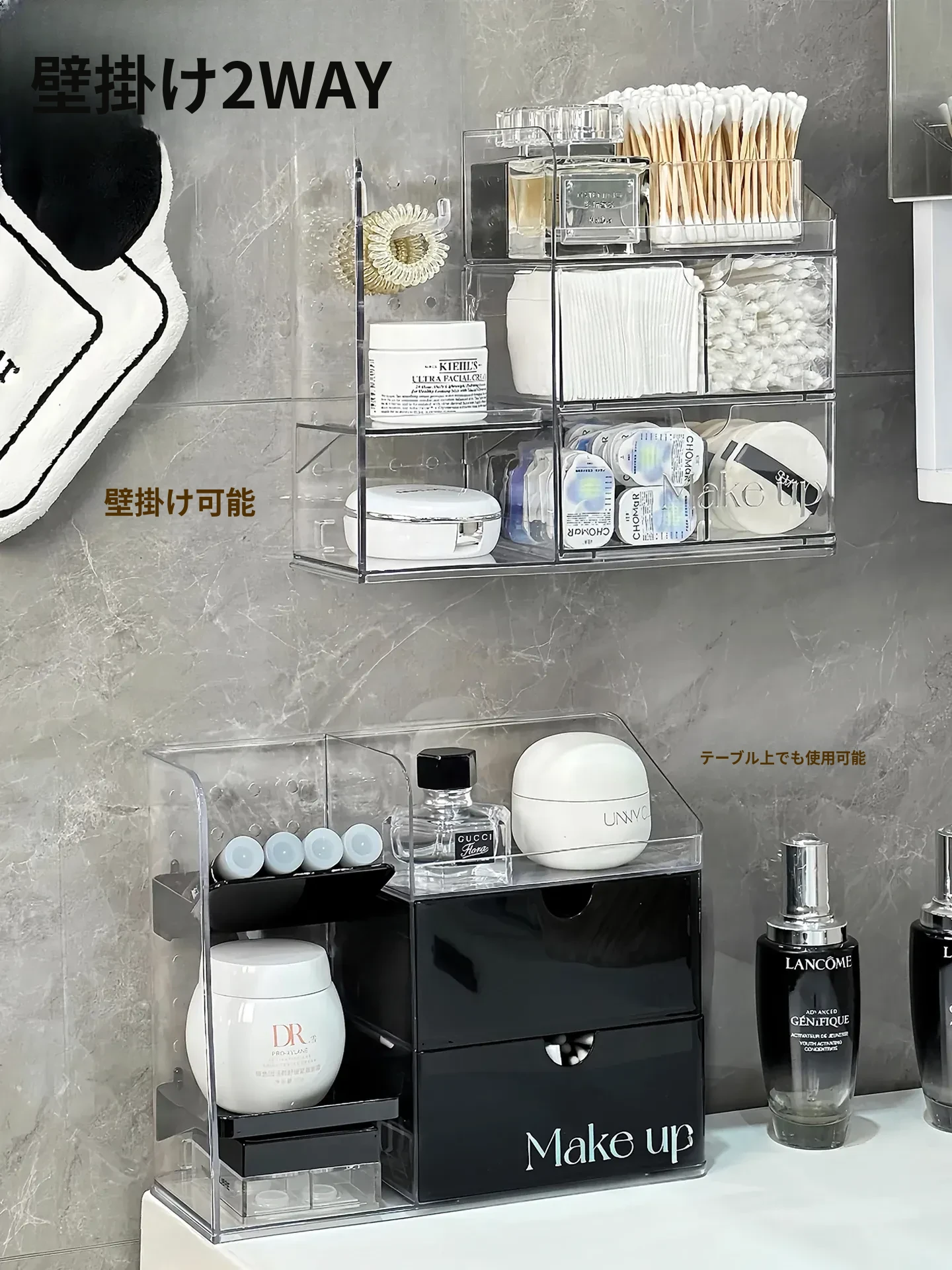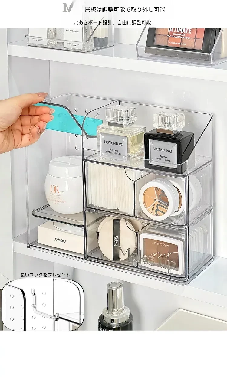 洗面所収納ボックス - 鏡台内蔵の引き出し式仕切り収納ラック!バスルーム化粧品やリップスティックをきれいに整理できる、便利な分層型収納です。あなたの毎日のビューティータイムをもっと楽しく!