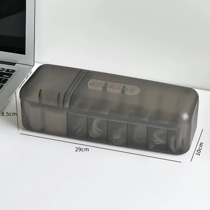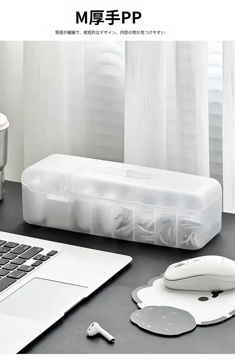 ミストホワイト小サイズ-7分割データケーブル収納ボックス