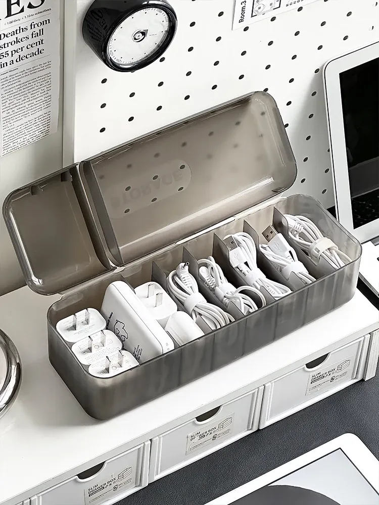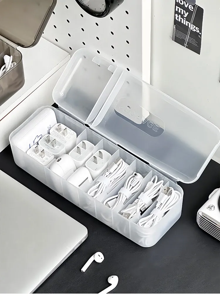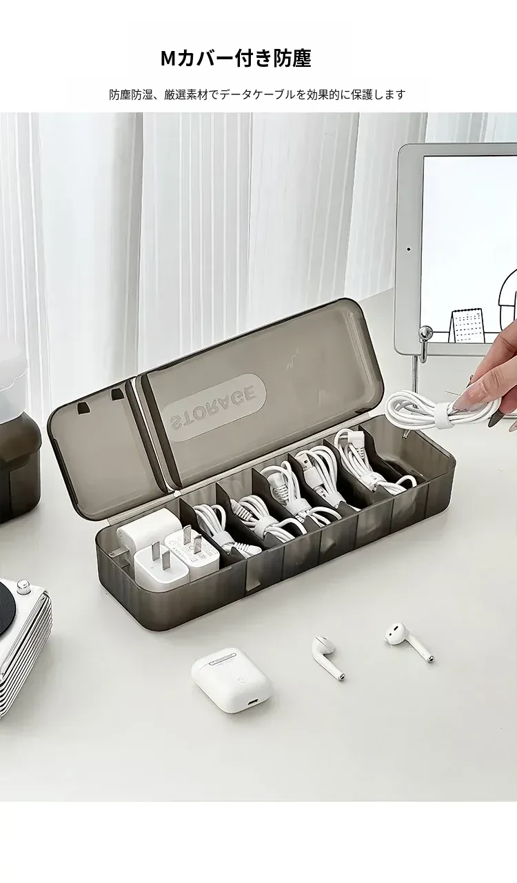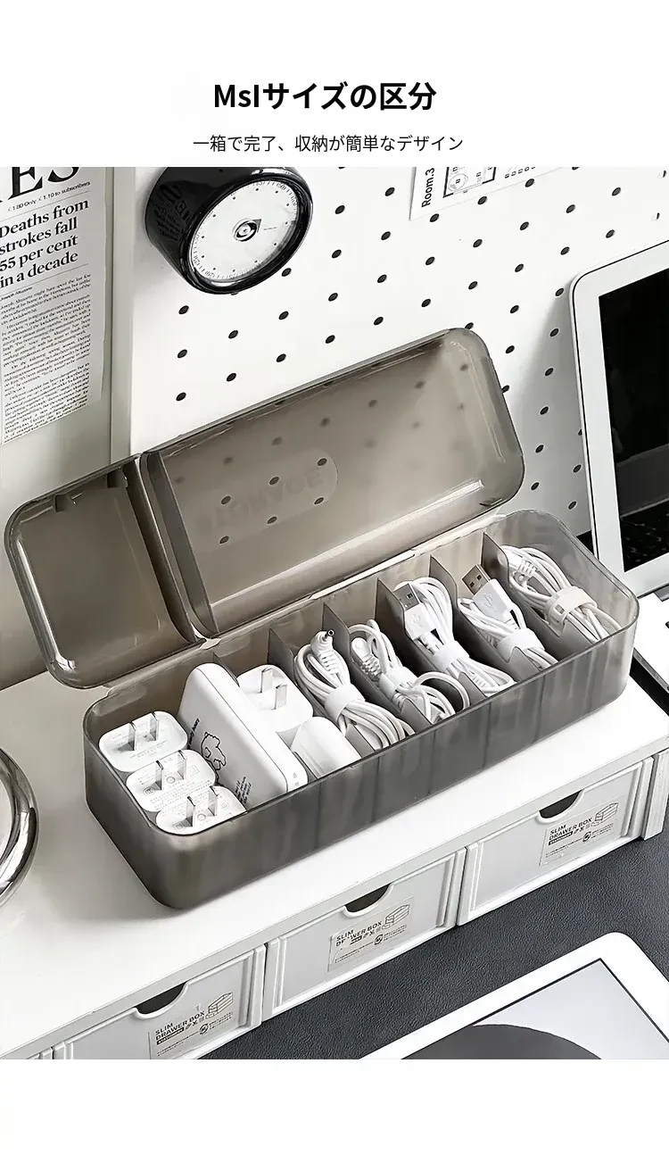 充電ケーブル整理ボックス - デスク周りをスッキリ!スマホや電源ケーブルをすっきり収納できる便利な整理グッズ。絡まりを防ぎ、いつでも快適に使えます!