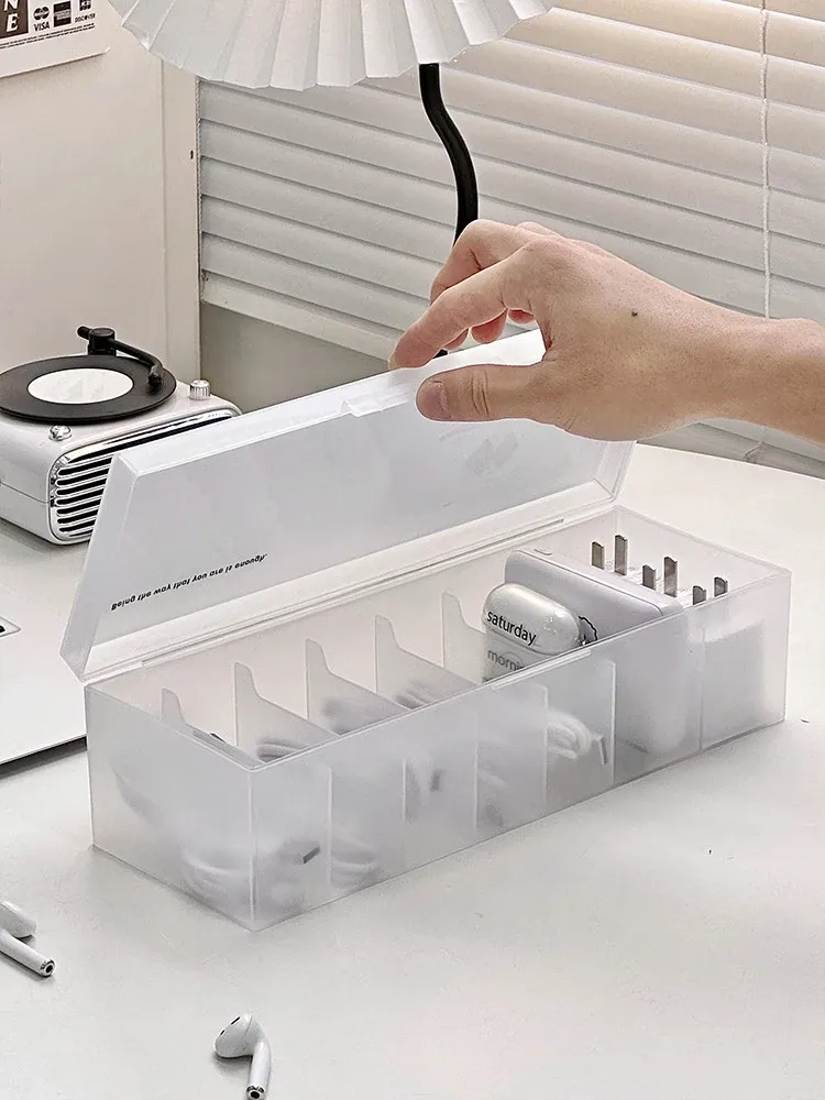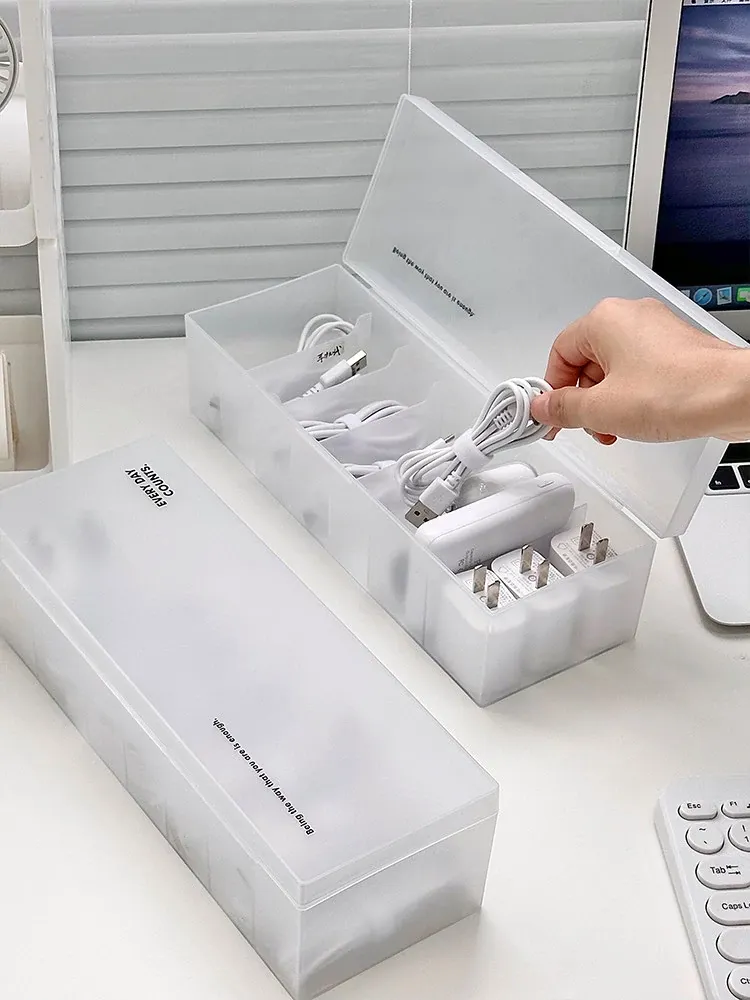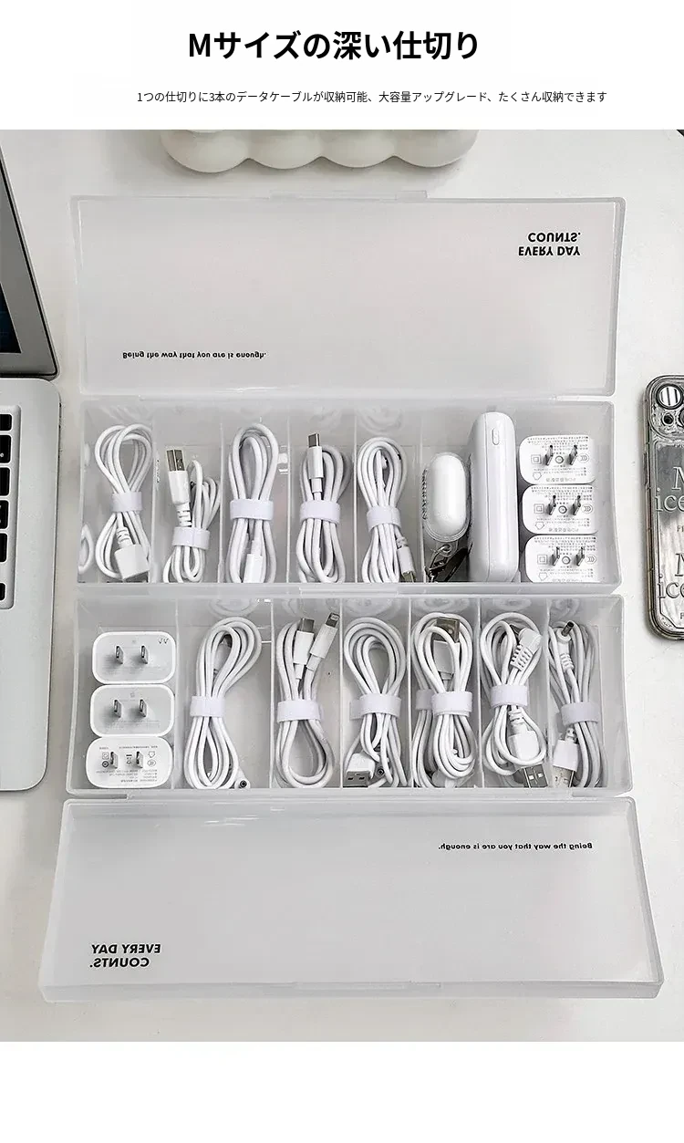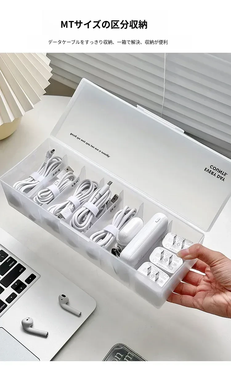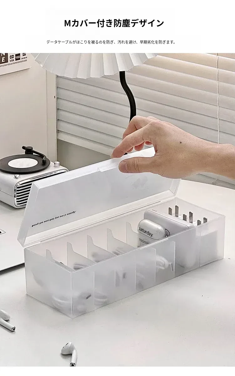 データケーブル収納ボックス - 電源充電ケーブル、スマホケーブルをすっきり整理!デスク上の充電器も快適に収納できる魔法の整理アイテム!おしゃれで機能的なデザインで、デスク周りをスッキリ整えましょう!