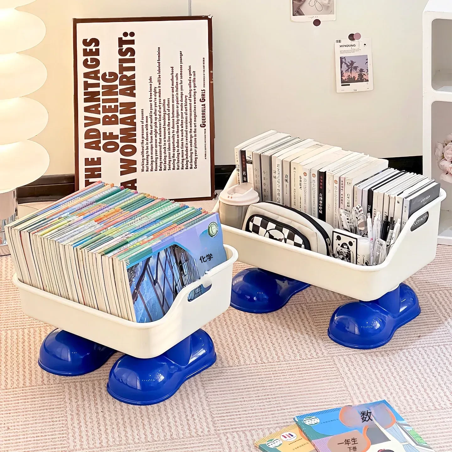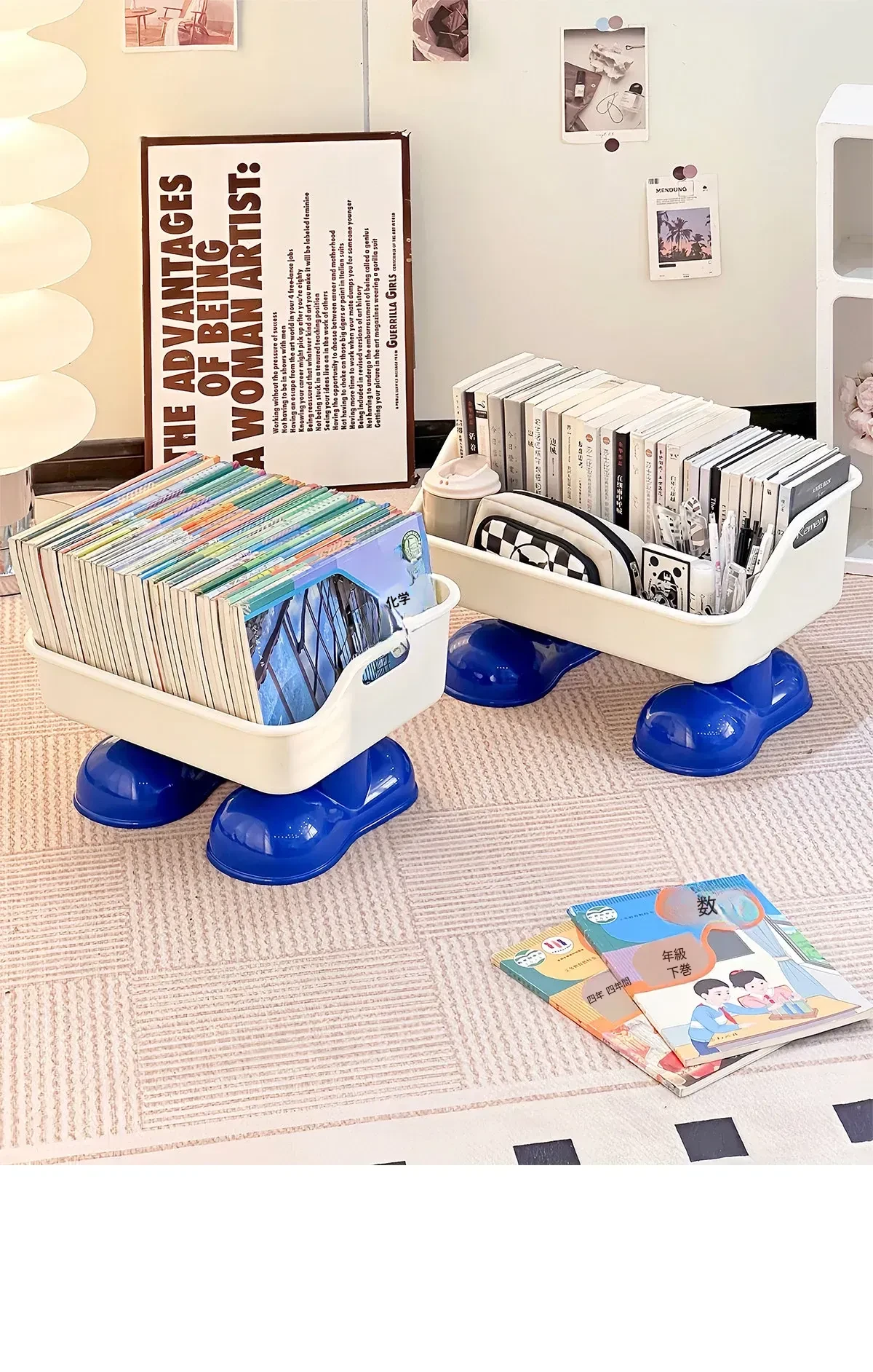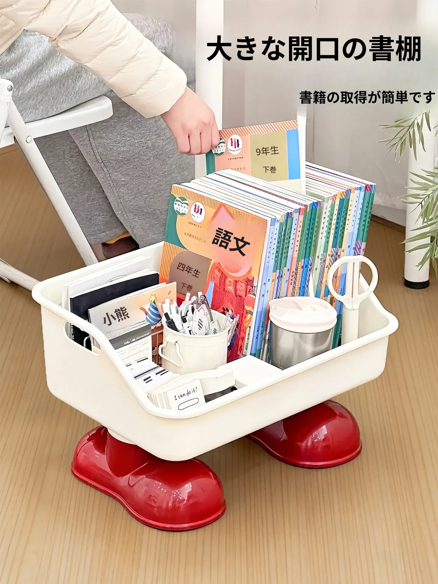 可愛いデザインのキャスター付き書籍スタンド - 学生向けのリュックやスナックを収納できる創造的な移動式収納ラック!机の下にぴったりフィット!