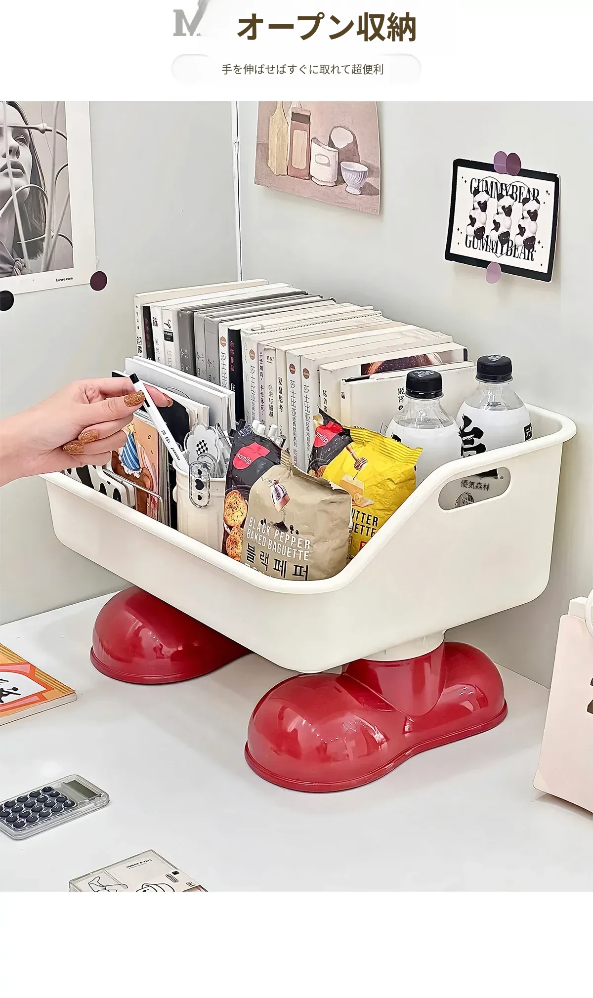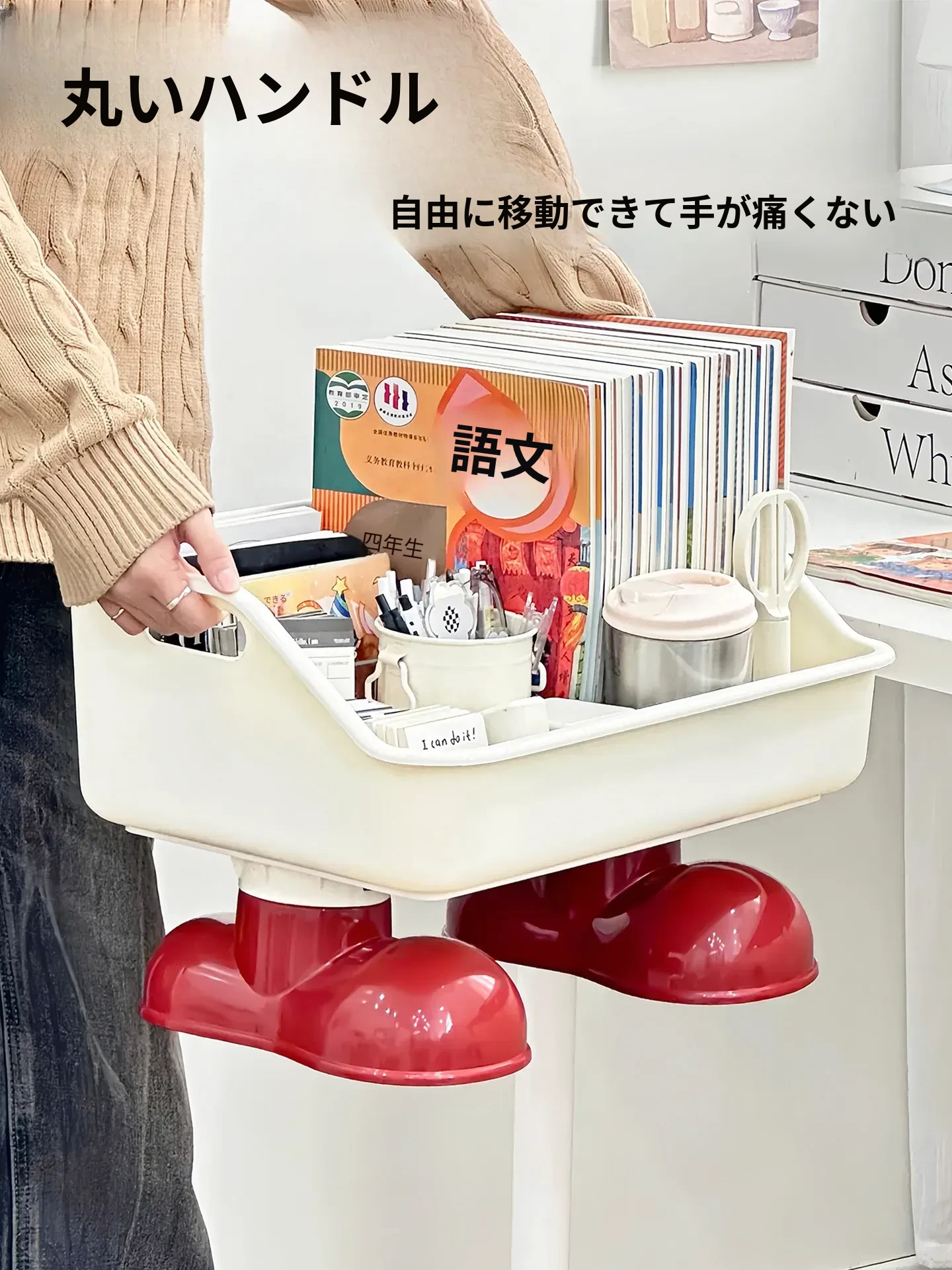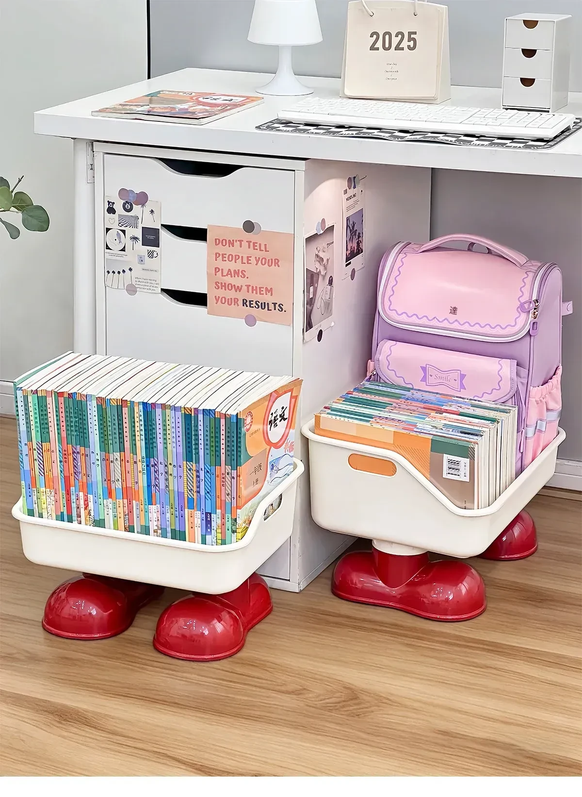 可愛いデザインのキャスター付き書籍スタンド - 学生向けのリュックやスナックを収納できる創造的な移動式収納ラック!机の下にぴったりフィット!