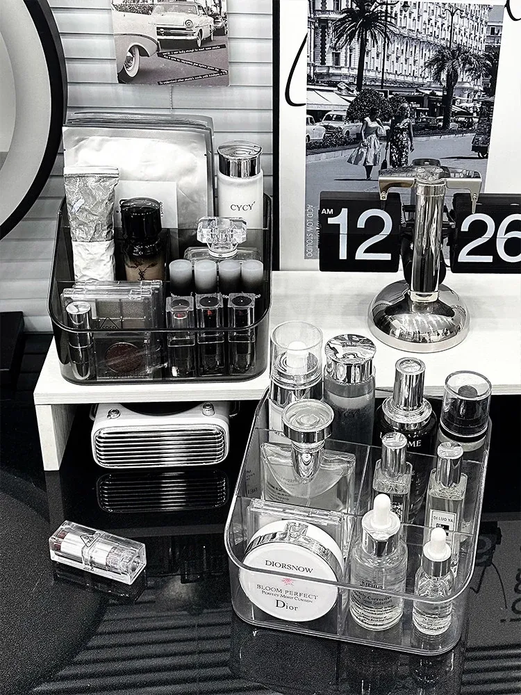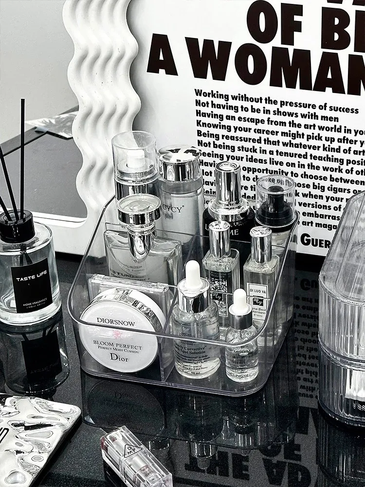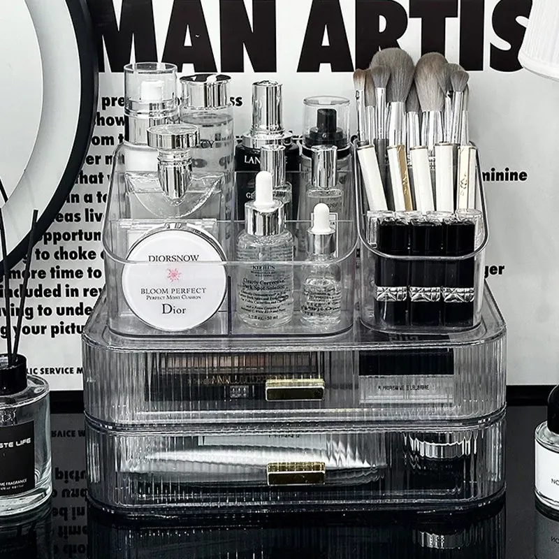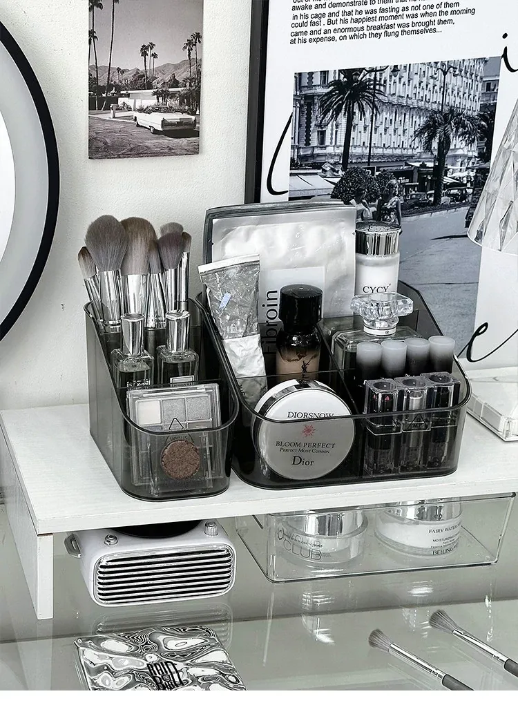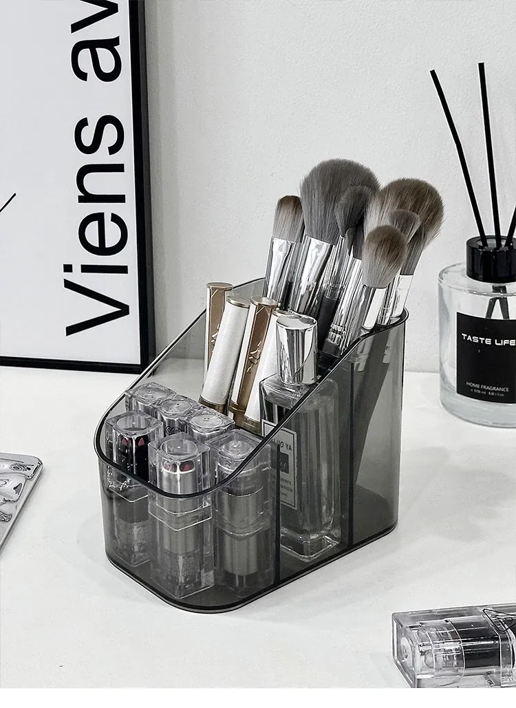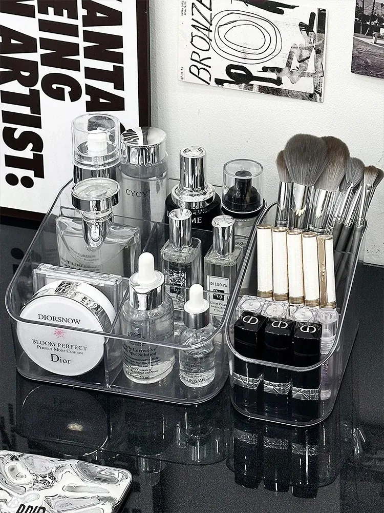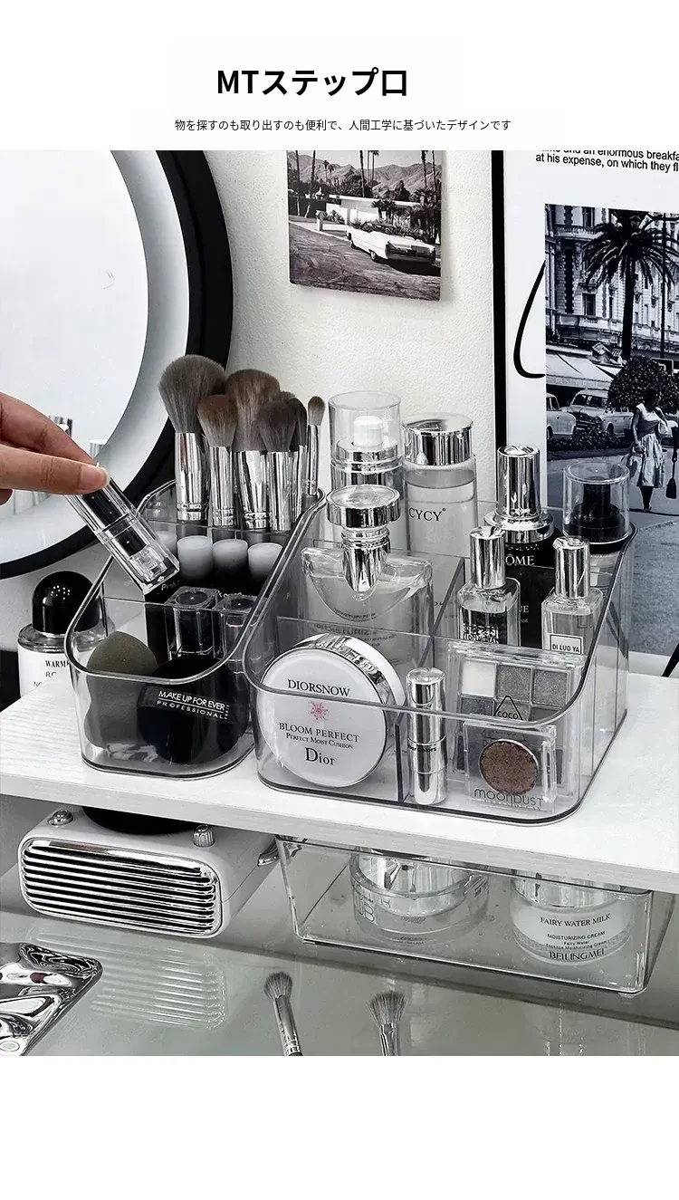 アクリル化粧品収納ボックス - デスク上の高級感を演出!メイクブラシやリップスティックに最適な仕分け収納ケースで、あなたのドレッサーをスタイリッシュに整理整頓!