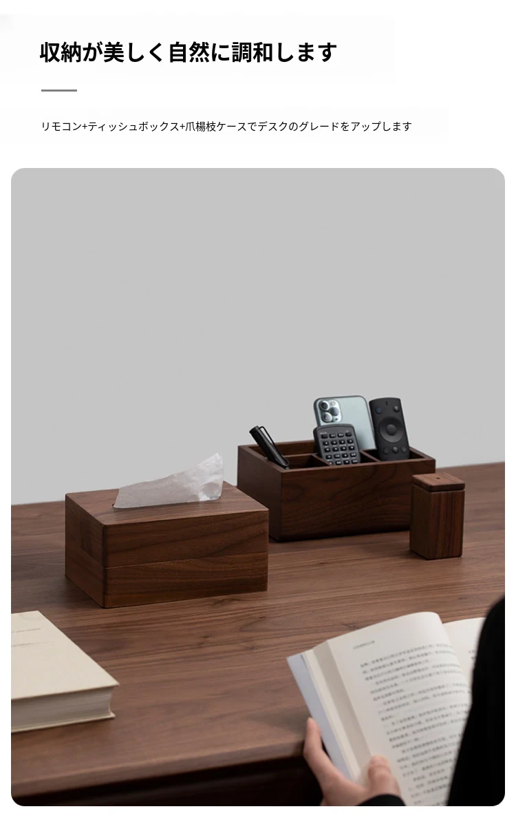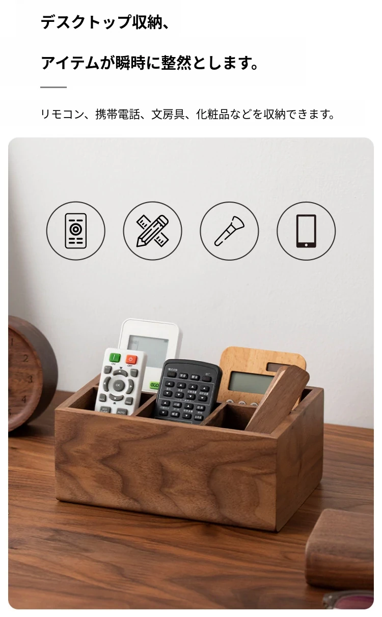 ヴァンハン天然木製リモコン収納ボックス - リビングやテーブル、ベッドサイドに最適!テレビやエアコンのリモコンをスッキリ整理し、雑貨も収納できるおしゃれなアイテムです。お部屋を美しく保ちましょう!