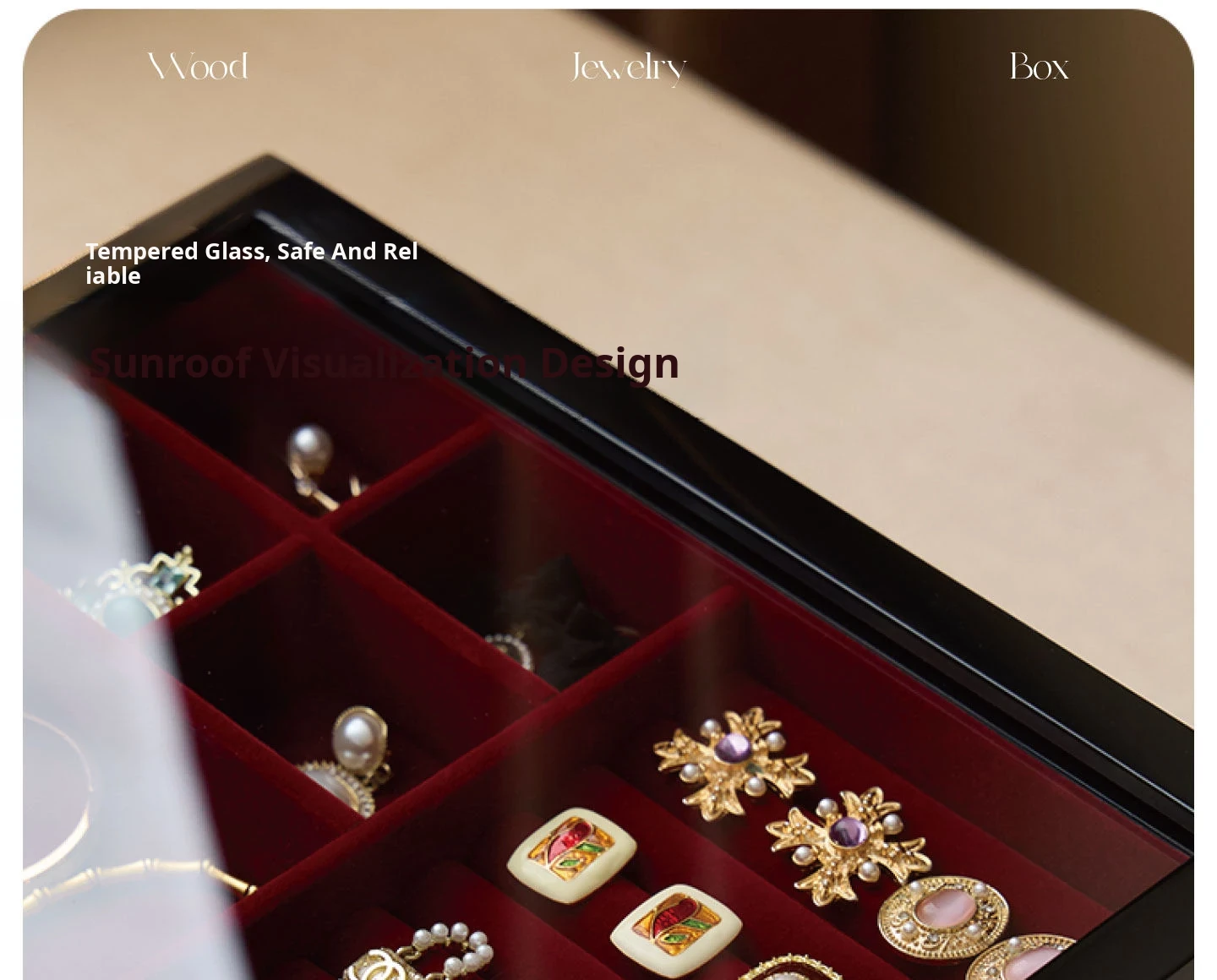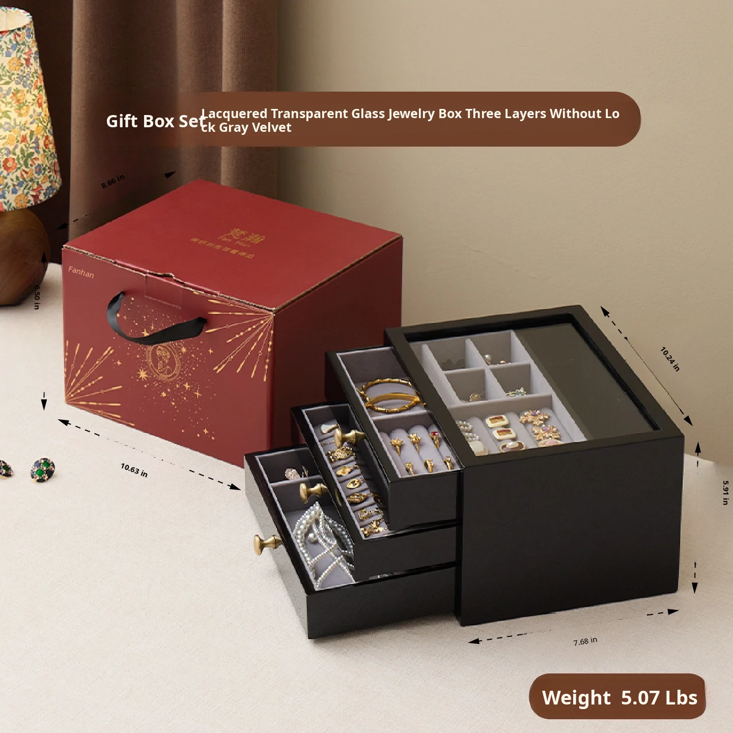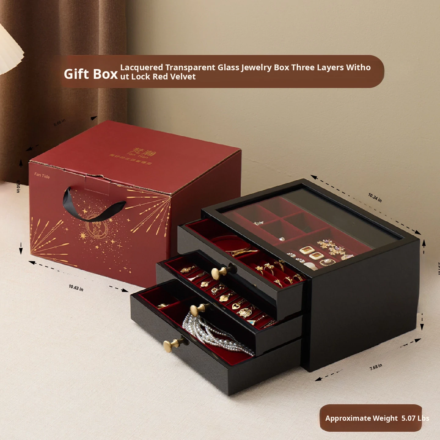 Painted Jewelry Box, Glass Type, Red Velvet, Gift Box
