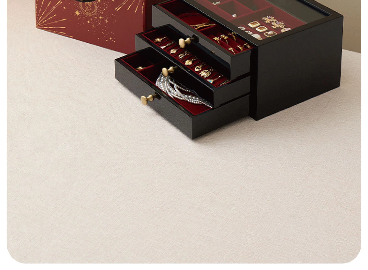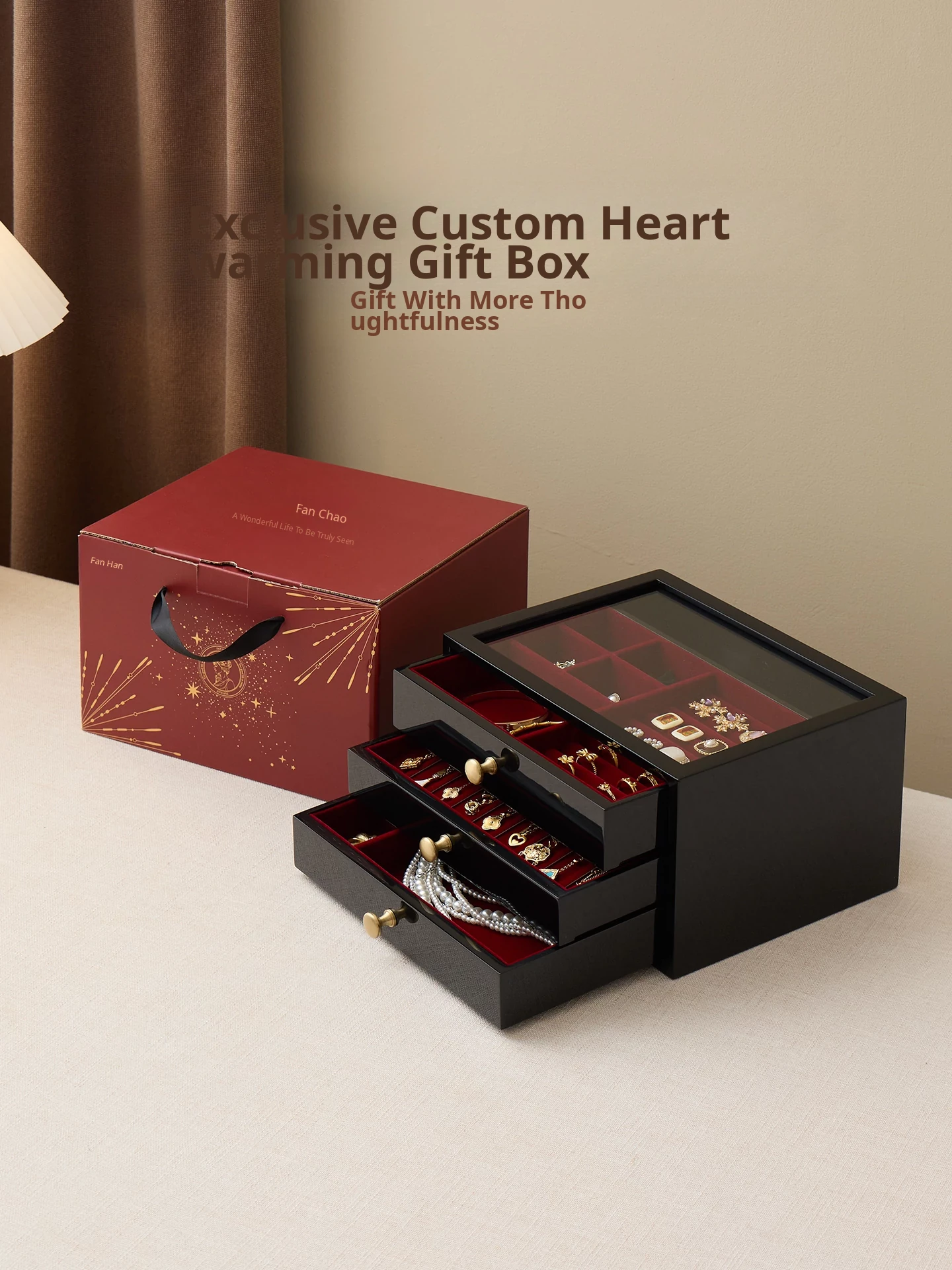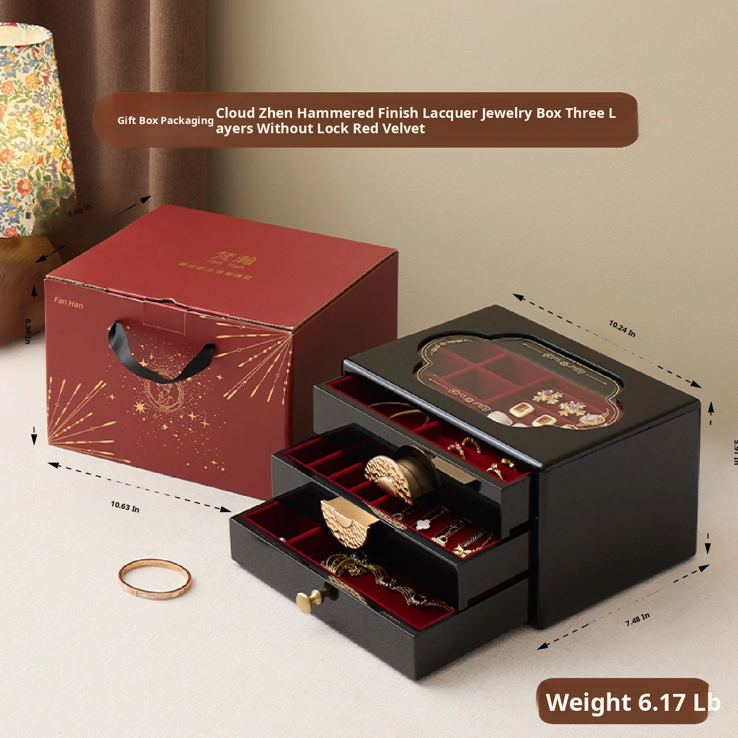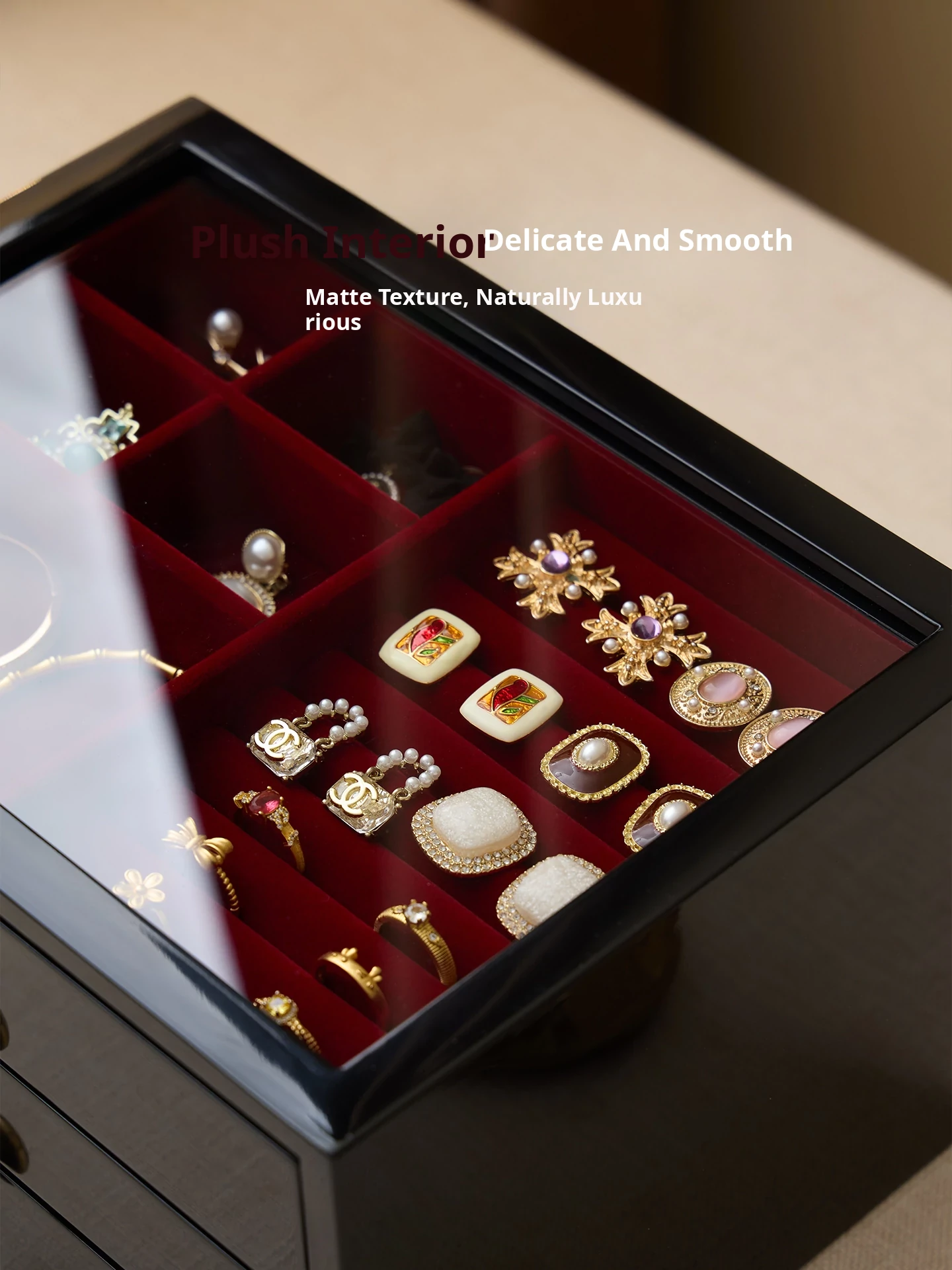 Painted Jewelry Box, Glass Type, Red Velvet, Gift Box