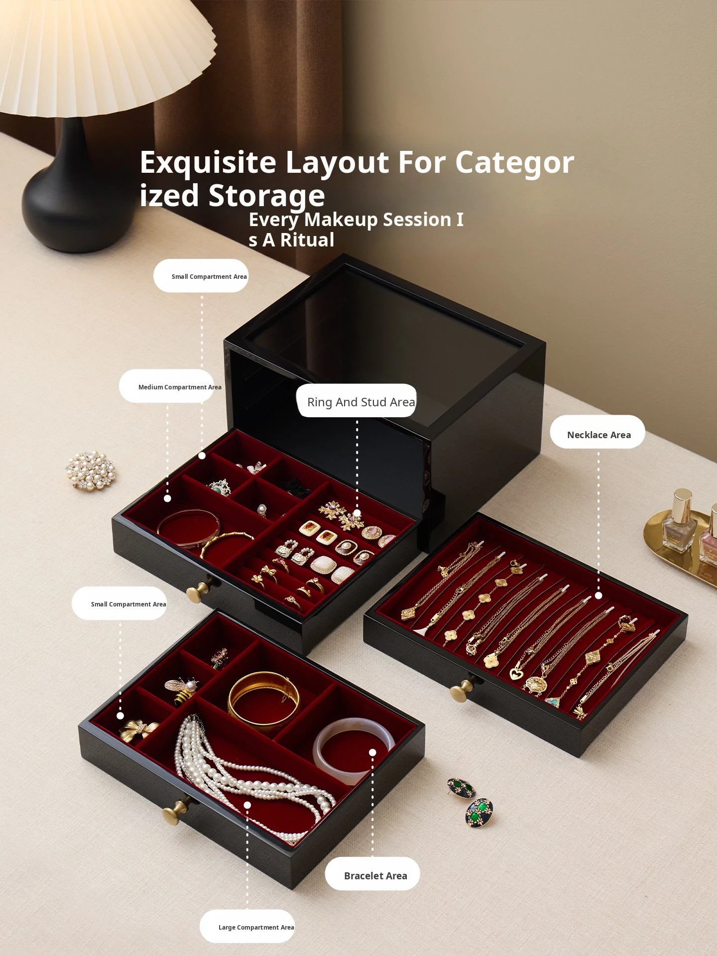 Elegant Varnished Jewelry Box - Perfect Storage Solution for Weddings, New Year, and Valentine's Day Gifts - Luxurious Gold Jewelry Organizer for Exquisite Accessories