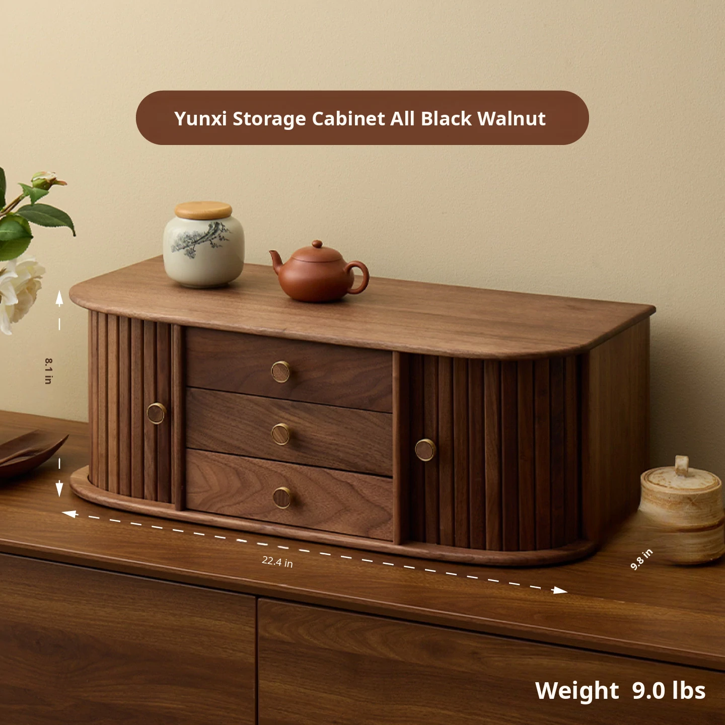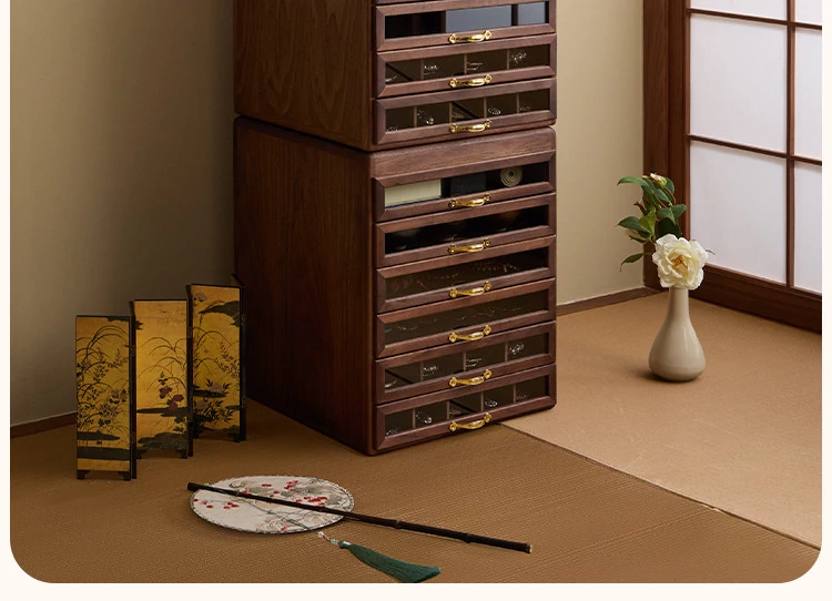 Yunxi Tea Set Cabinet, Single Unit, Black Walnut Wood Grain