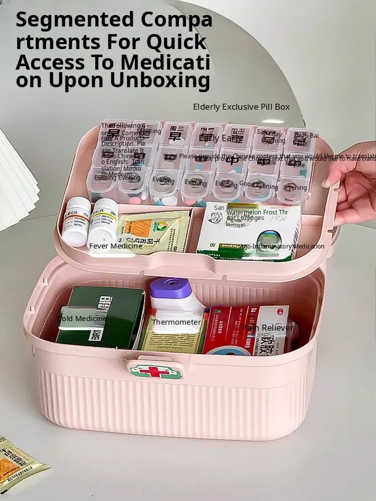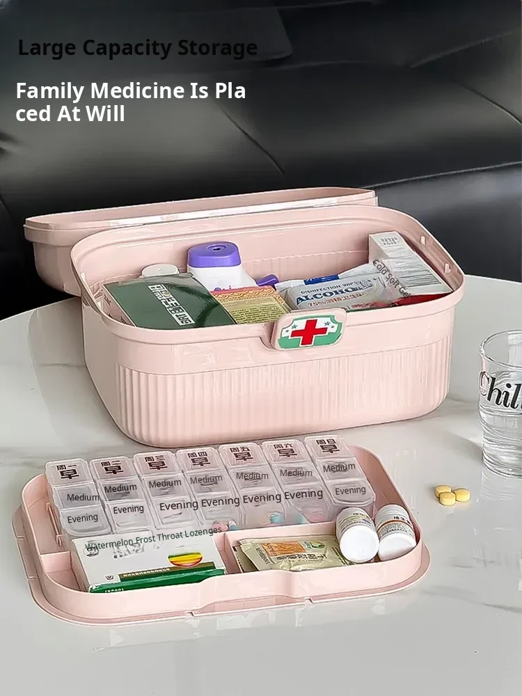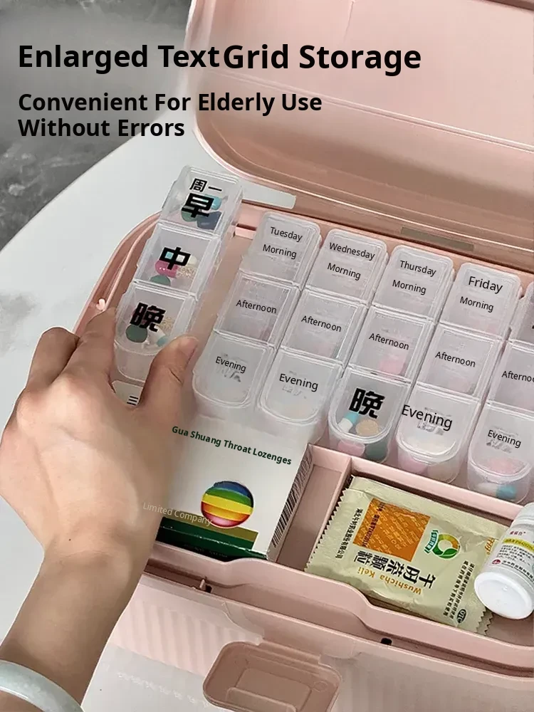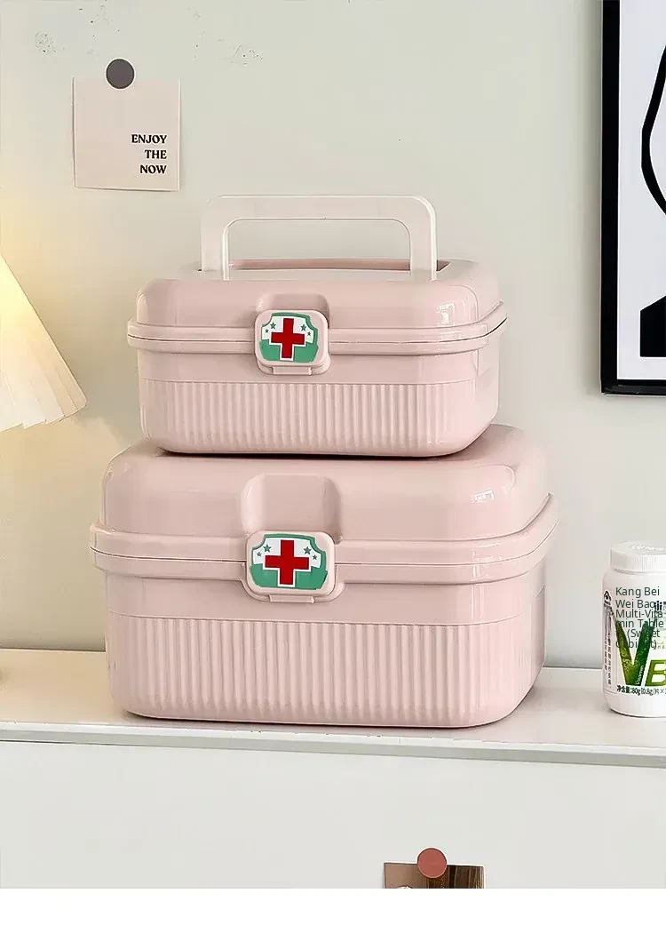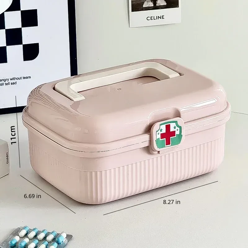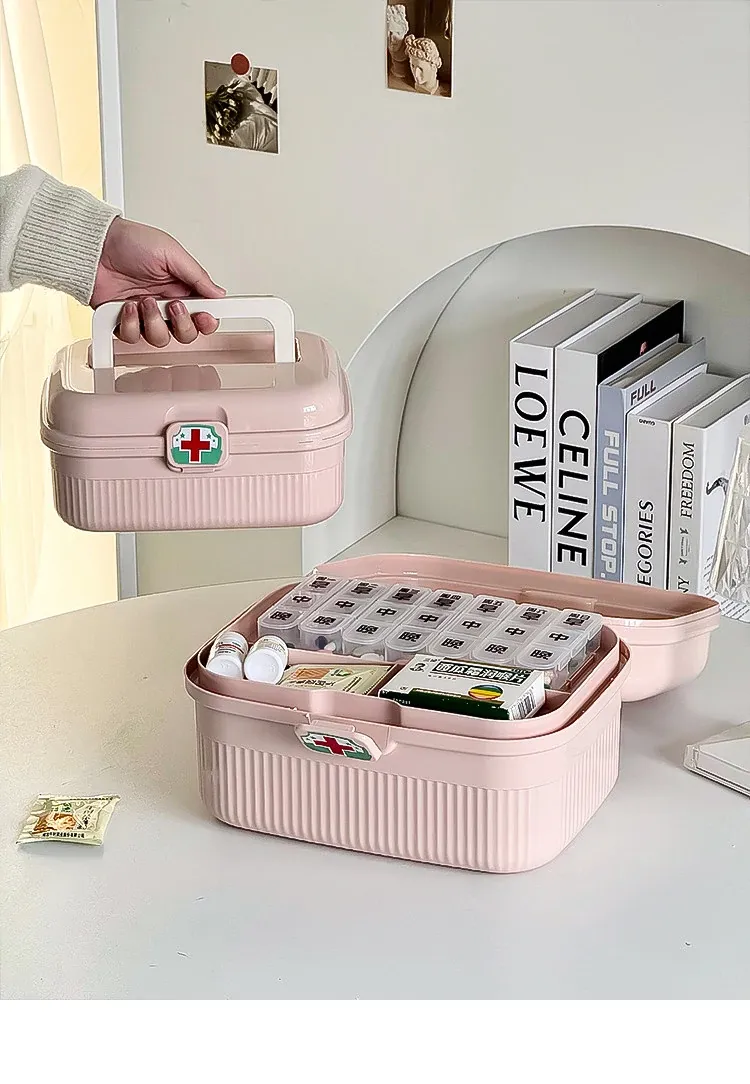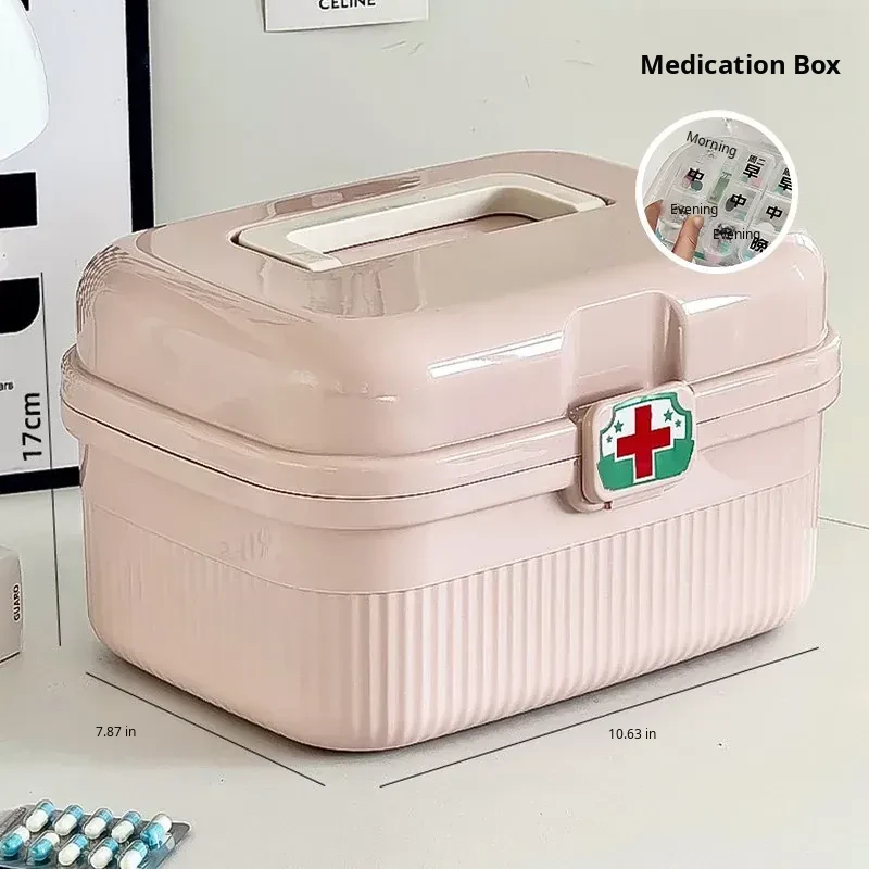 Pink - Large Home Medicine Cabinet(Portable Medicine Box for the Elderly)