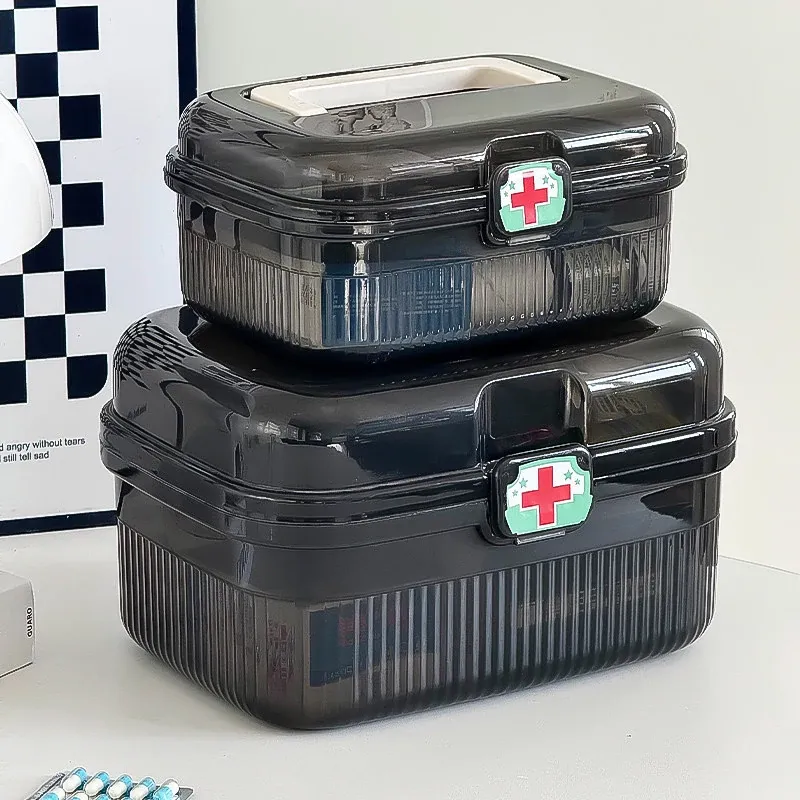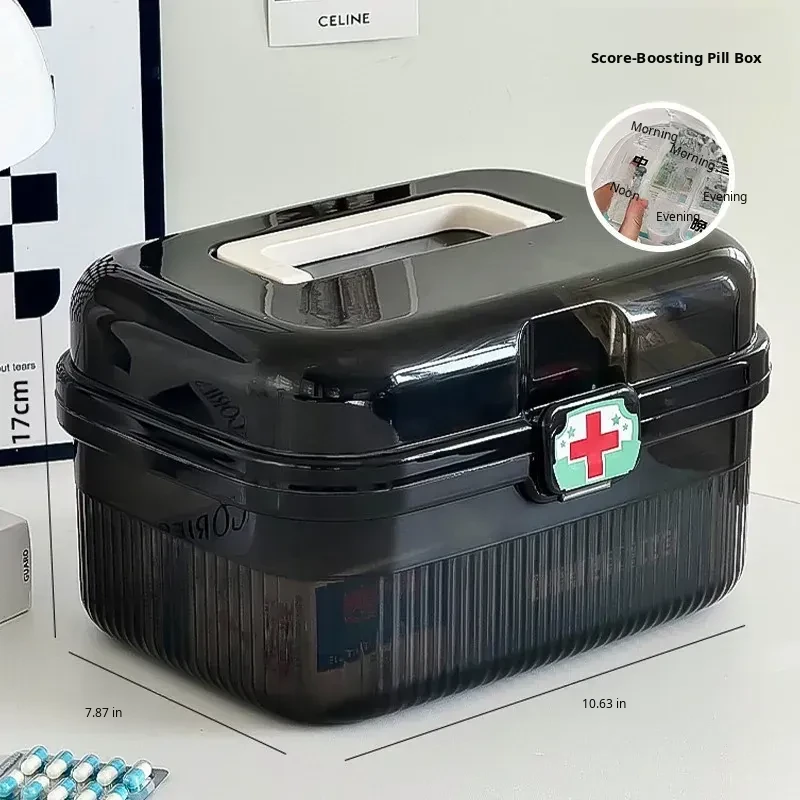 Transparent Black - Large Household Medicine Box + Small Medicine Box