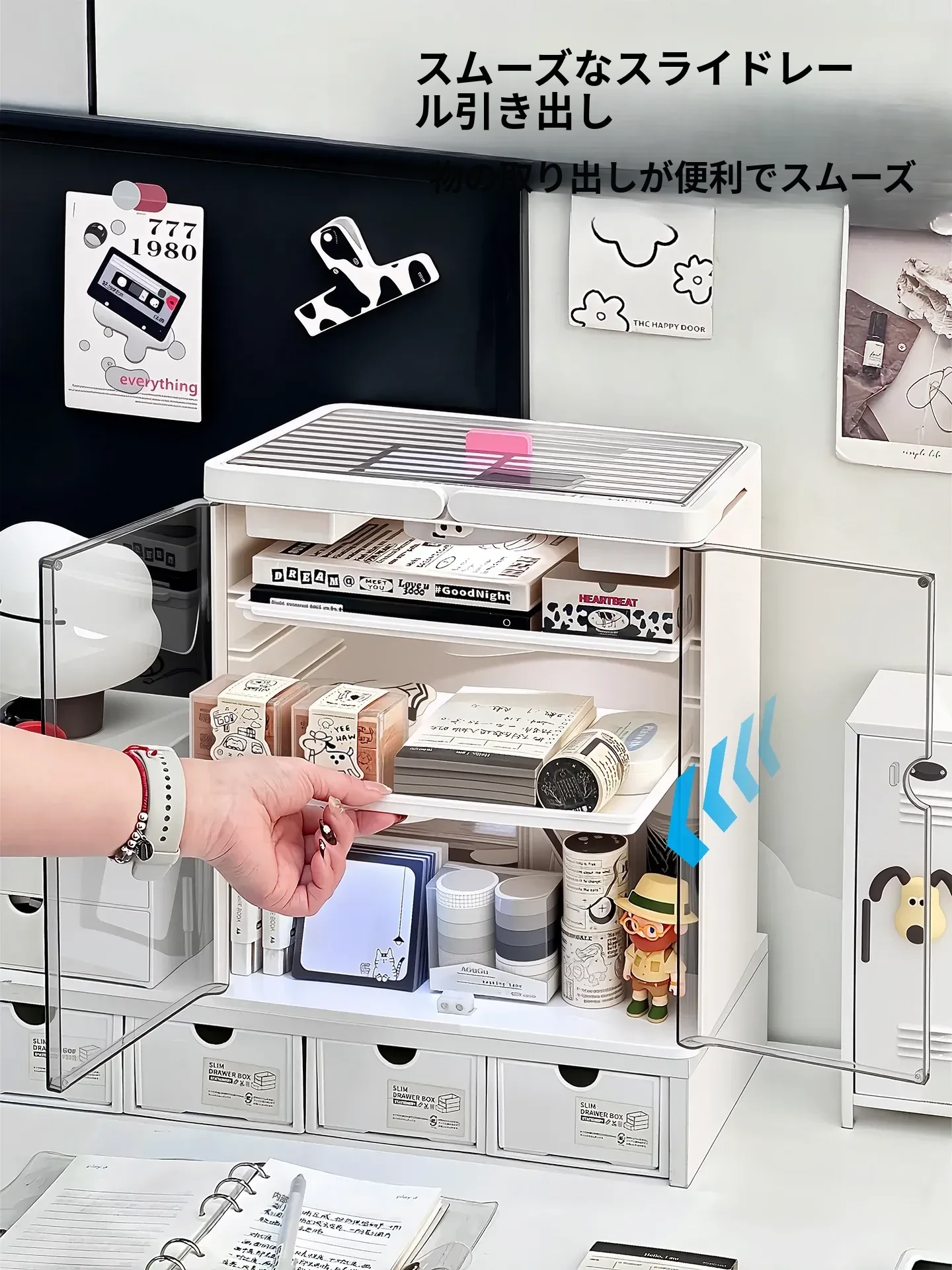 学生必見!大容量文具収納ボックス - 書類整理に最適な引き出し式・ロック付きデスク上収納ラック。すっきり整理して、勉強に集中できる環境を手に入れよう!