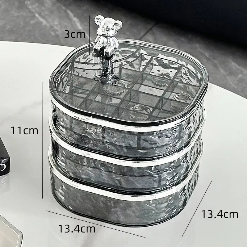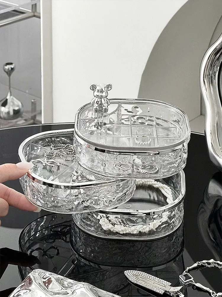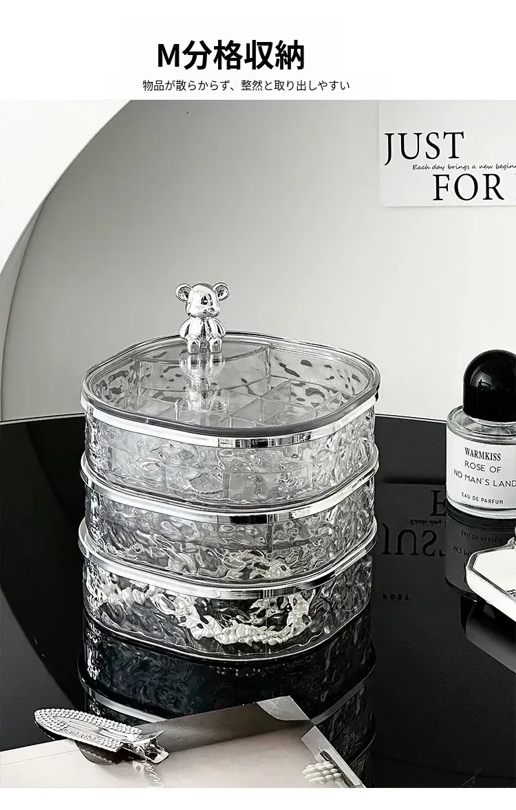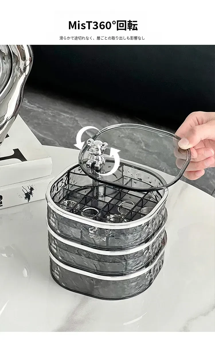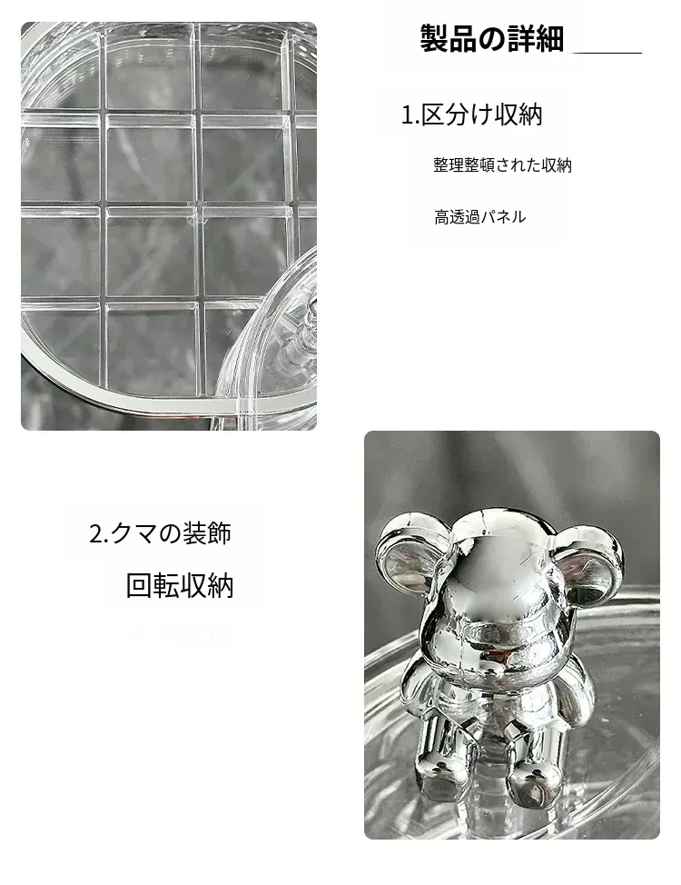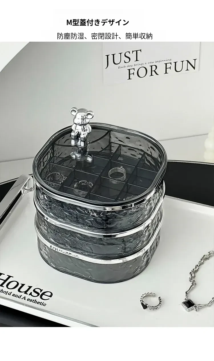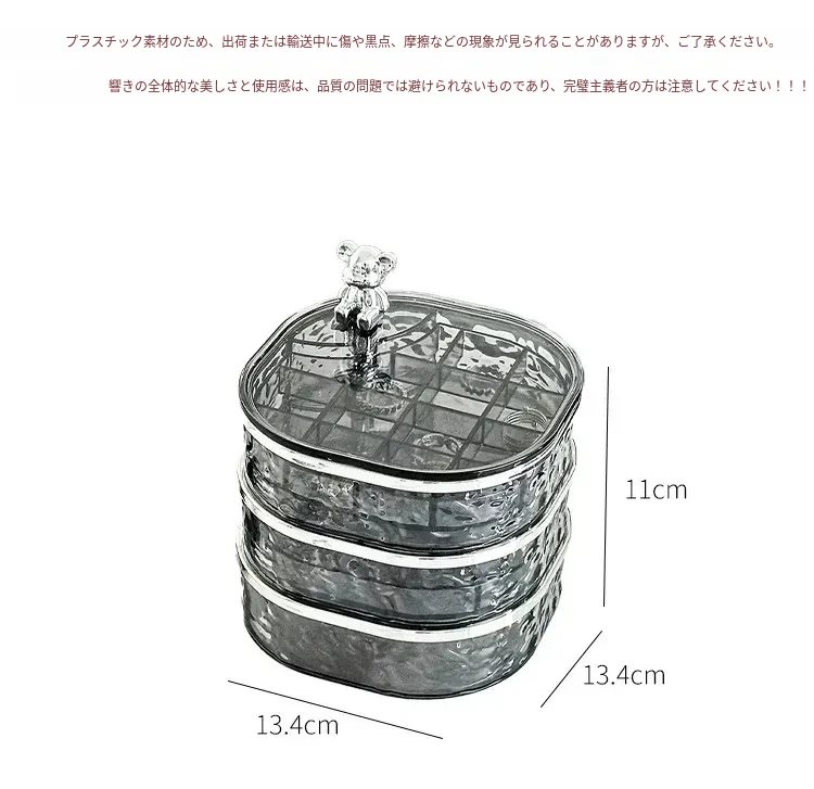透明シルバー+透けたグレー-高級ジュエリーボックス【クマ付き】