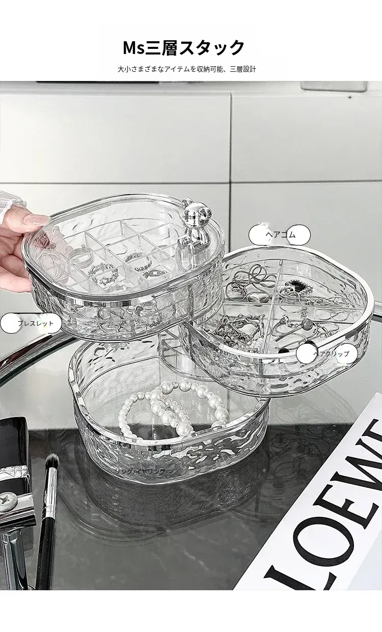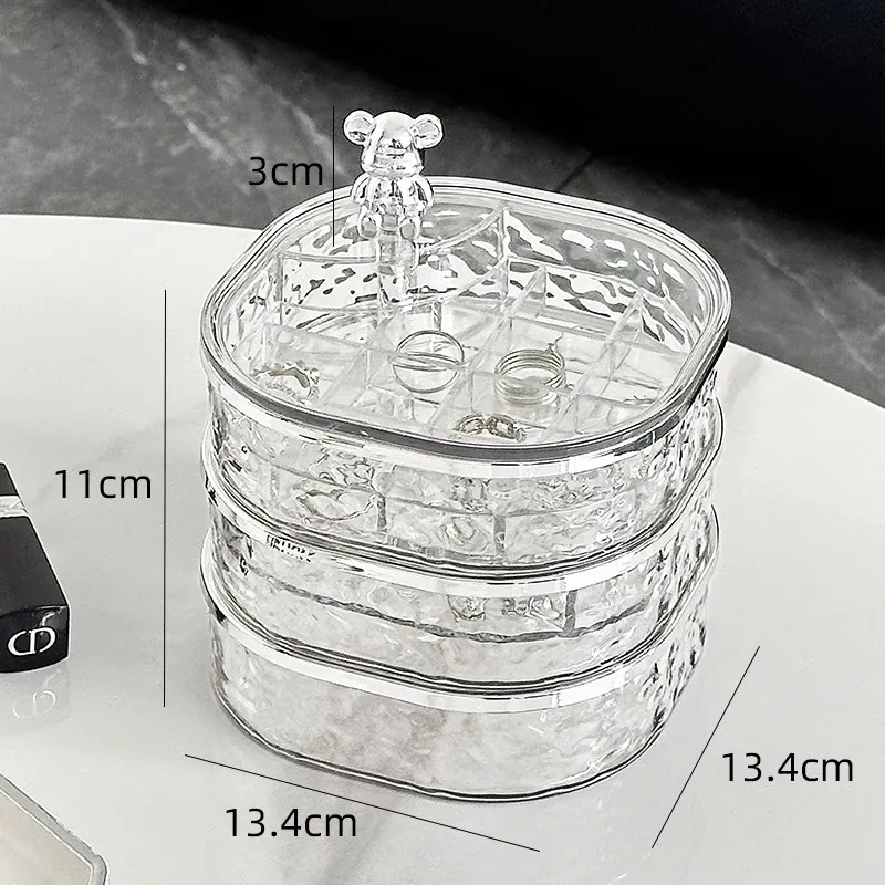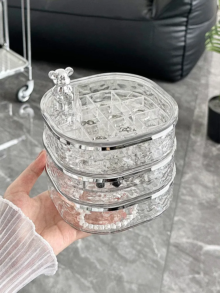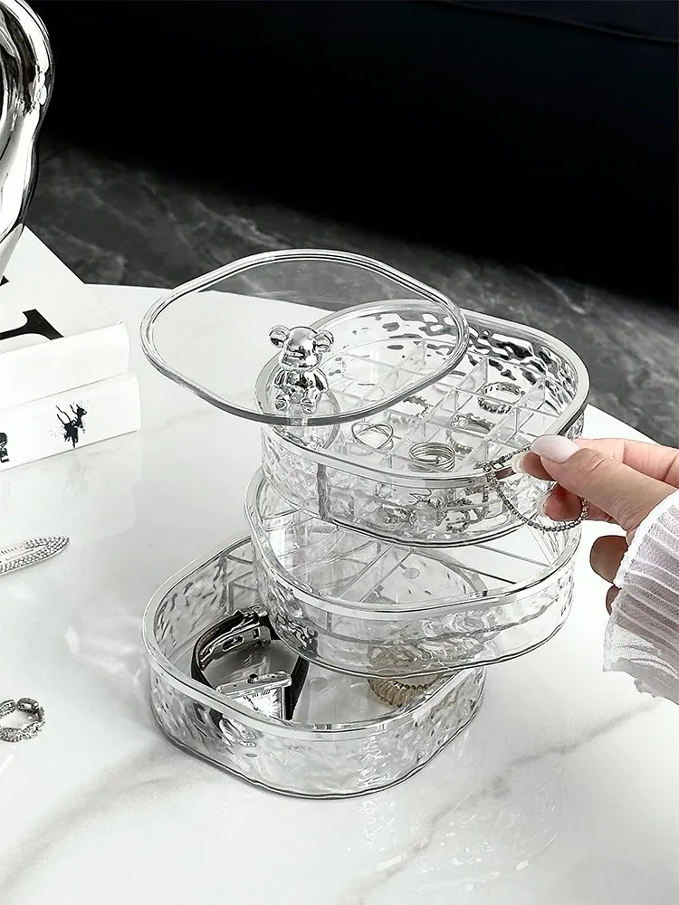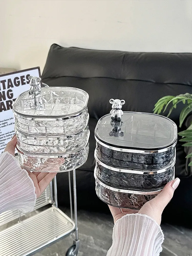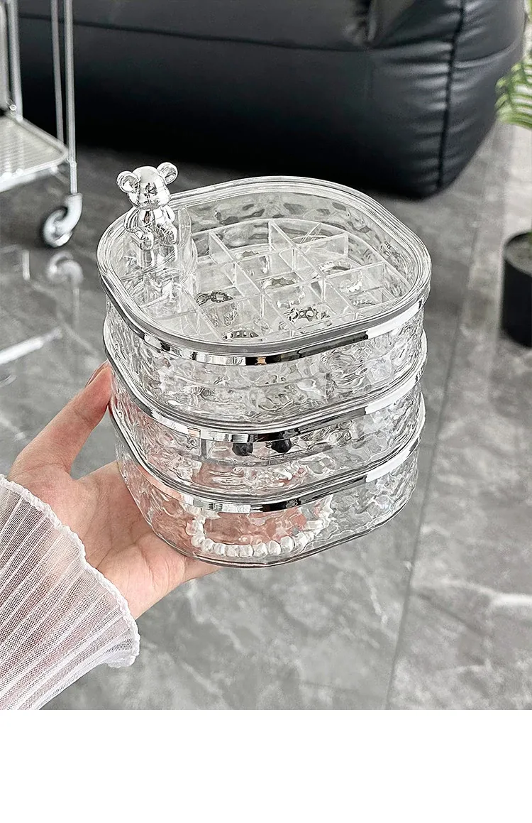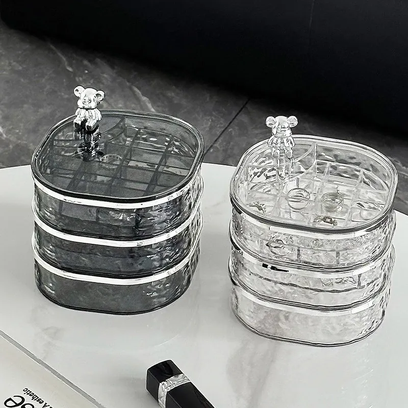 透明シルバー+透けたグレー-高級ジュエリーボックス【クマ付き】
