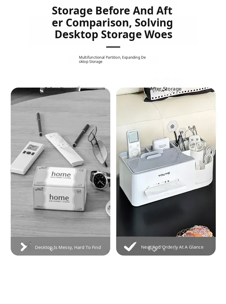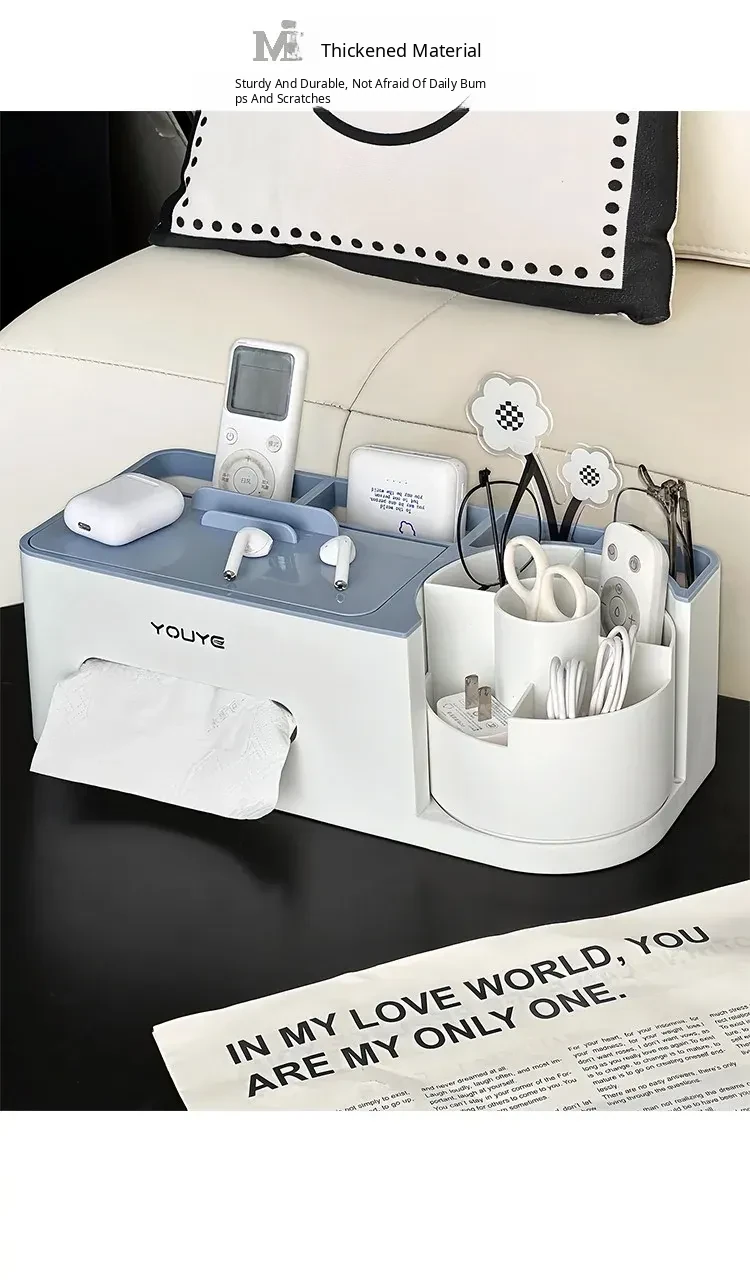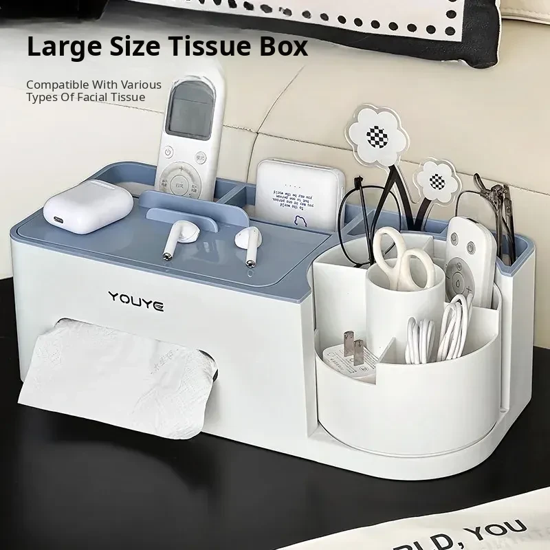 Multi-Functional Tissue Box for Living Room - Large Capacity Remote Control and Toothpick Storage, Stylish and Practical Table Organizer for Napkins and Paper Towels