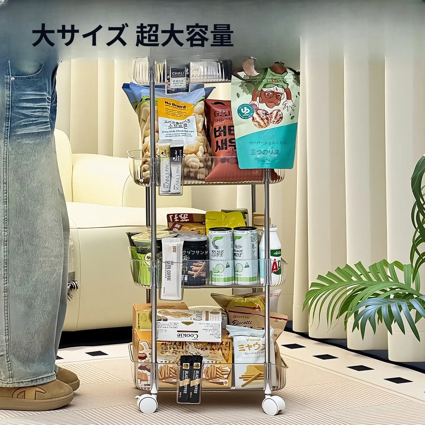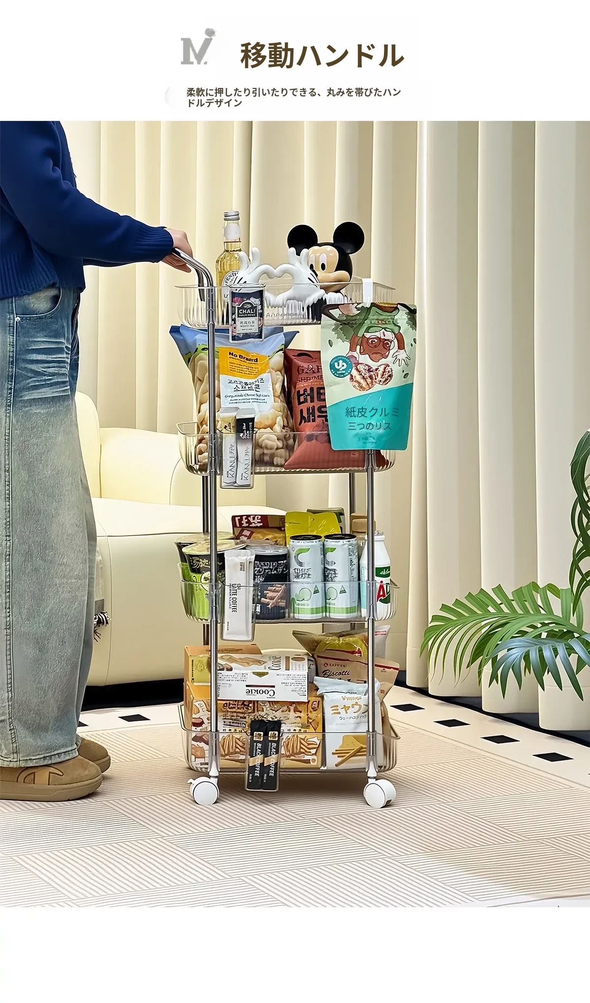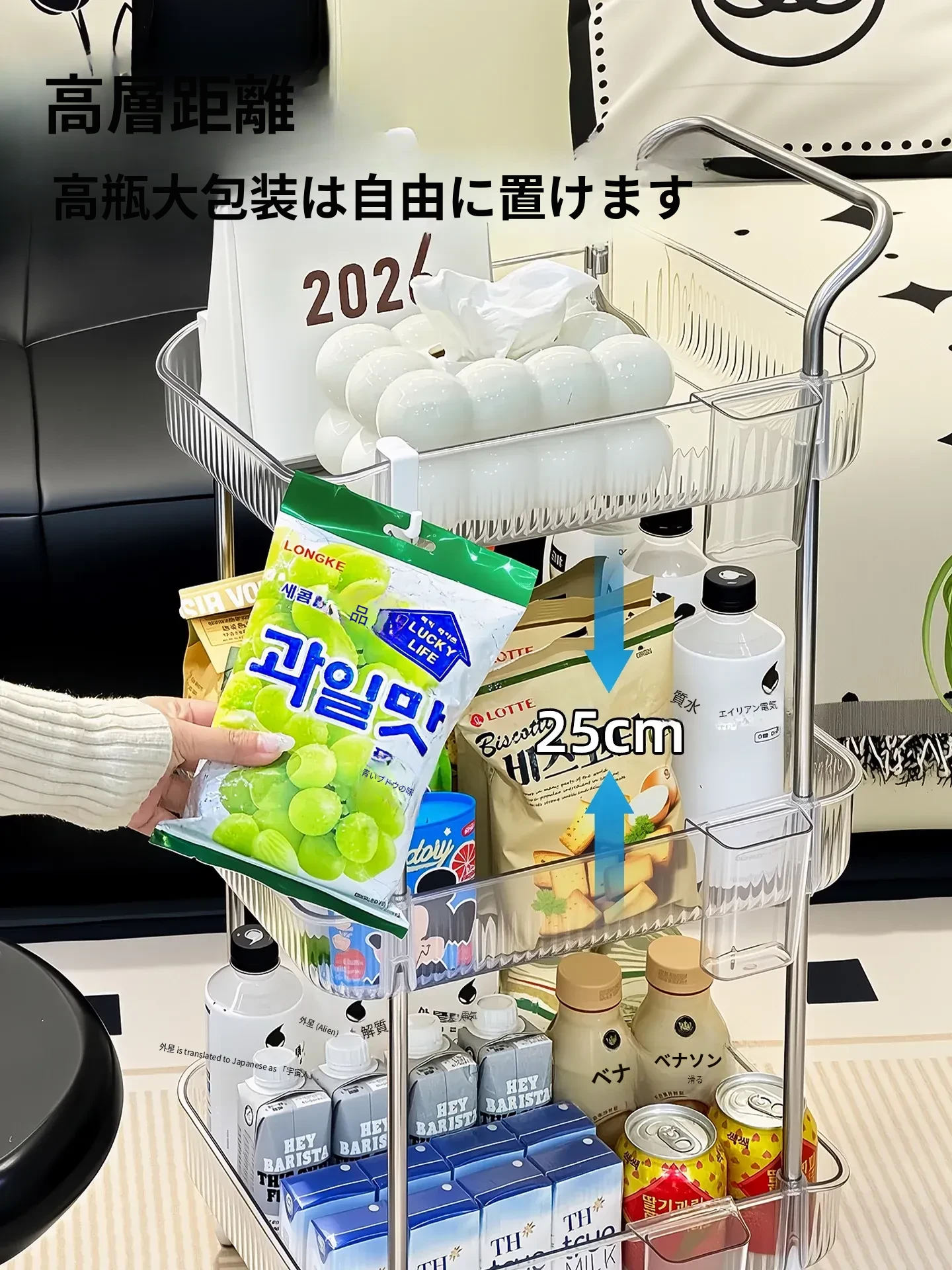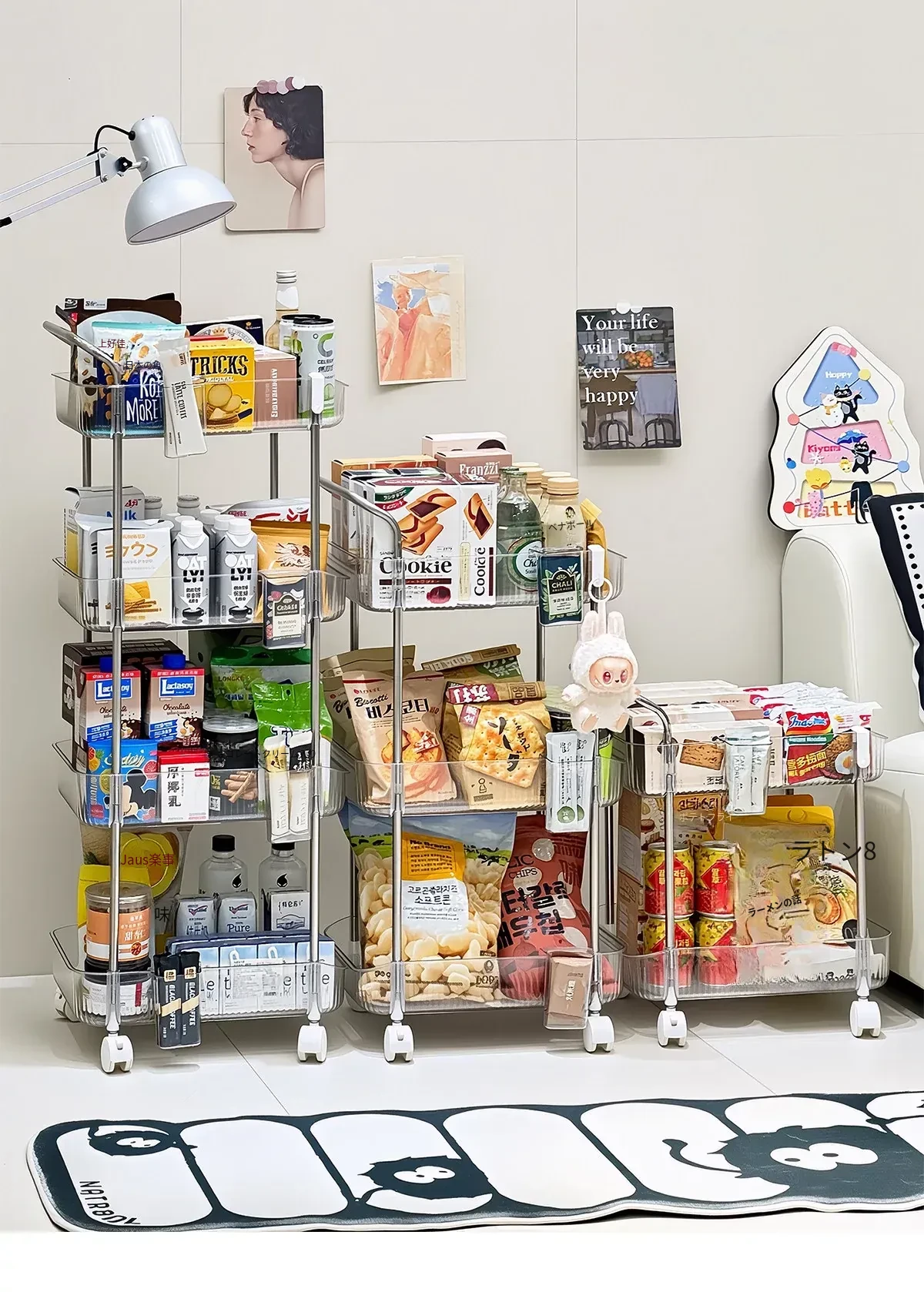 移動式スナック収納ラック!多層の家庭用小型カートで、大容量の玩具や雑貨を整理整頓。おしゃれで便利な収納ソリューション!