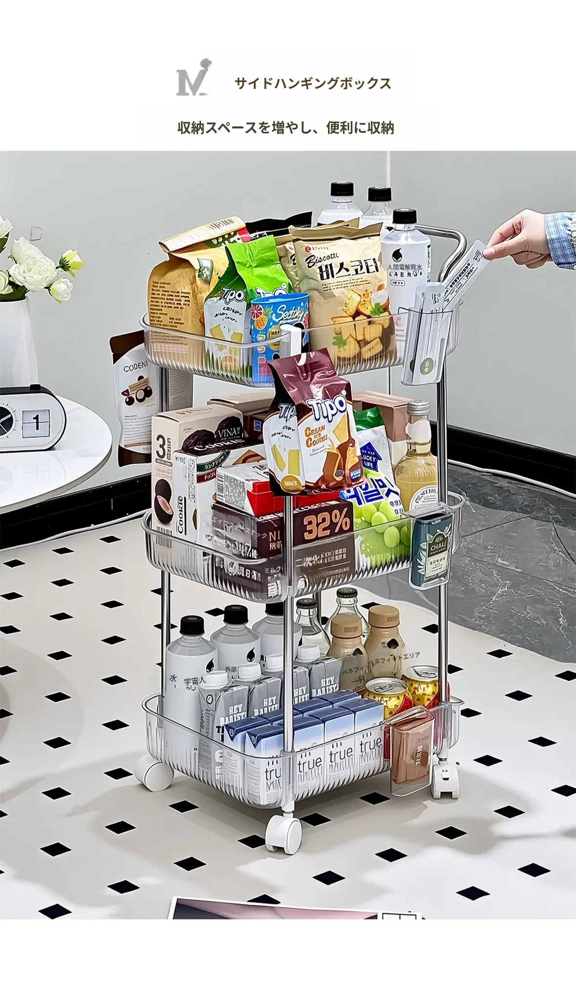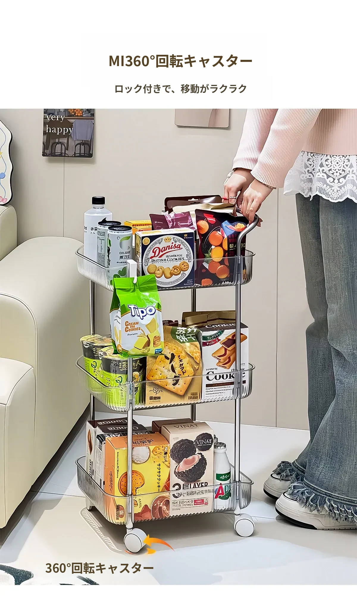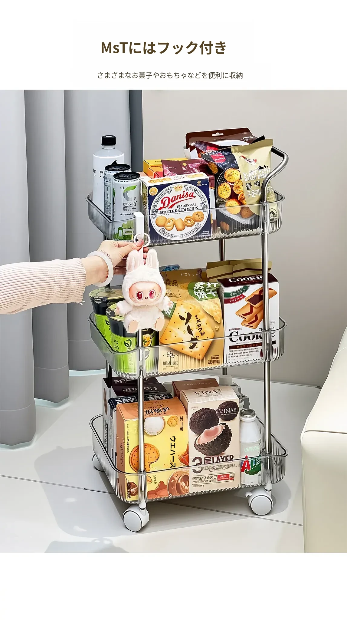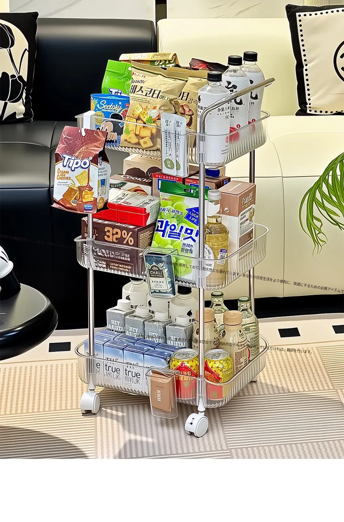 移動式スナック収納ラック!多層の家庭用小型カートで、大容量の玩具や雑貨を整理整頓。おしゃれで便利な収納ソリューション!