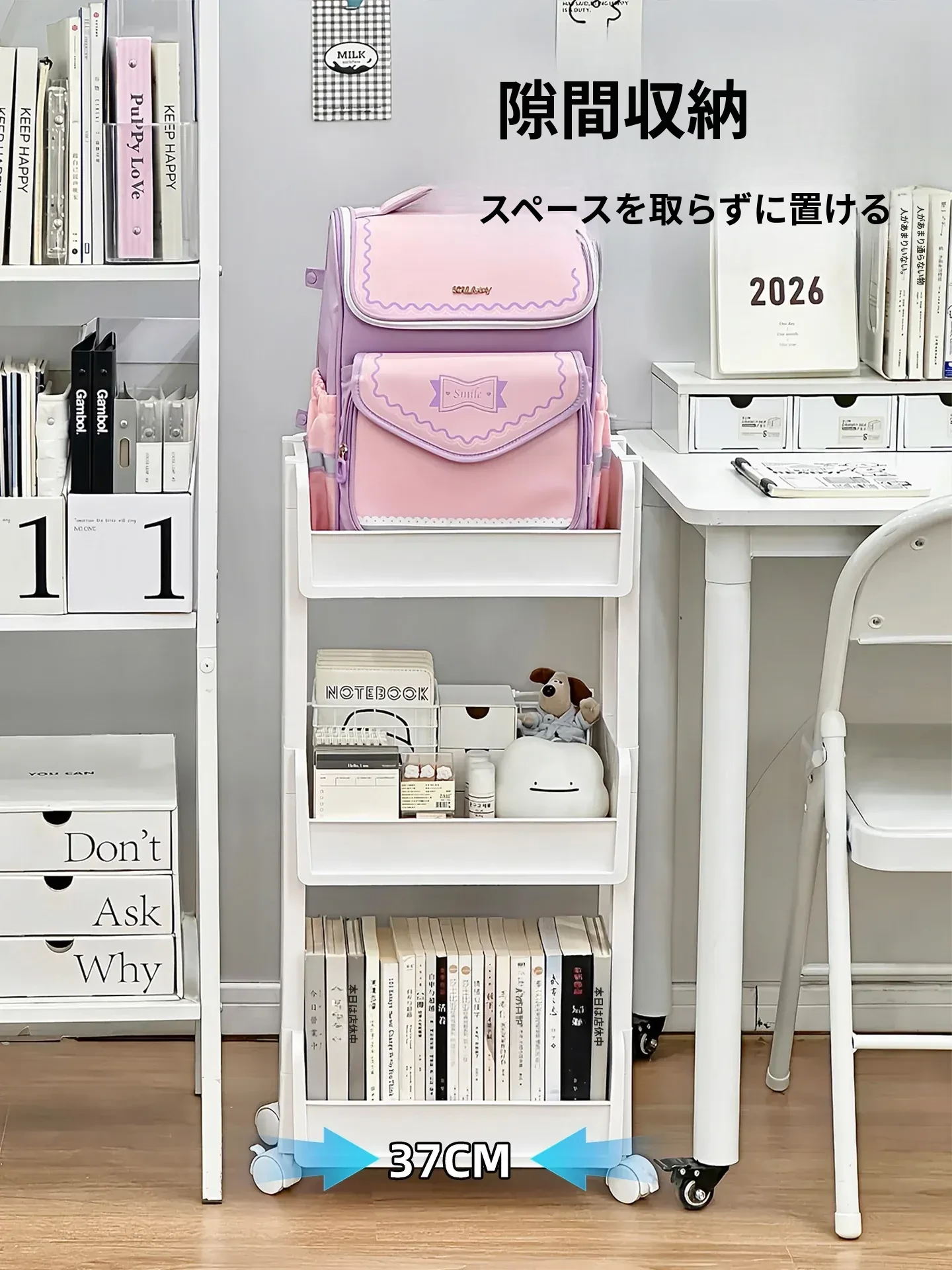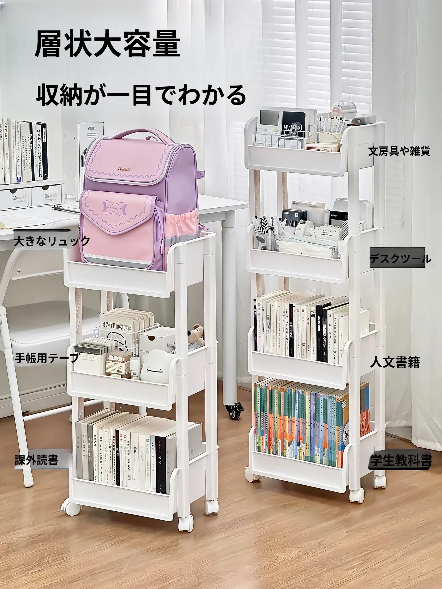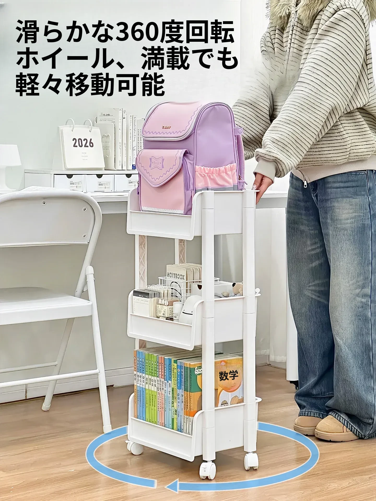 多層収納可能な移動式文具書籍ラック - 穴を開けずに簡単設置!デスク下にぴったり収まる便利な収納キャリーで、すっきり整理整頓!あなたの作業スペースを美しく保ちます。