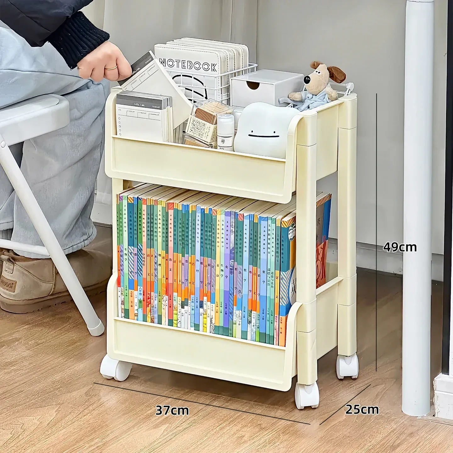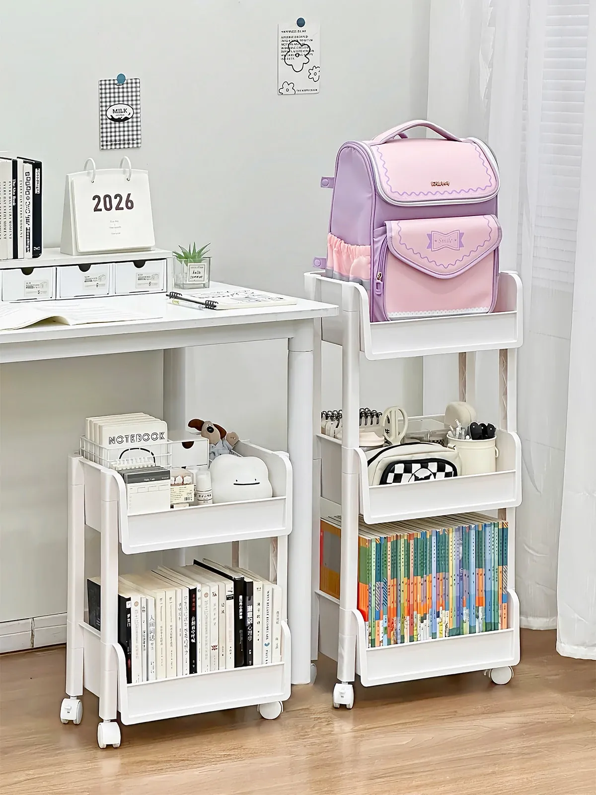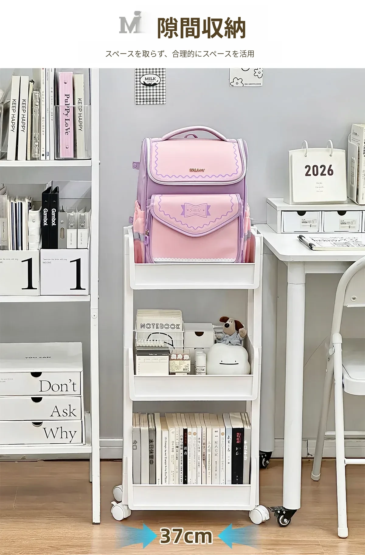 多層収納可能な移動式文具書籍ラック - 穴を開けずに簡単設置!デスク下にぴったり収まる便利な収納キャリーで、すっきり整理整頓!あなたの作業スペースを美しく保ちます。