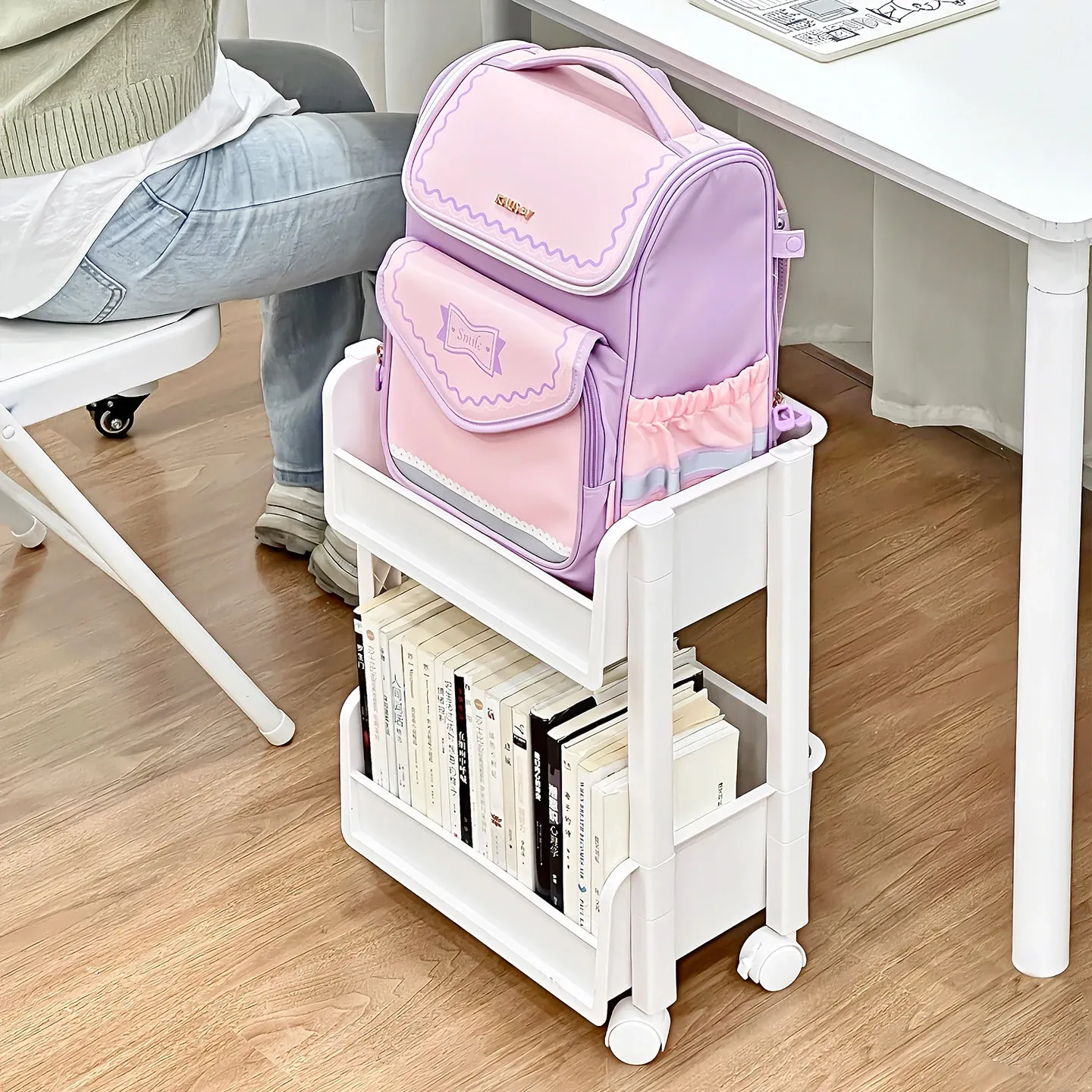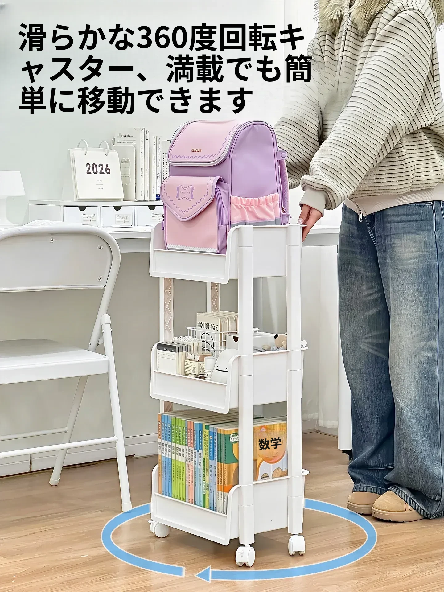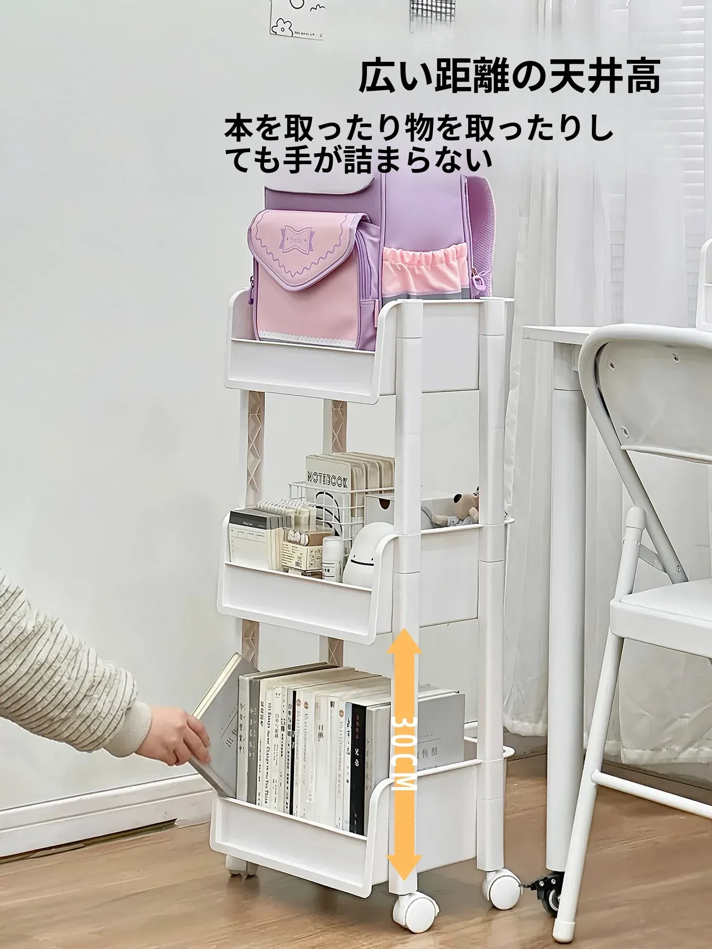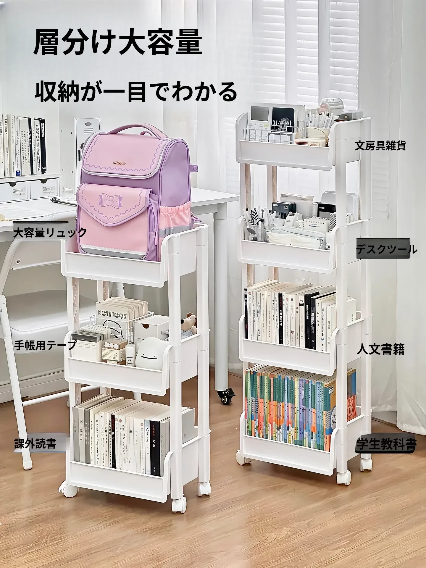 学生向け!机の下にぴったりな収納ラック - 文房具や書類整理も簡単!移動可能なスナックワゴン付き、階層的な収納でスペースを有効活用!おしゃれで実用的なアイテム!