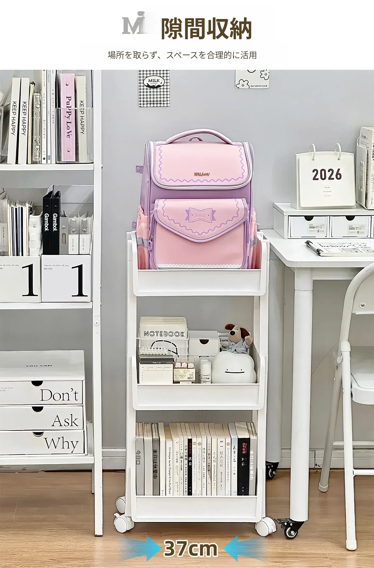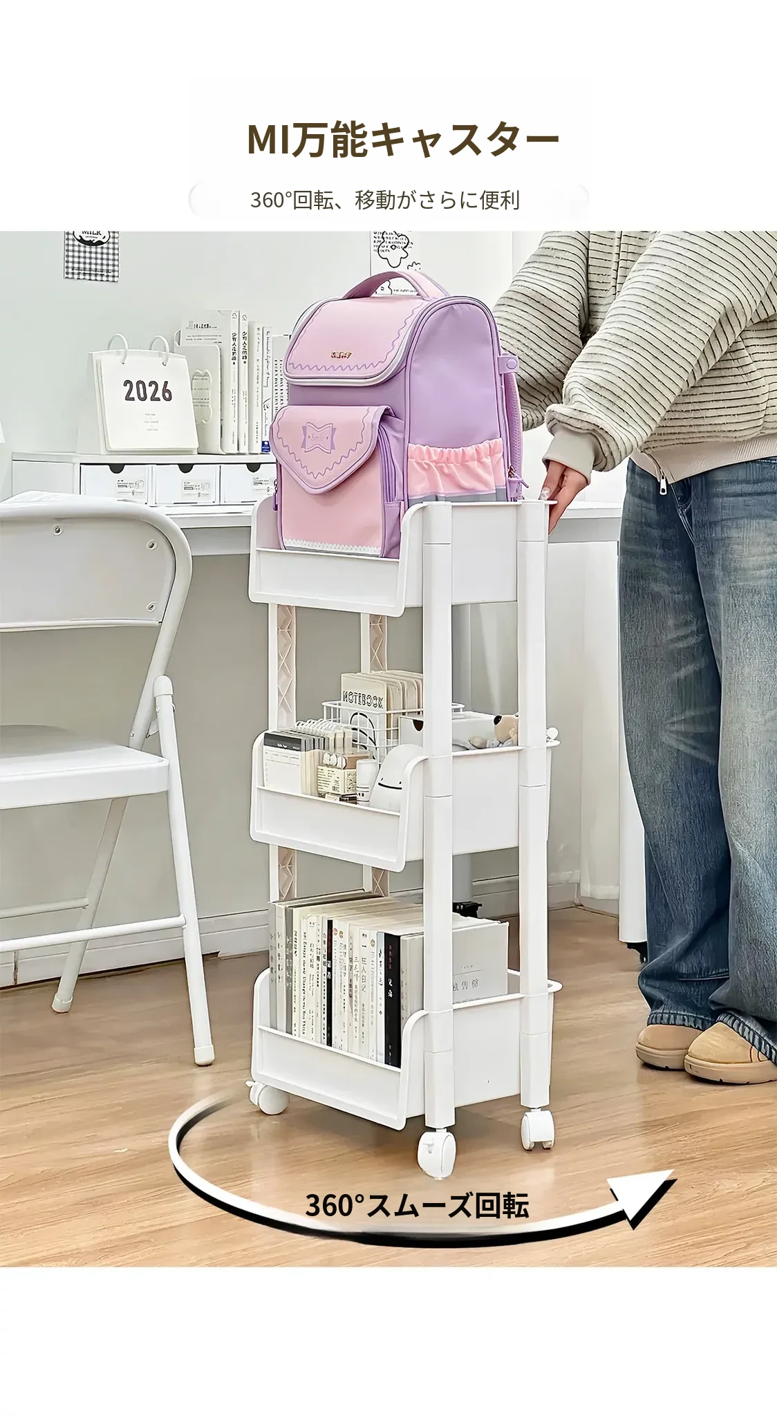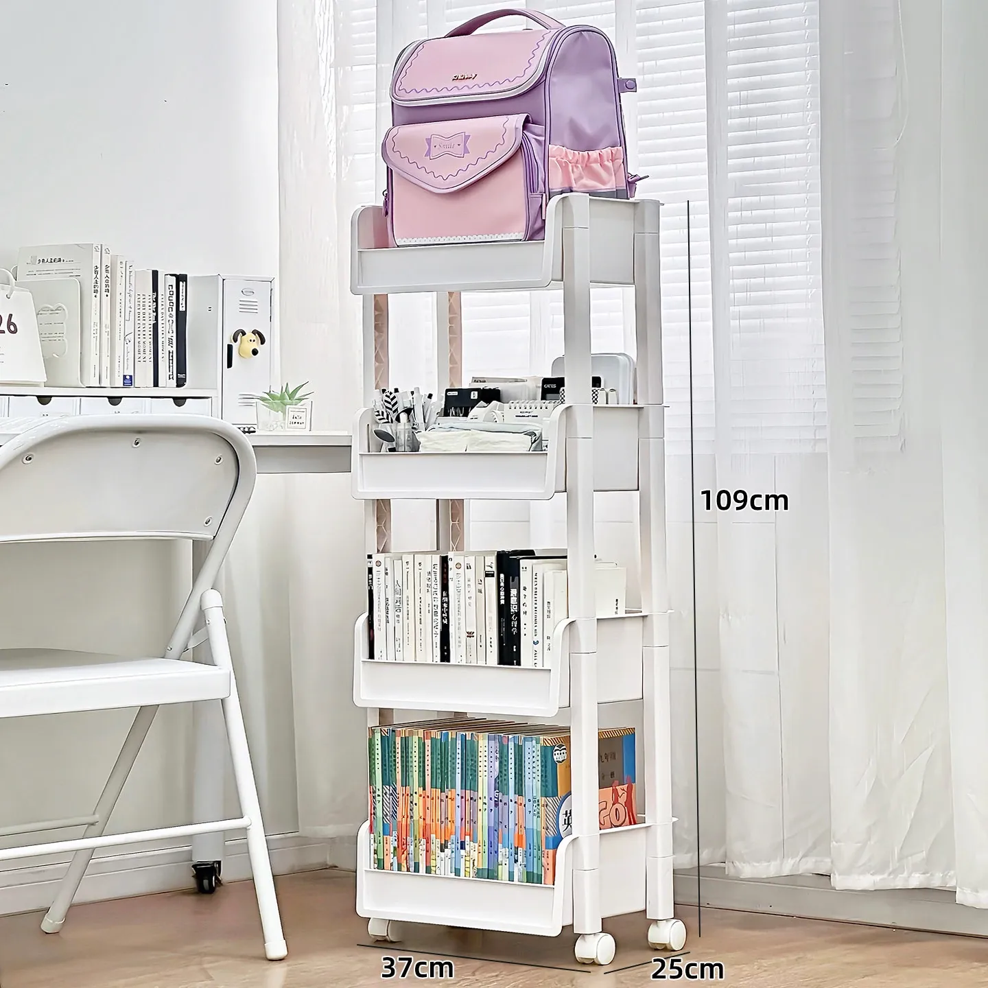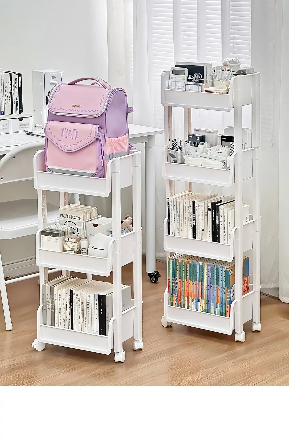 学生向け!机の下にぴったりな収納ラック - 文房具や書類整理も簡単!移動可能なスナックワゴン付き、階層的な収納でスペースを有効活用!おしゃれで実用的なアイテム!
