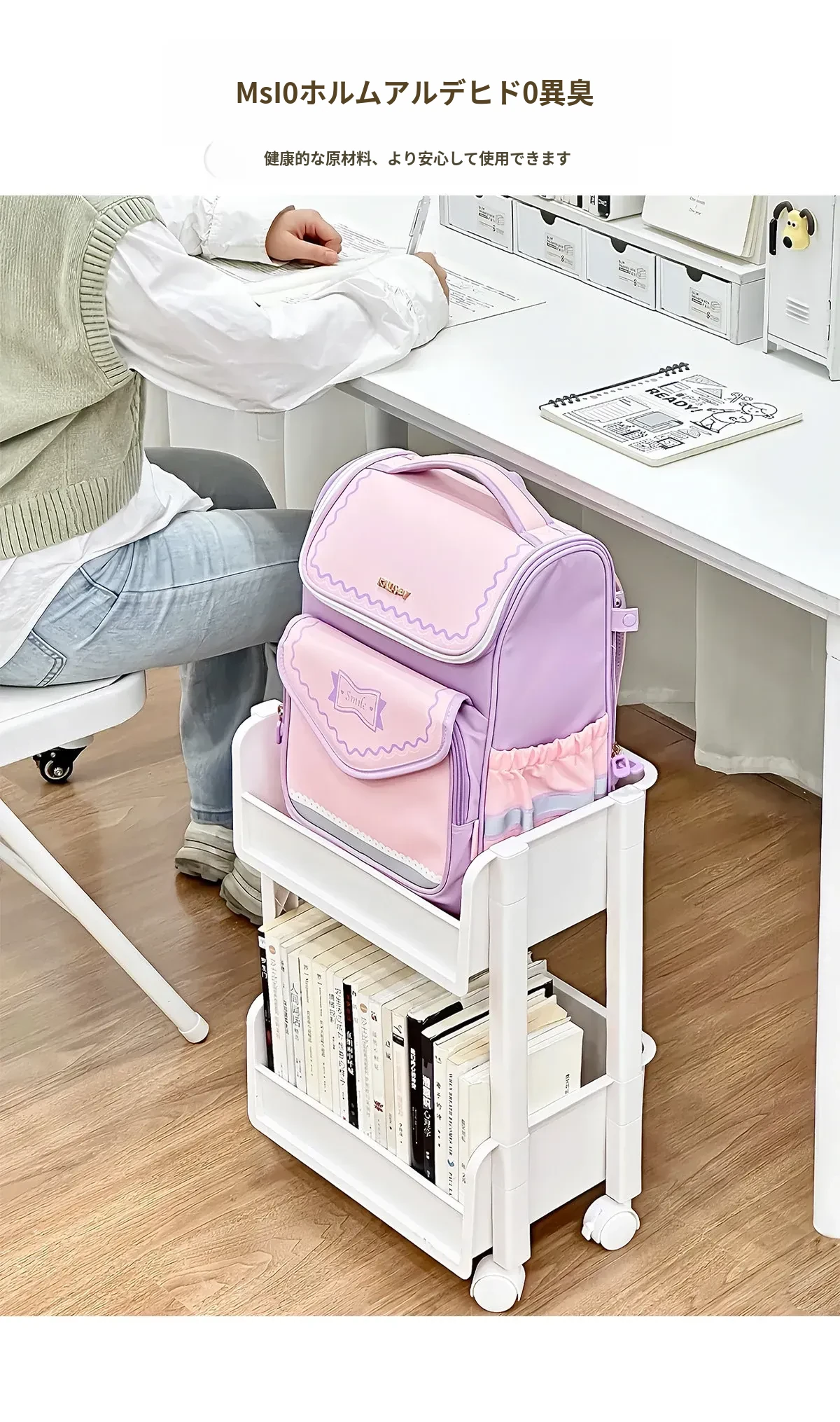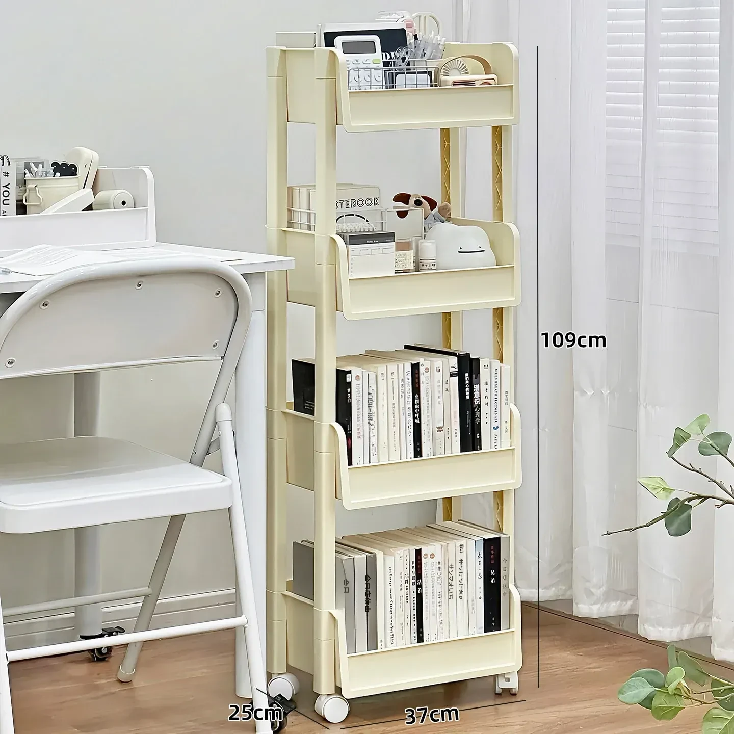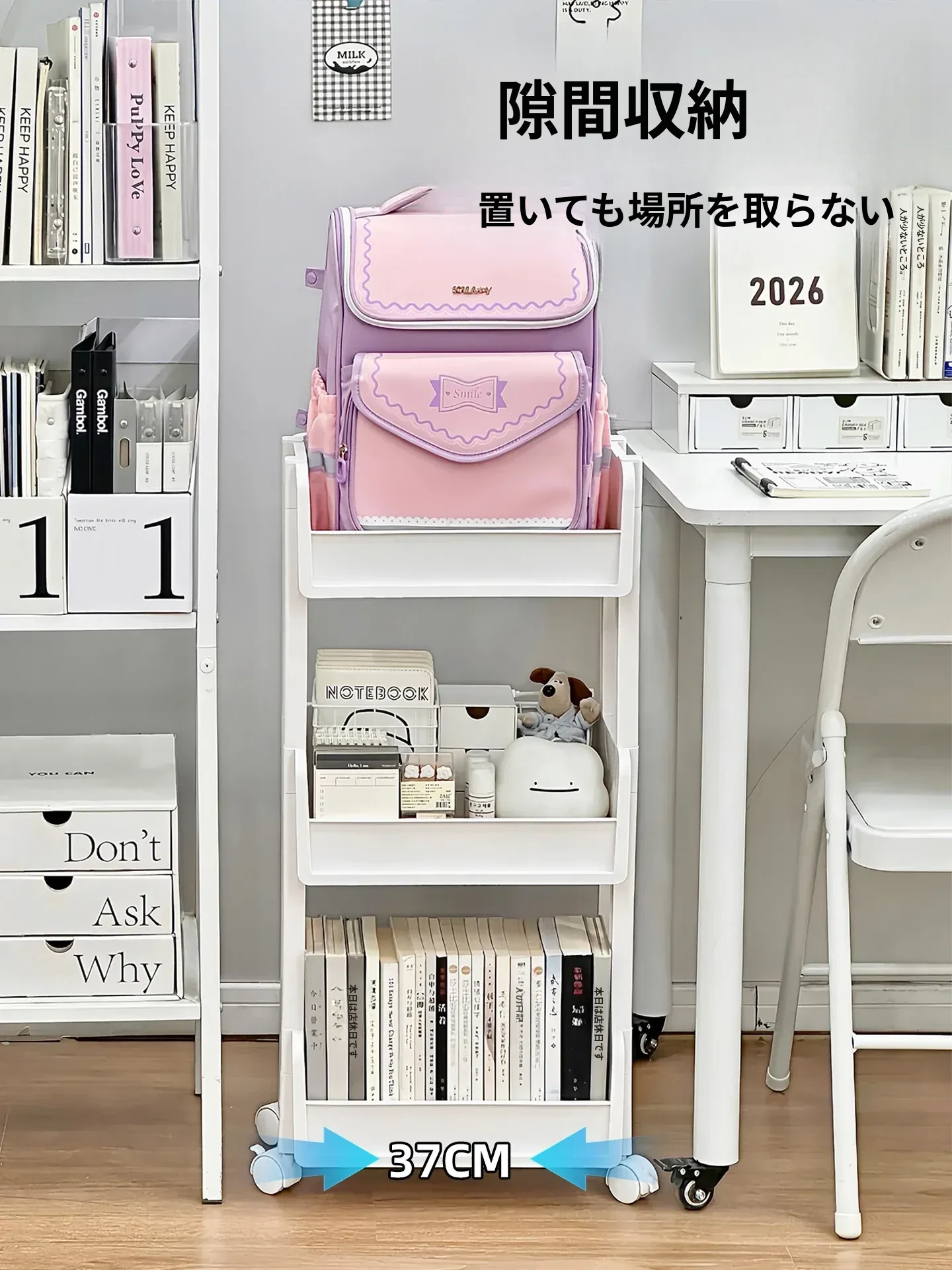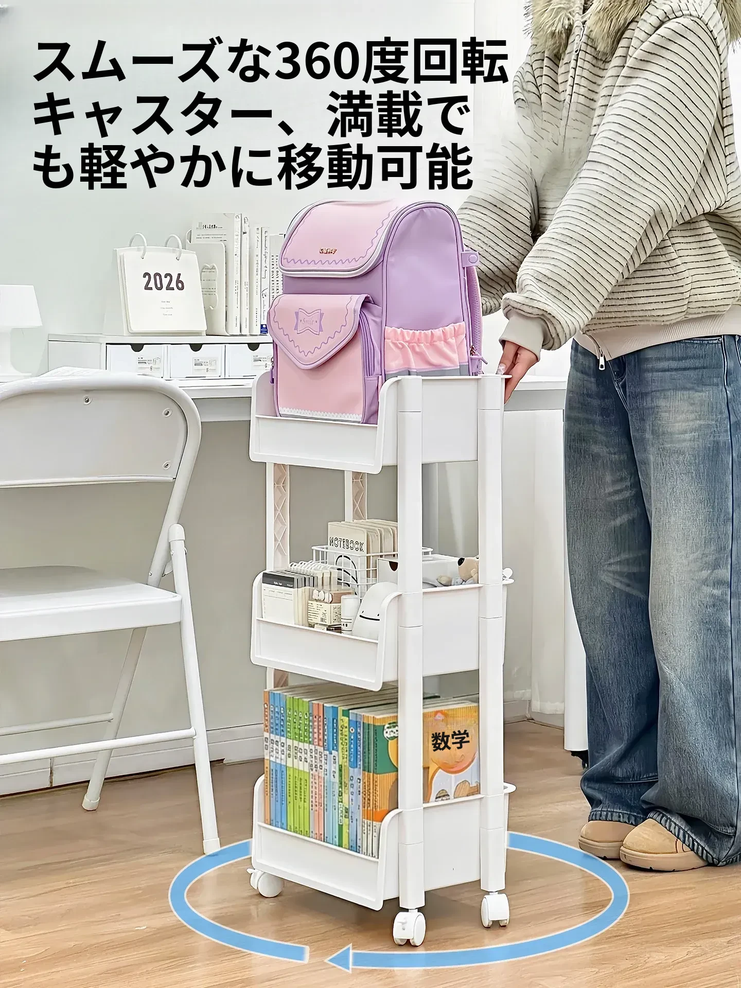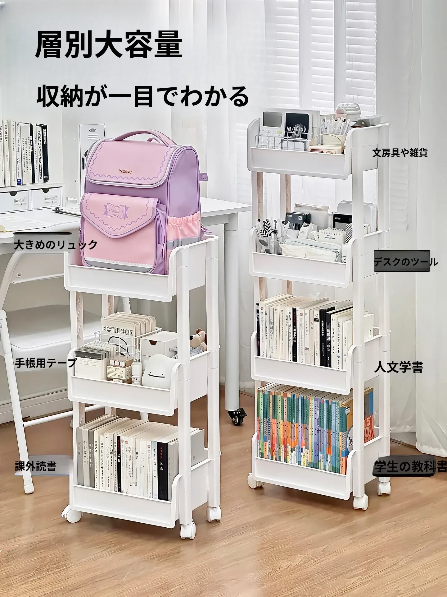 学生必見!デスク下収納シェルフ - 机の横にぴったりの書籍・文具整理ラック。移動式・多段階の雑貨整理カートで、スッキリとした学習環境を実現!お部屋もすっきり整頓。