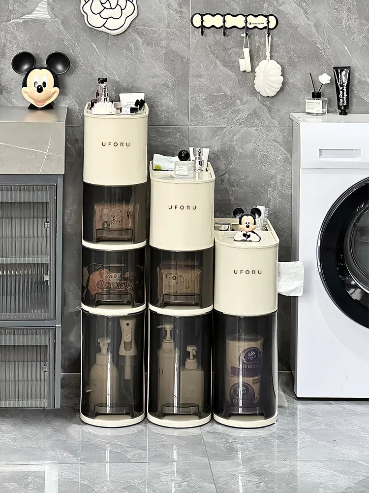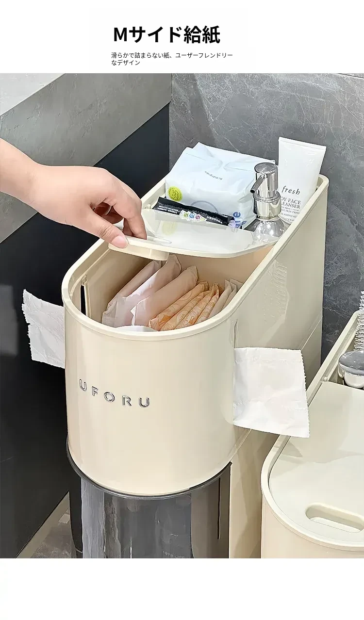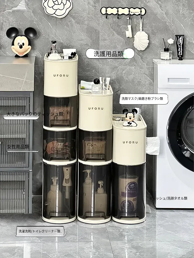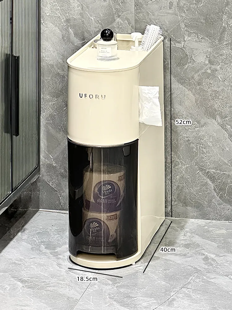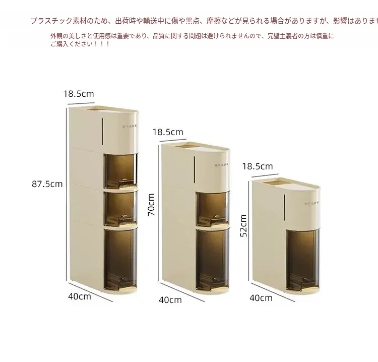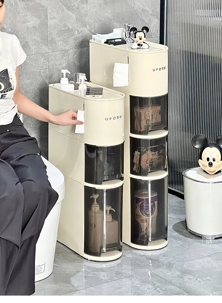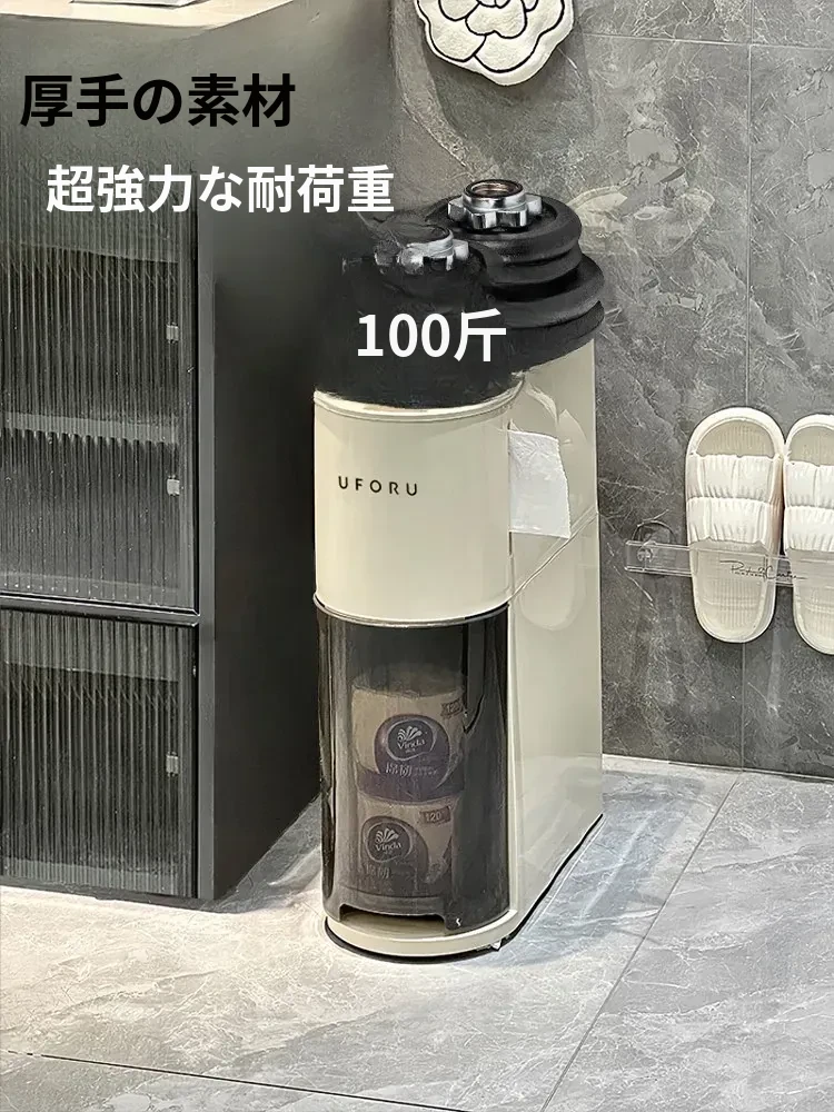 バスルーム用スリムキャビネット - トイレ横の省スペース収納!洗面所にぴったりなスタイリッシュなラックで、狭い隙間も無駄なく活用できます。整理整頓を簡単にし、あなたの生活空間を美しく演出します!