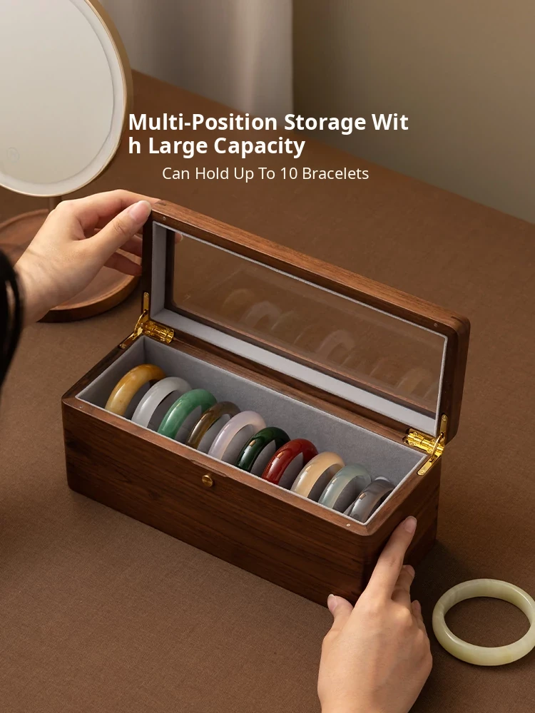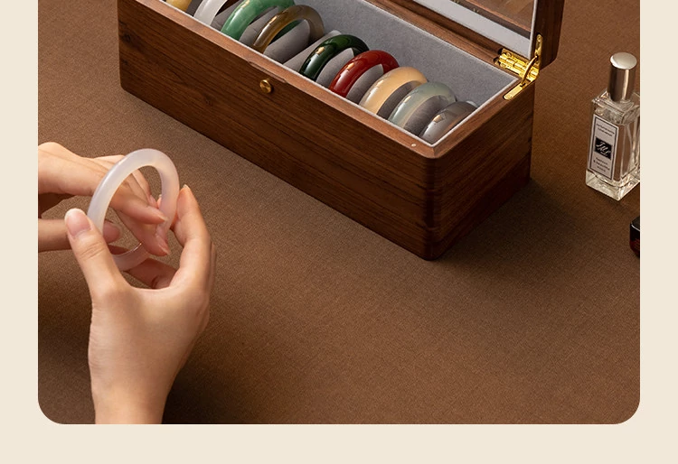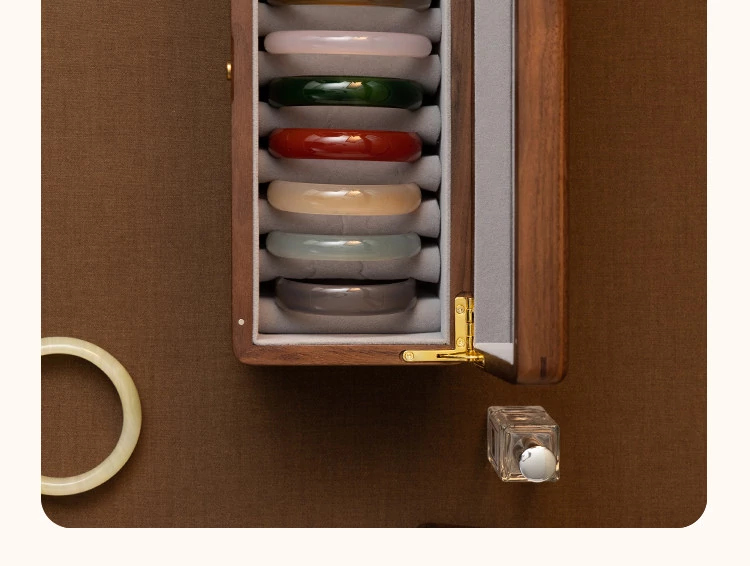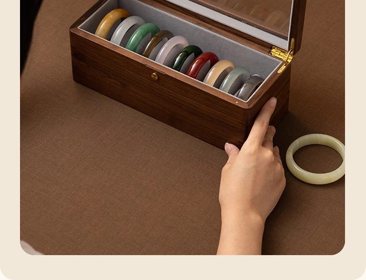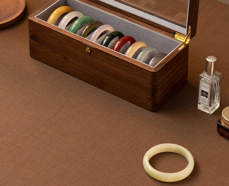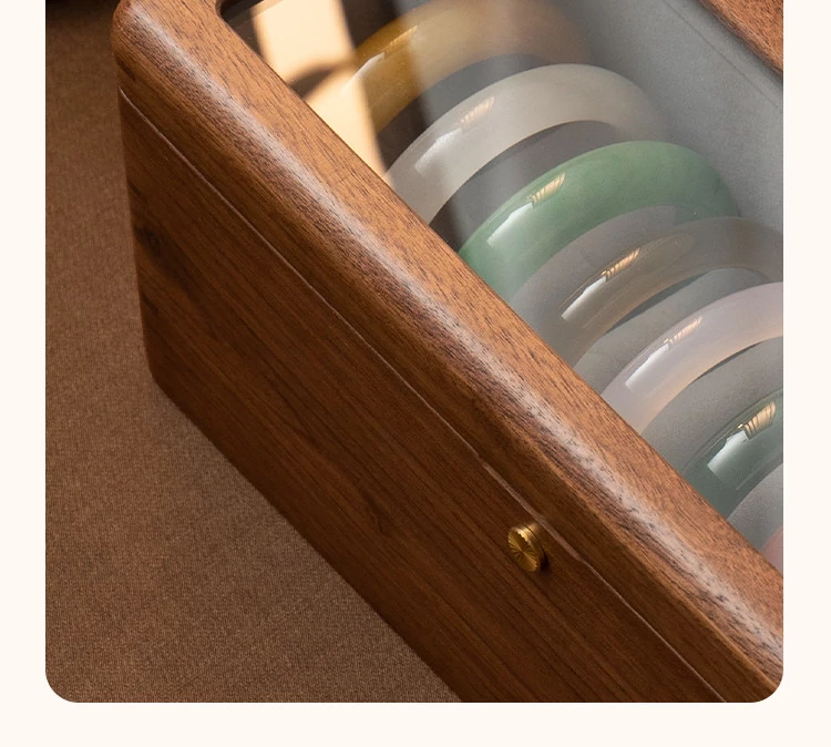 Premium Walnut Wood Storage Box for Jade and Emerald Bracelets - Spacious and Elegant Design for Organizing Your Bangles and Accessories