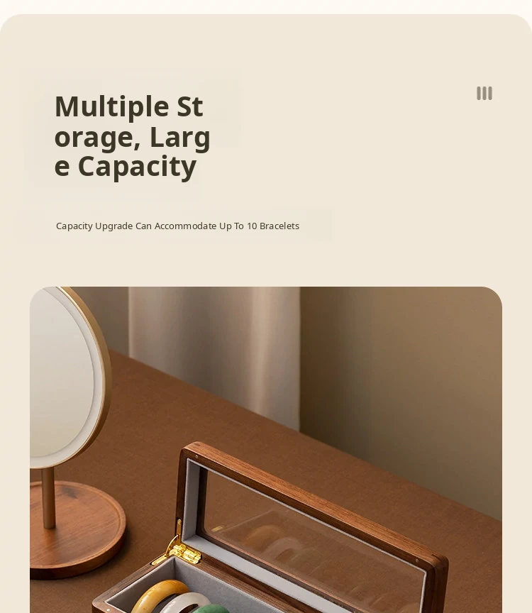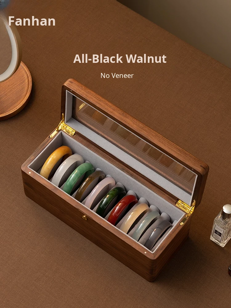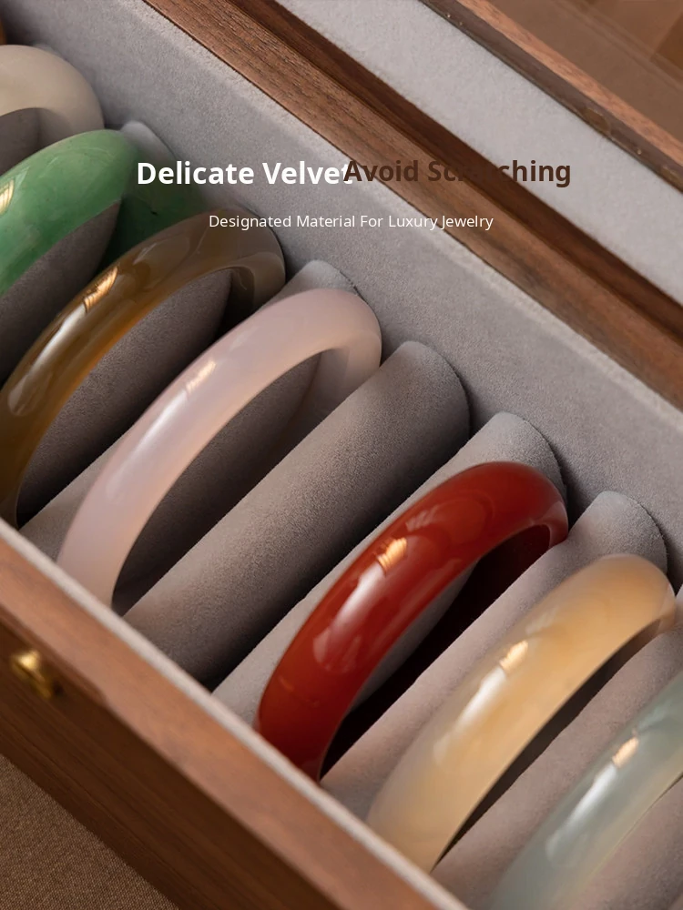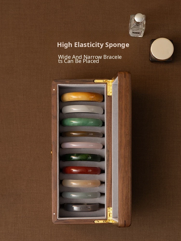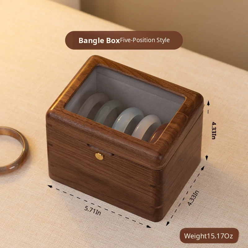 Premium Walnut Wood Storage Box for Jade and Emerald Bracelets - Spacious and Elegant Design for Organizing Your Bangles and Accessories