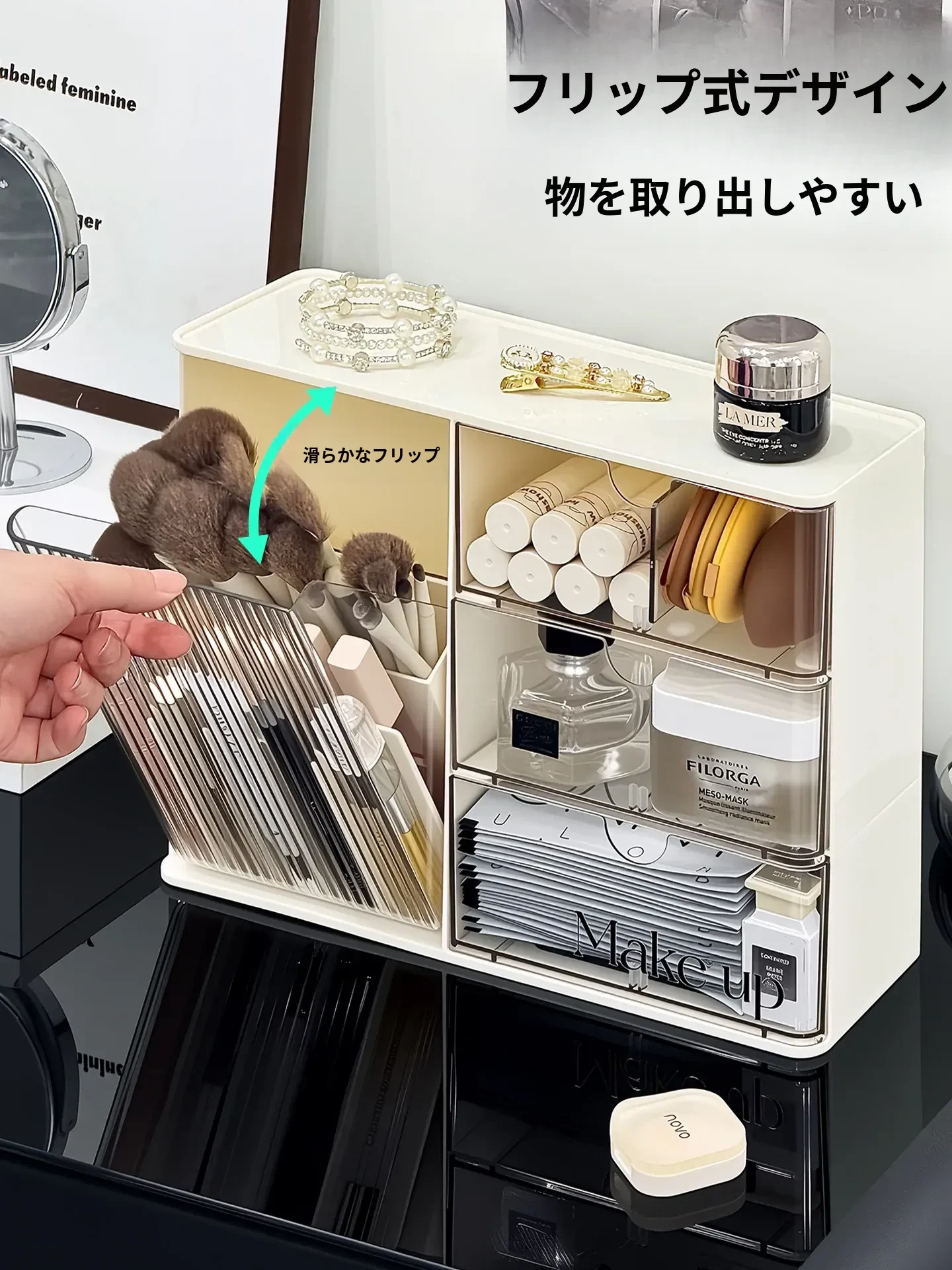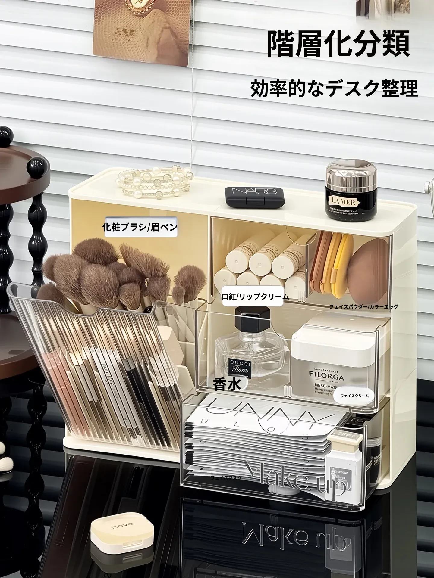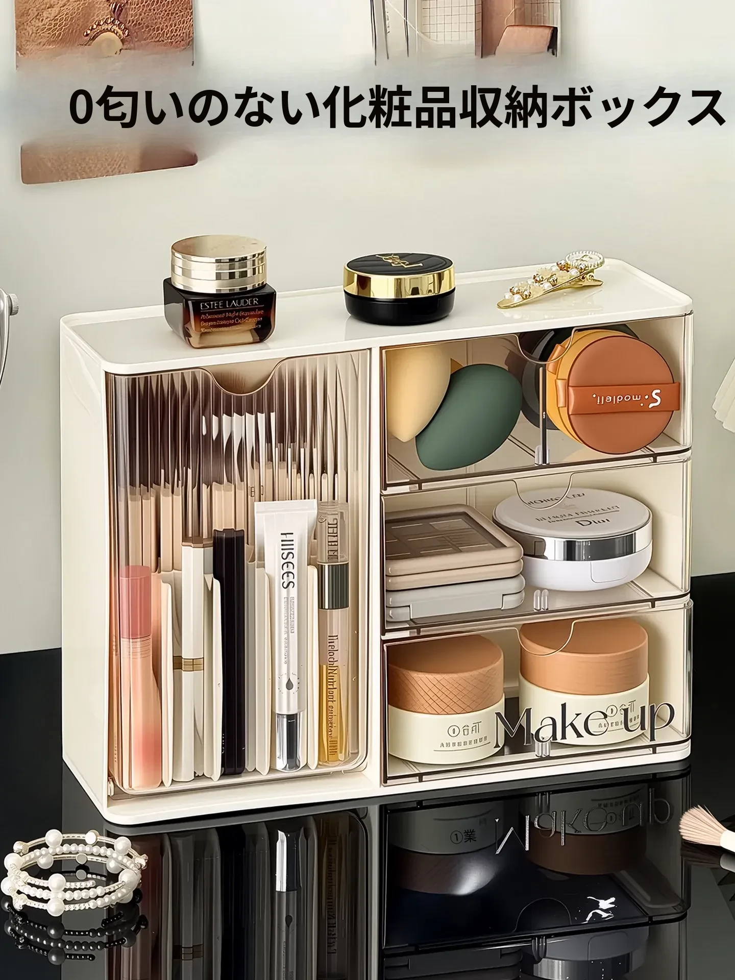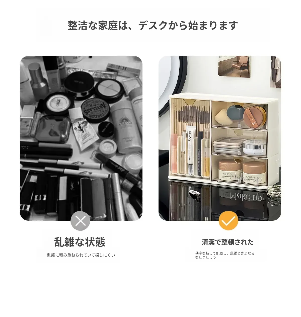 化粧品収納ボックス - デスク上のホコリから守る、メイク台に最適なスキンケアアイテム整理ラック!化粧ブラシや眉ペン、フェイスマスクもすっきり収納!あなたの美しさを引き立てる必需品!