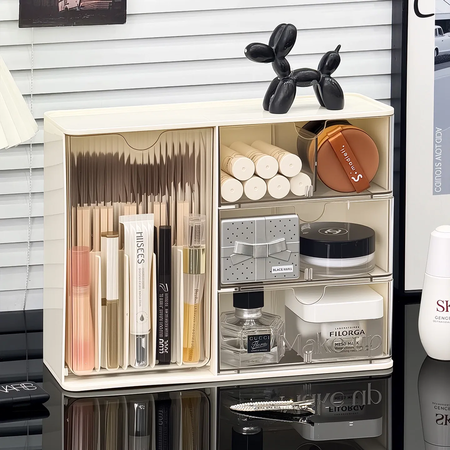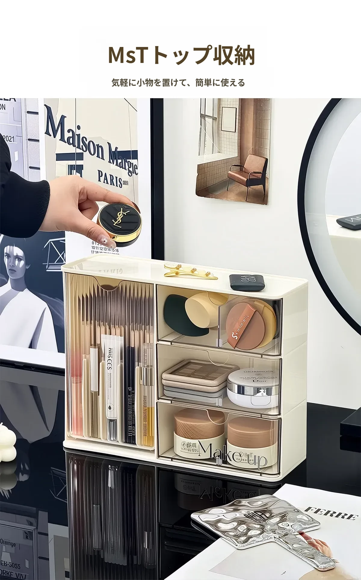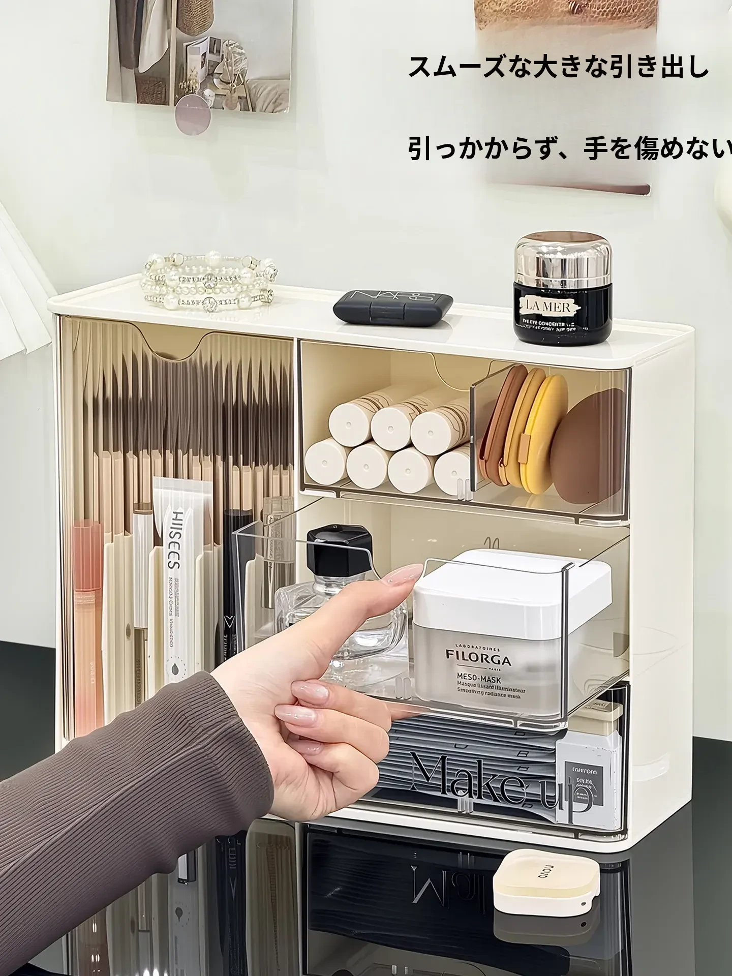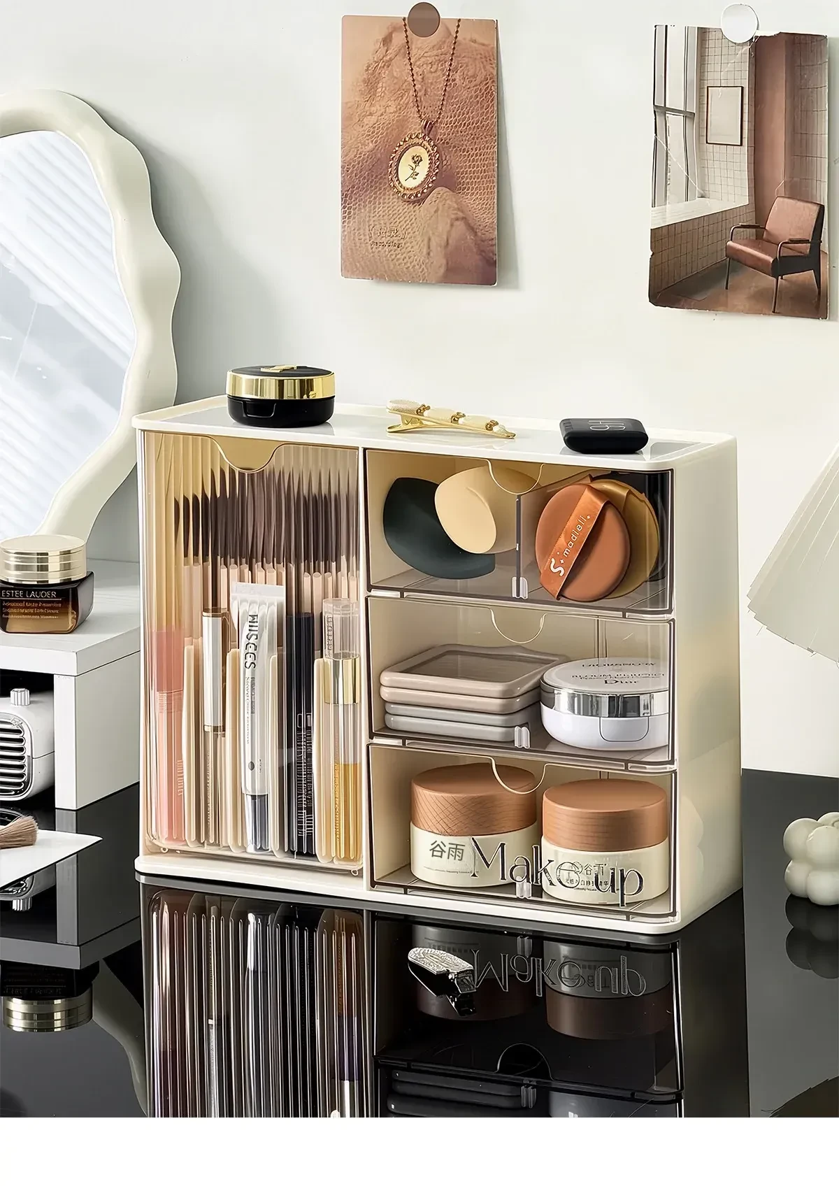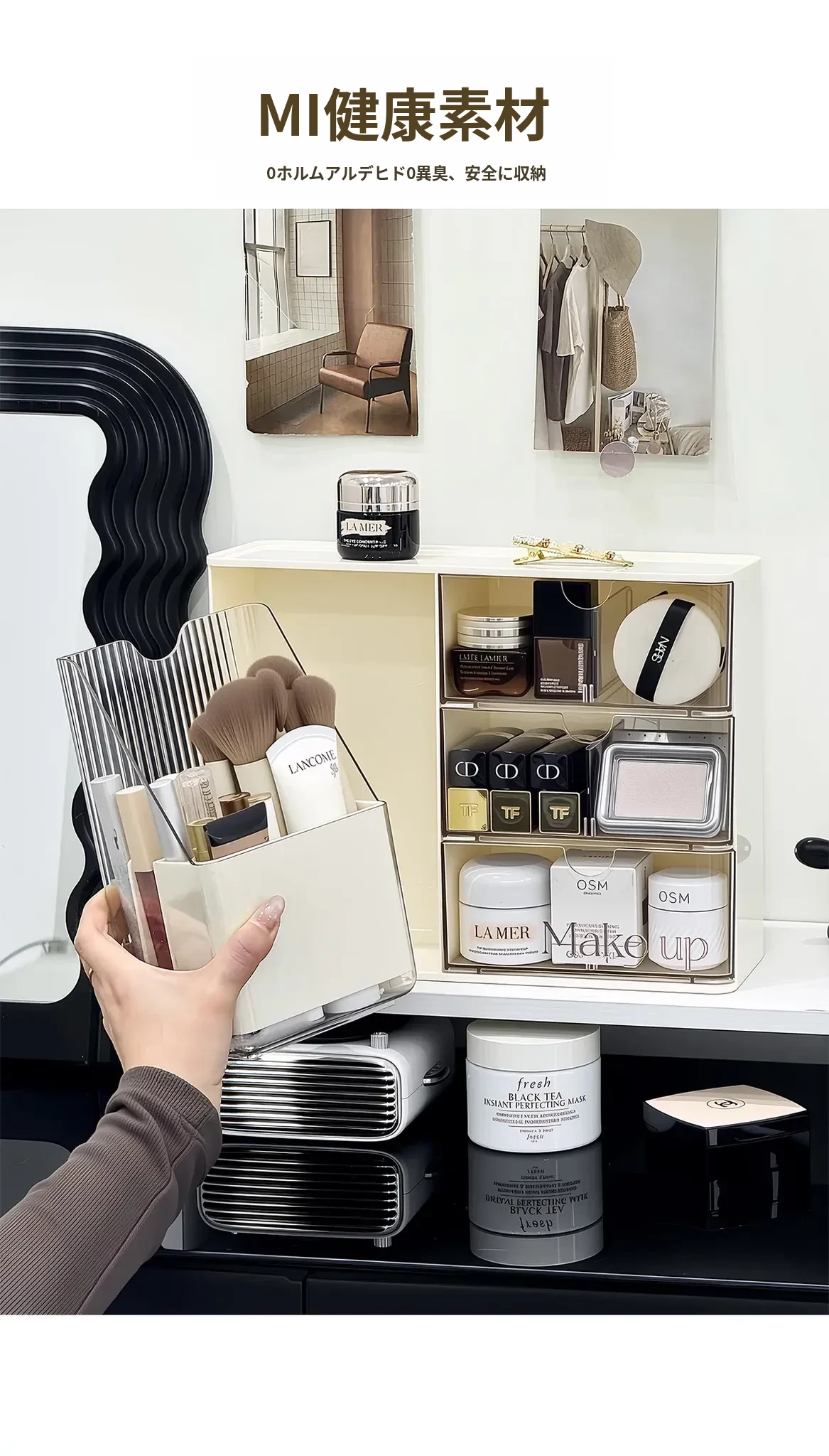 化粧品収納ボックス - デスク上のホコリから守る、メイク台に最適なスキンケアアイテム整理ラック!化粧ブラシや眉ペン、フェイスマスクもすっきり収納!あなたの美しさを引き立てる必需品!