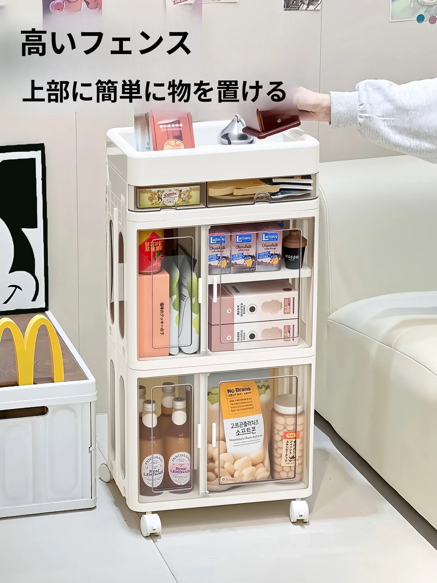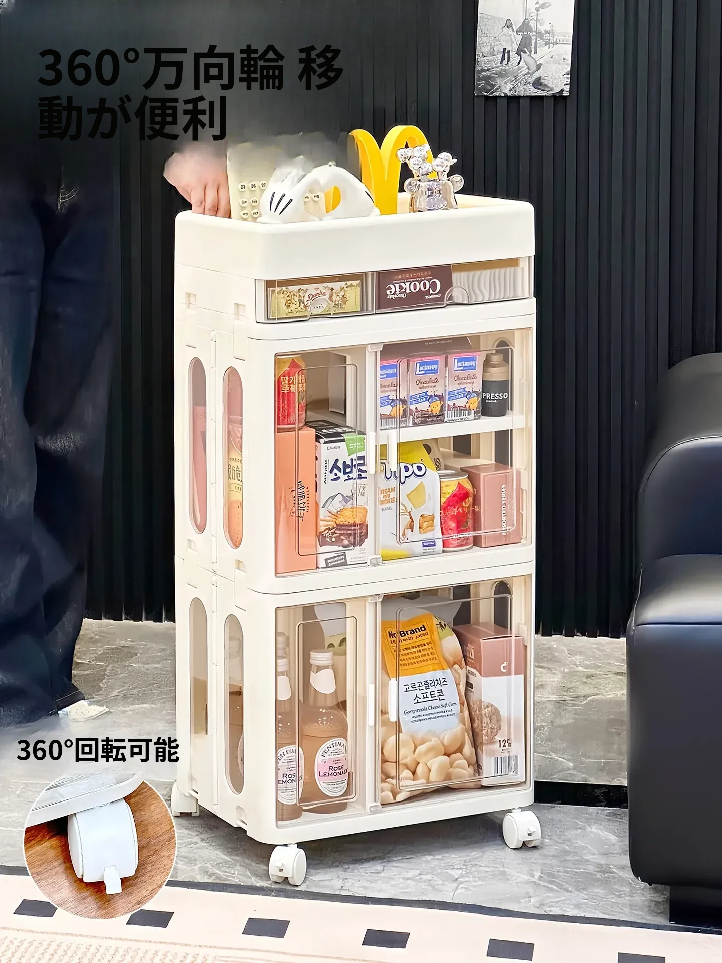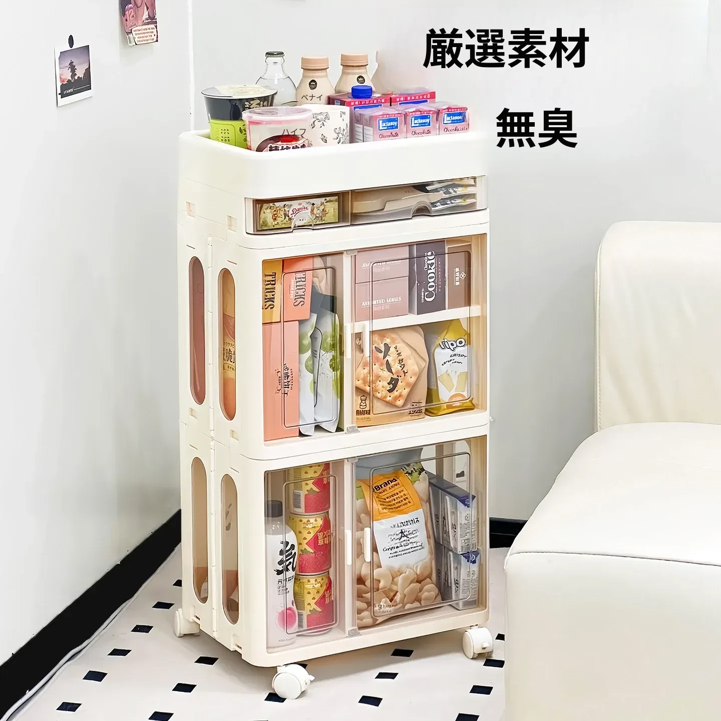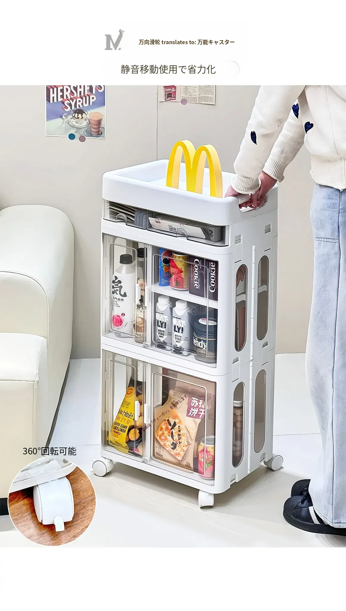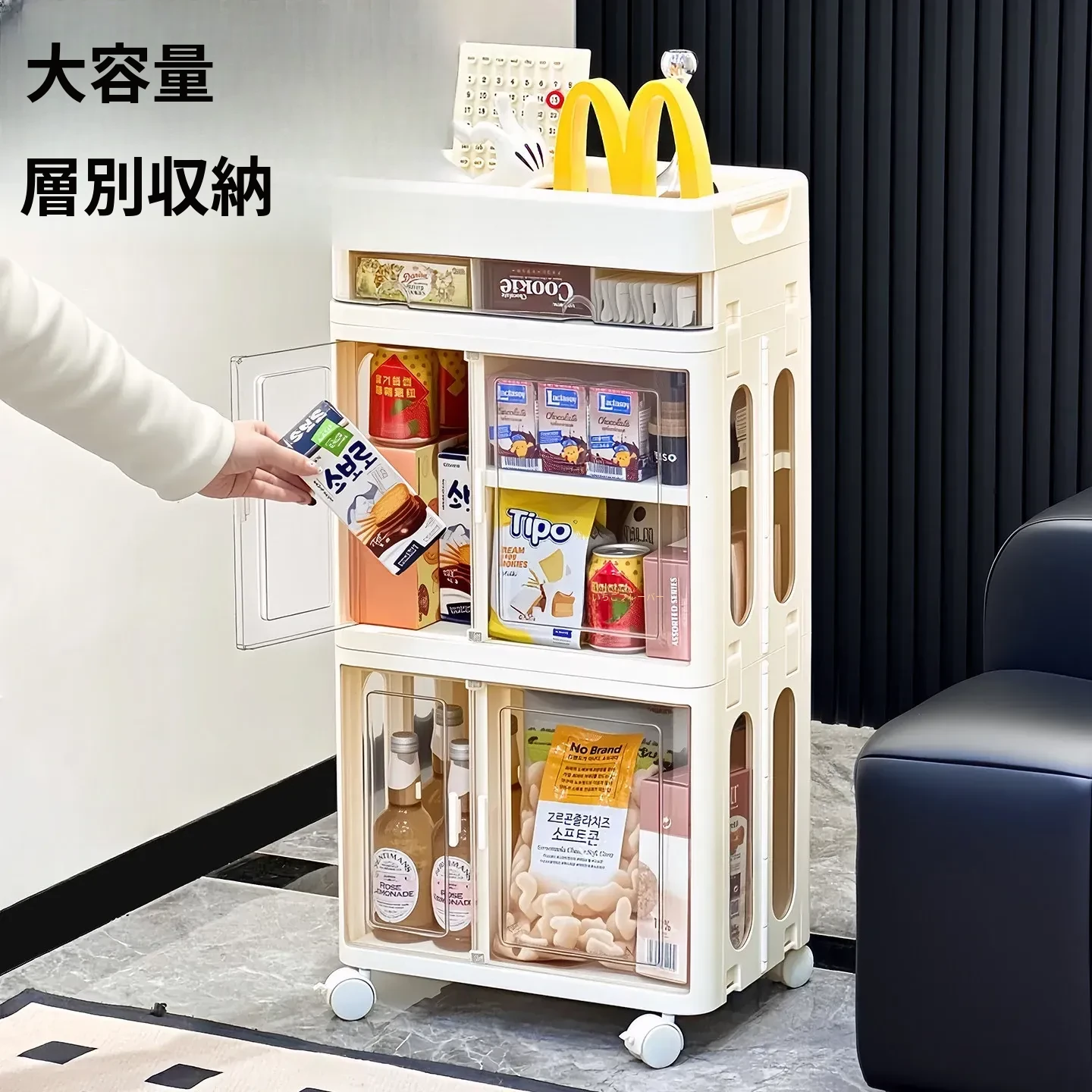 おしゃれな多層移動式スナック収納カート - 家庭用・リビングにぴったりの高品質おもちゃ整理ラック!お部屋をスッキリ整頓し、使いやすさとデザイン性を両立。
