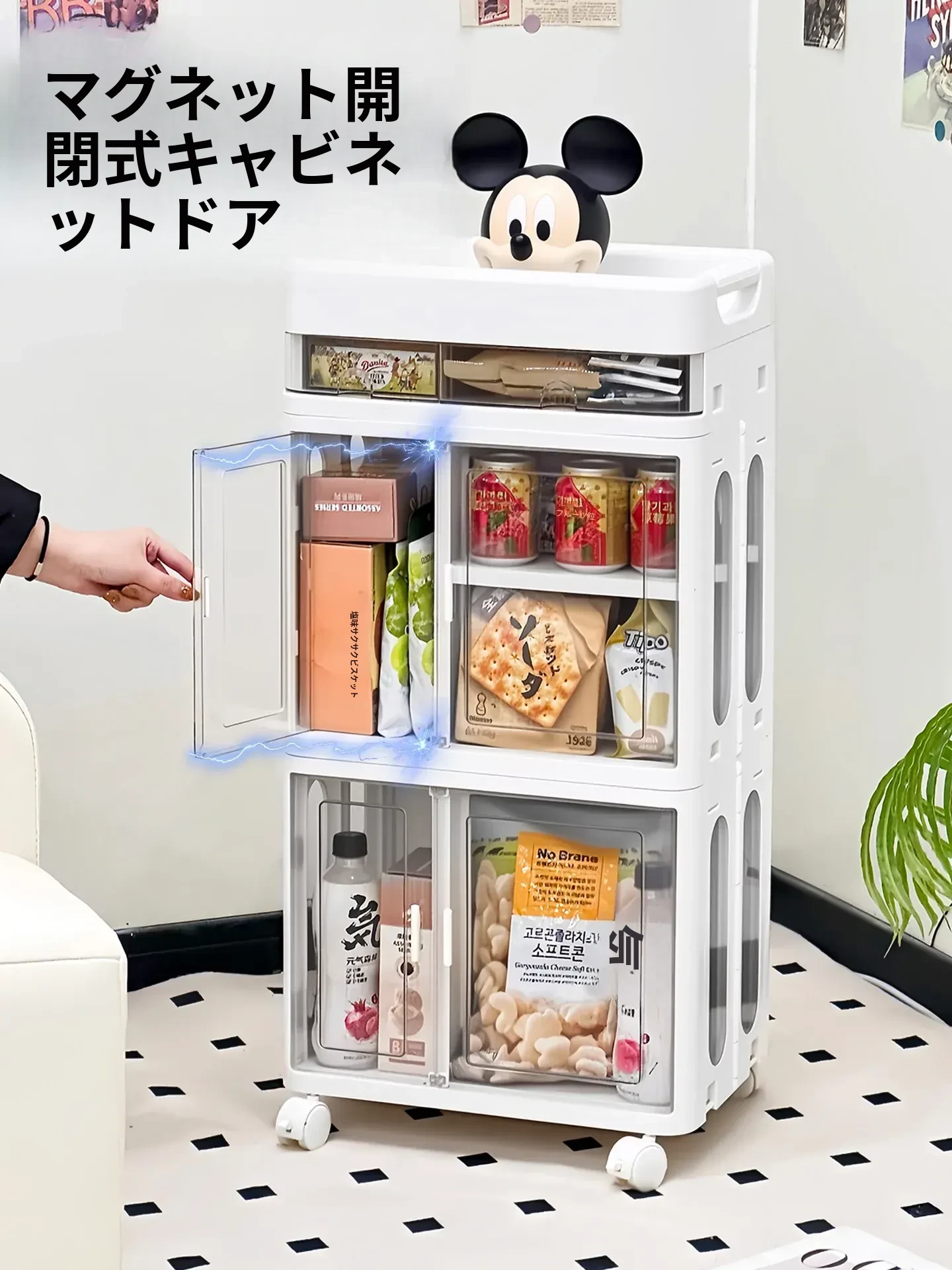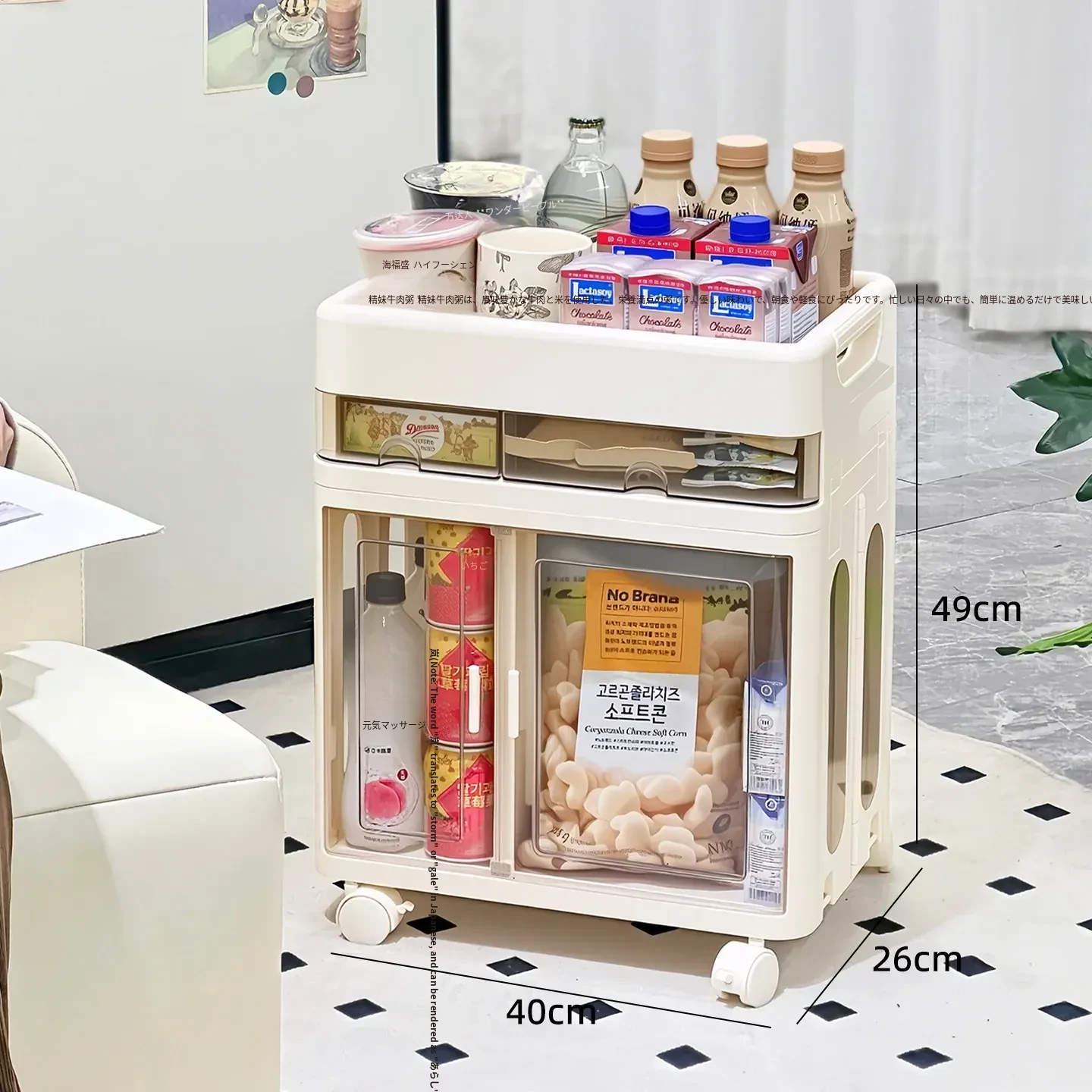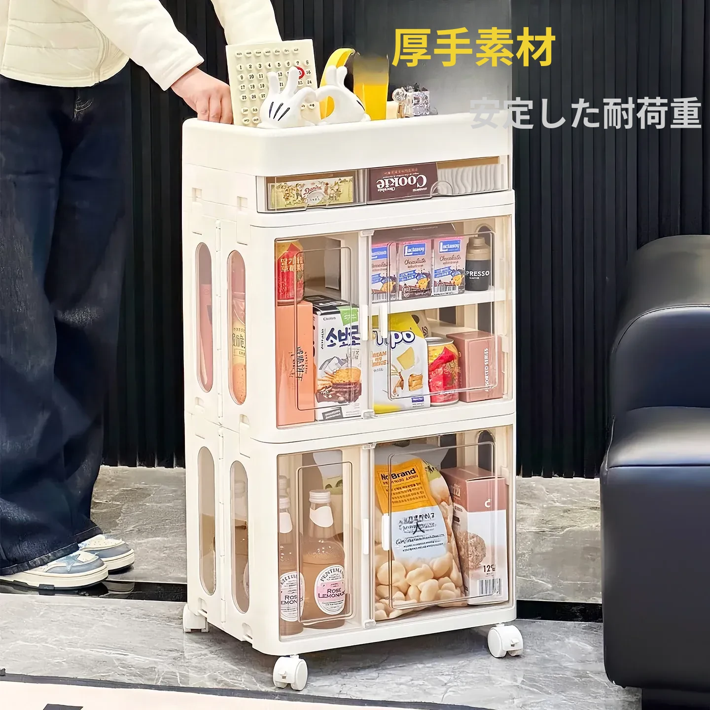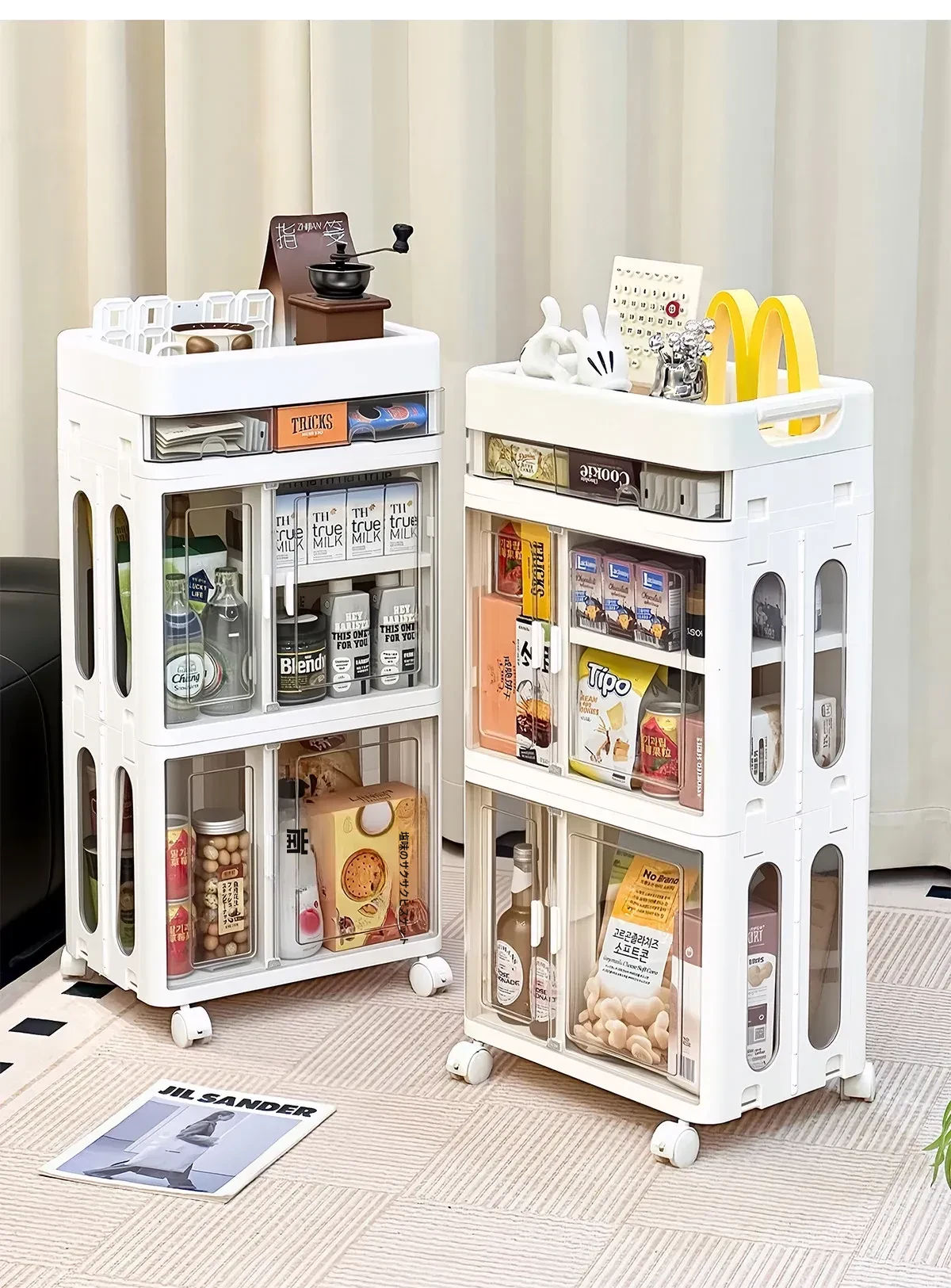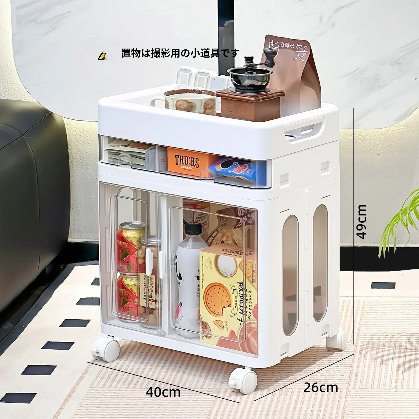 おしゃれな多層移動式スナック収納カート - 家庭用・リビングにぴったりの高品質おもちゃ整理ラック!お部屋をスッキリ整頓し、使いやすさとデザイン性を両立。