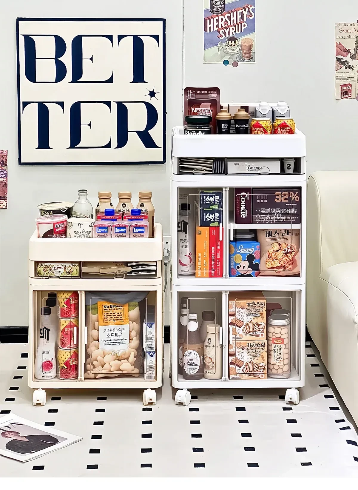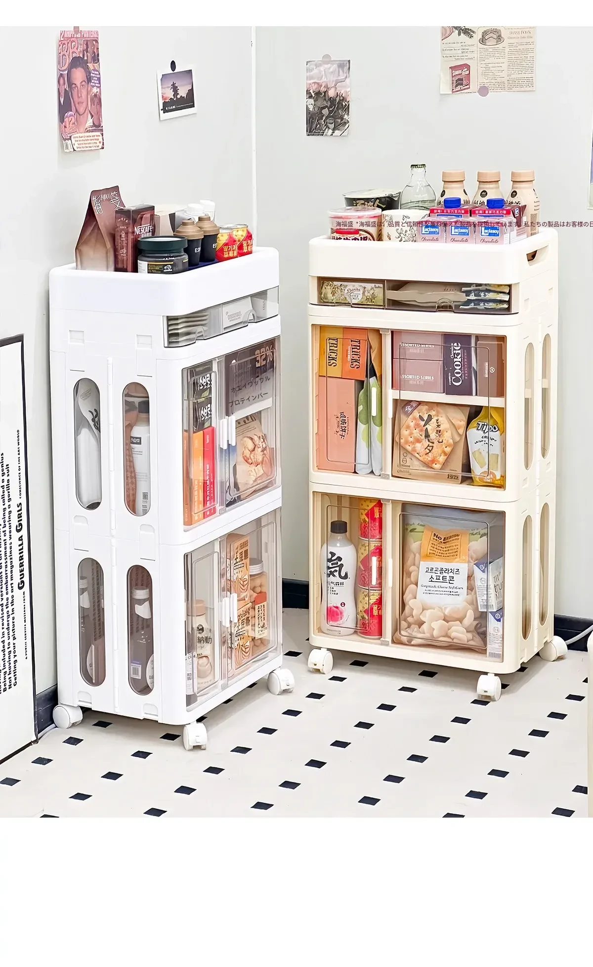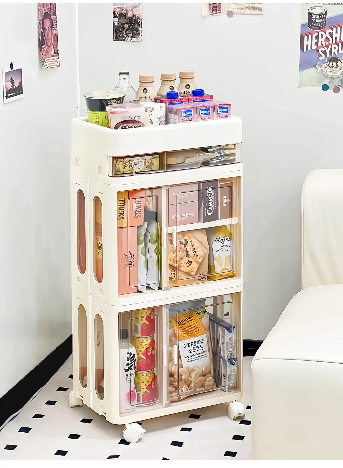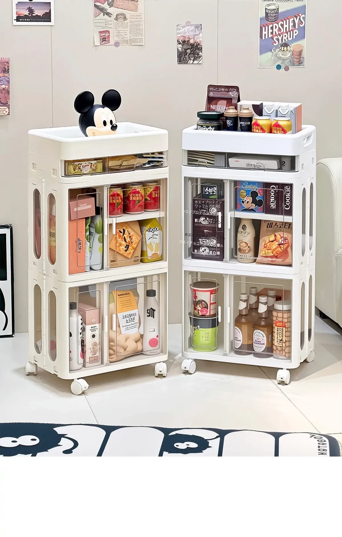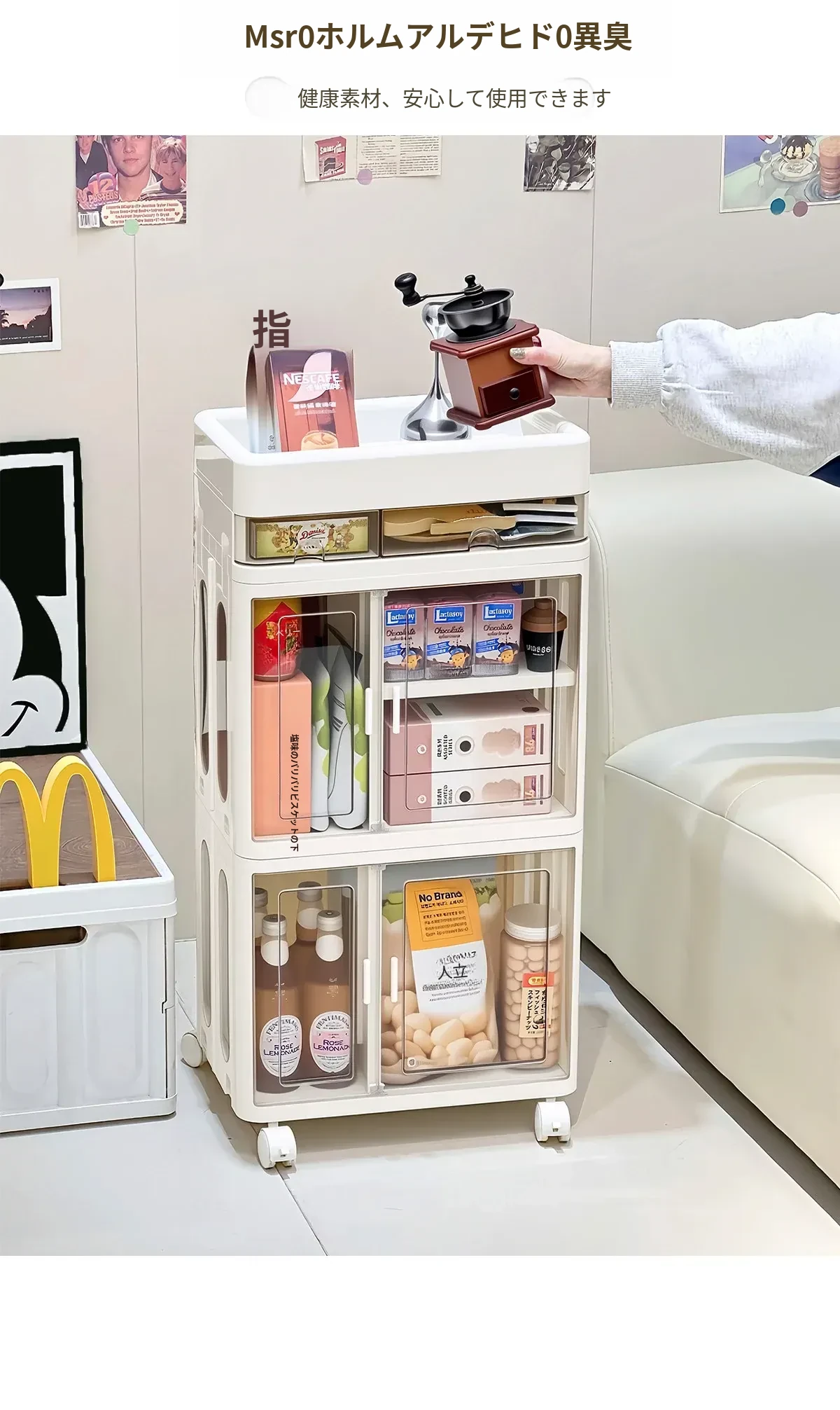 おしゃれな多層移動式スナック収納カート - 家庭用・リビングにぴったりの高品質おもちゃ整理ラック!お部屋をスッキリ整頓し、使いやすさとデザイン性を両立。