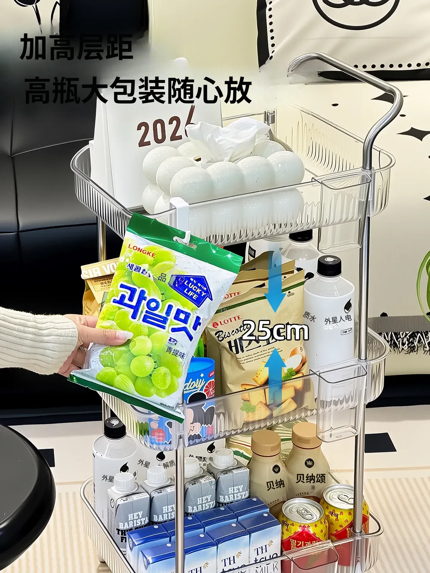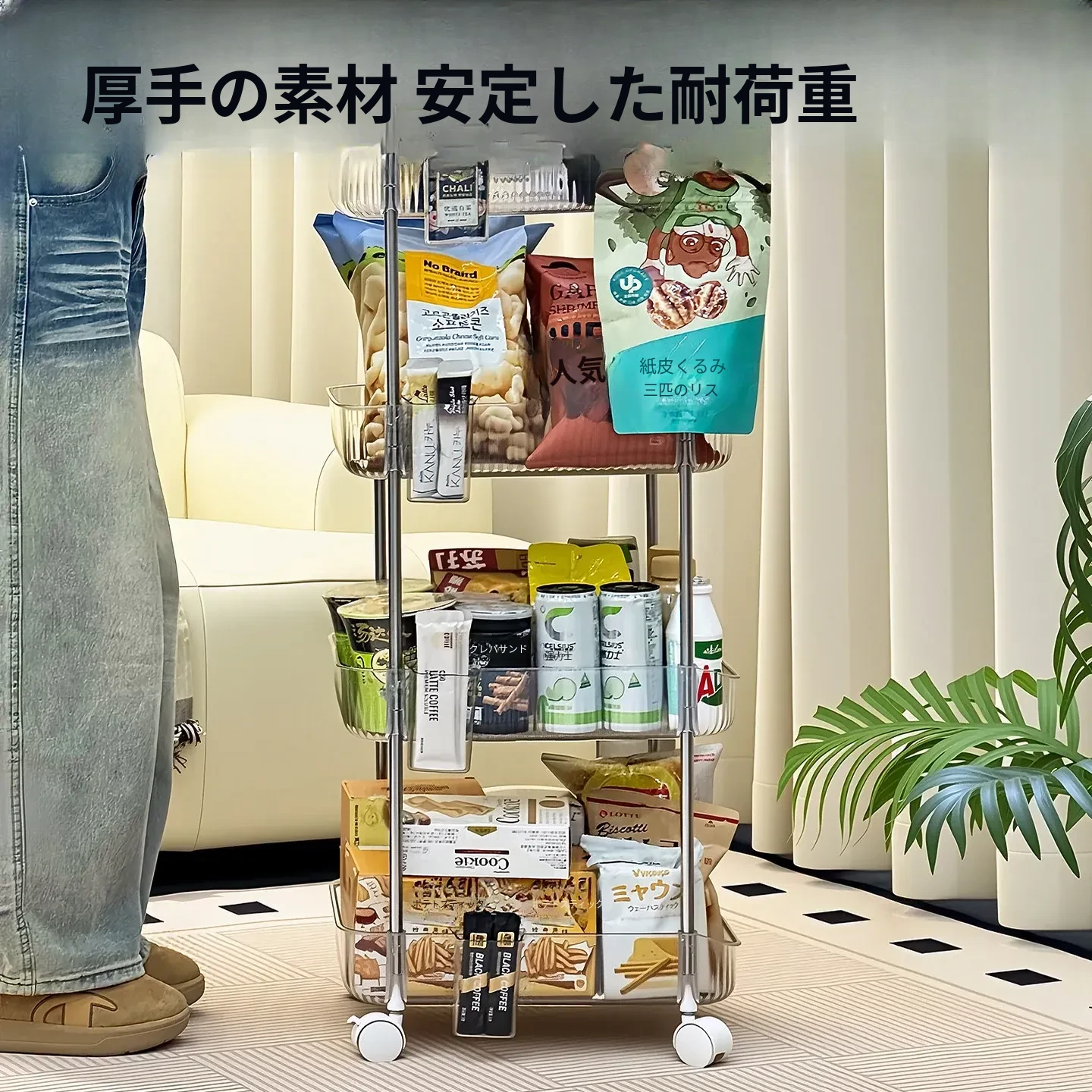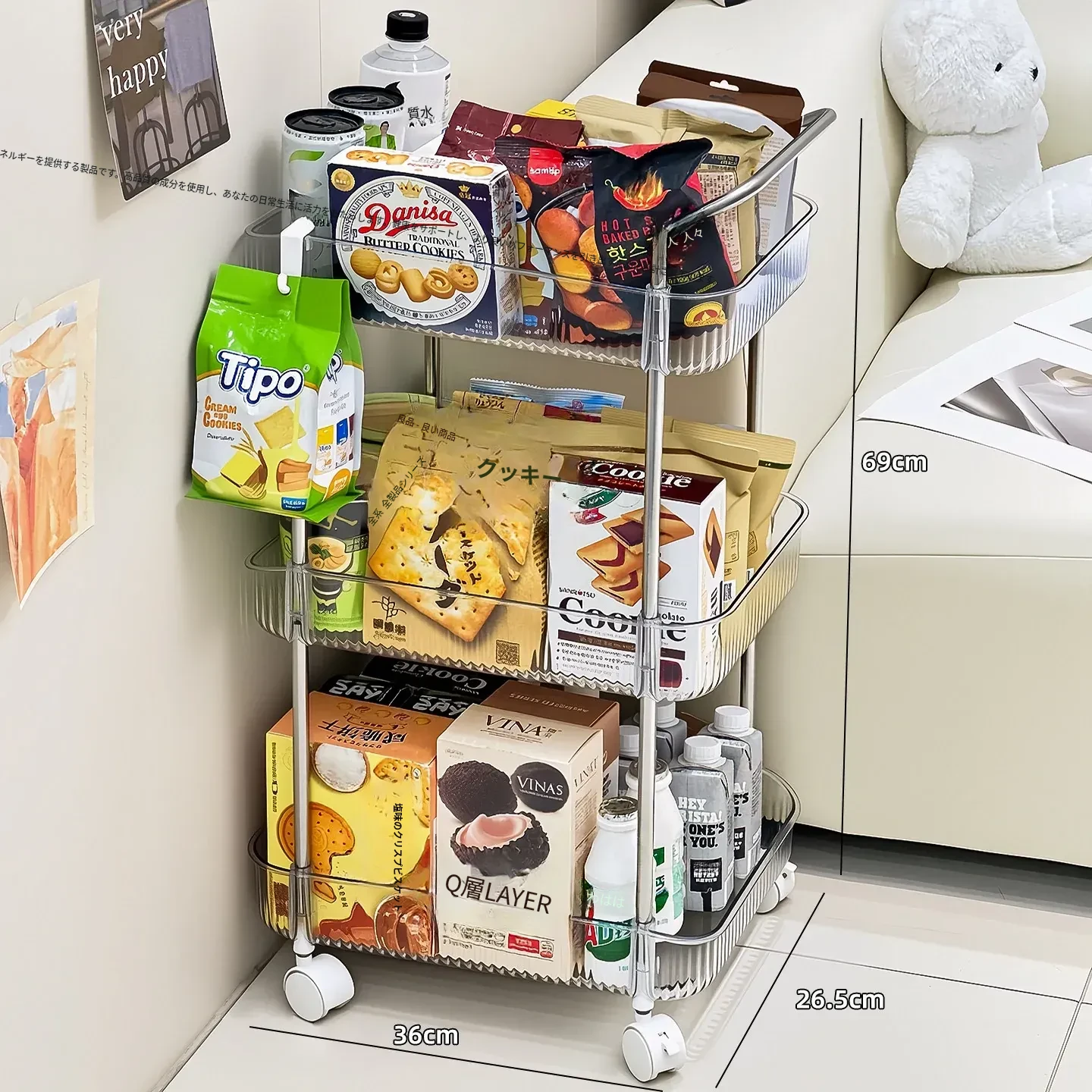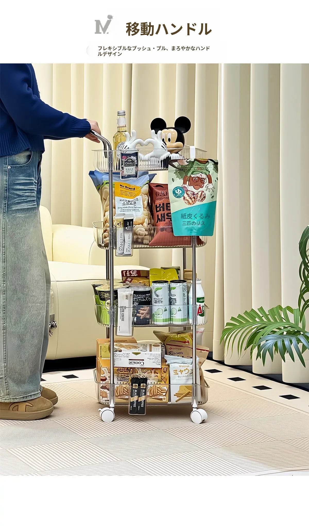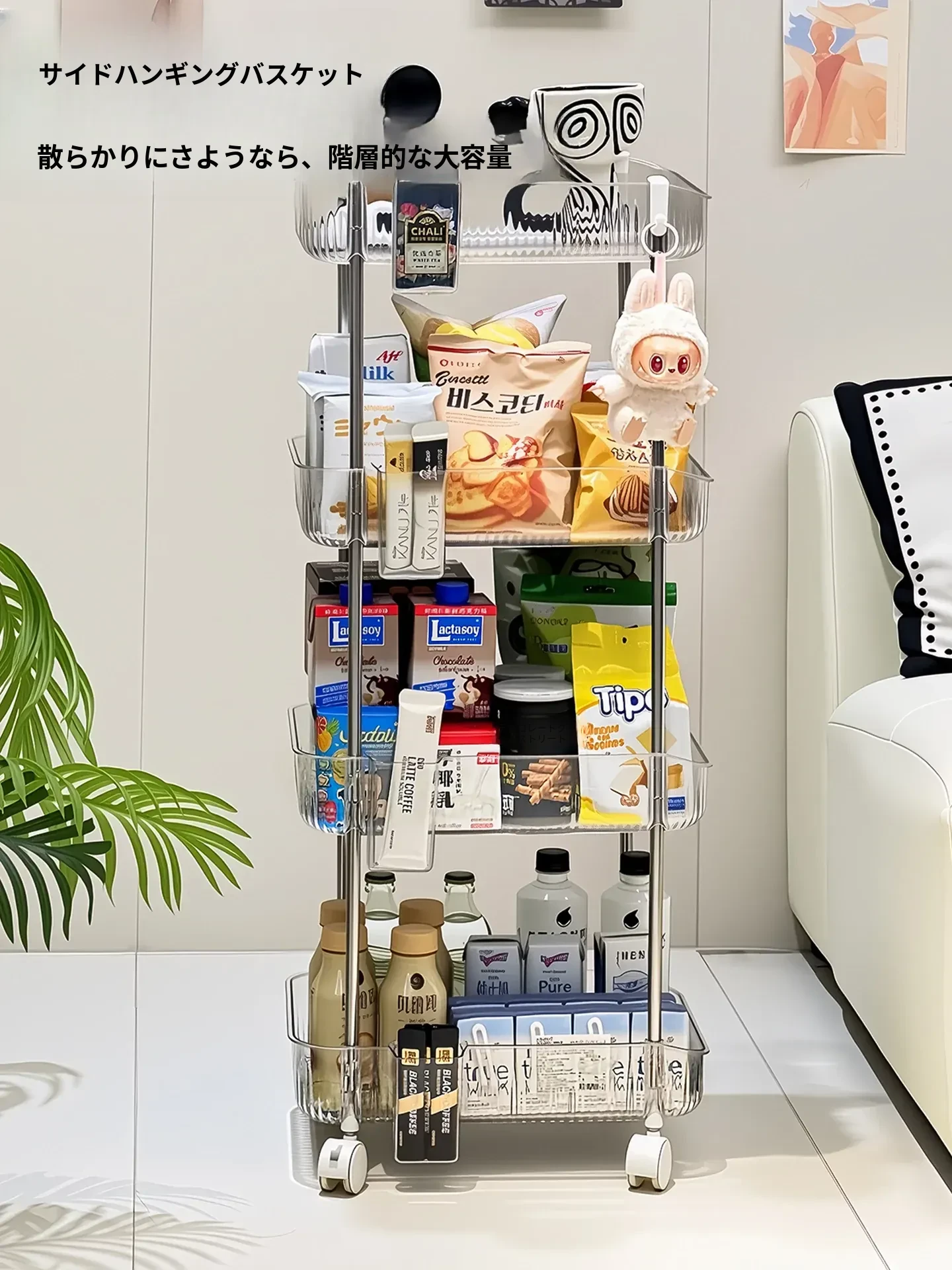 おしゃれで便利な多段式移動式スナック収納カート!家中どこでも使える大容量のおもちゃや小物整理ラック。あなたの生活空間をスッキリと美しく整えましょう!