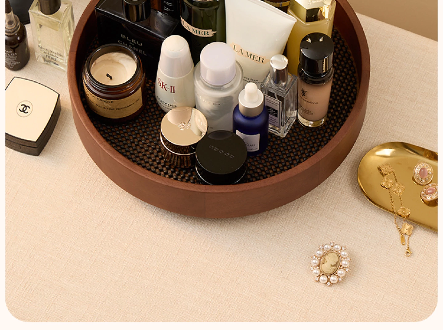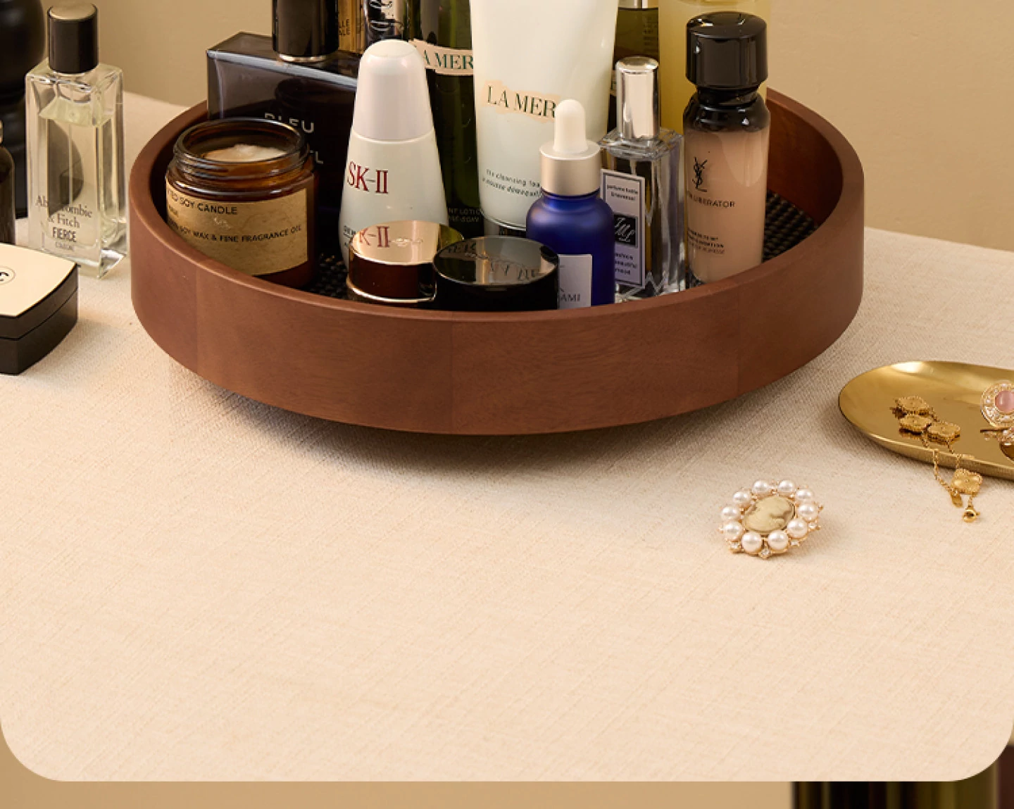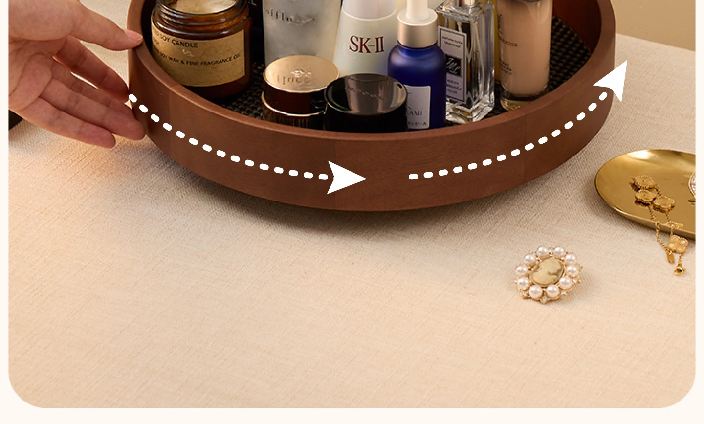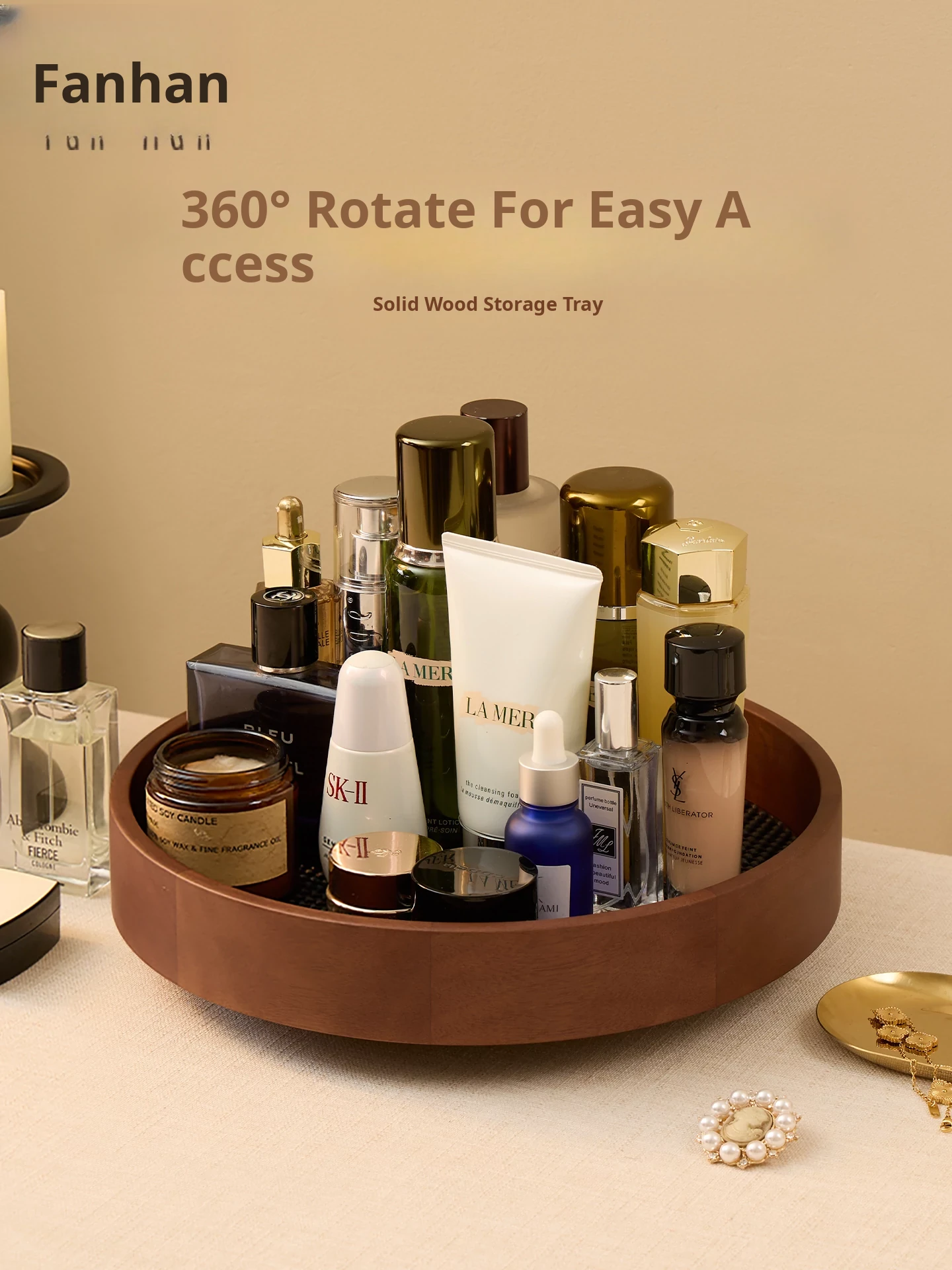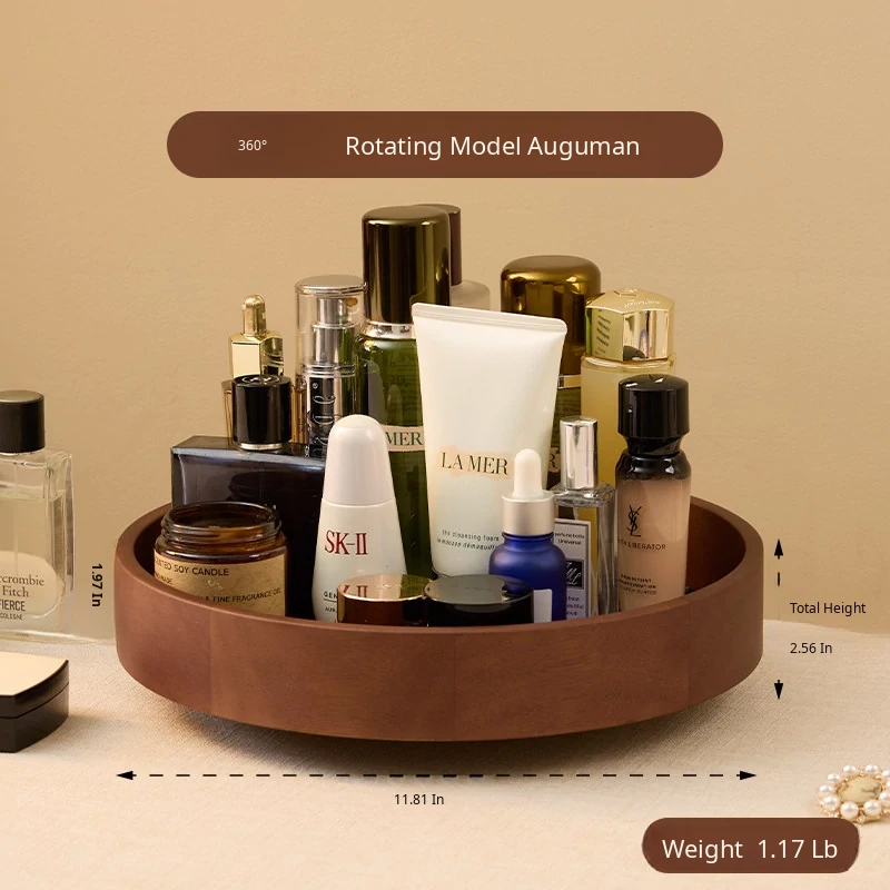 Vanhan 2025 New Rotating Cosmetic Organizer - Elegant Wooden Tray for Makeup, Perfume, and Skincare Products. Perfect for Your Vanity!
