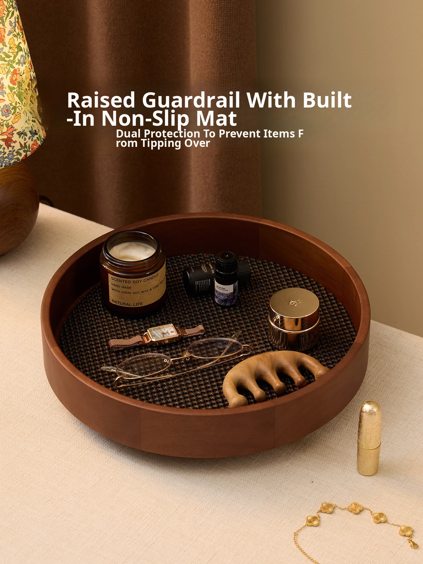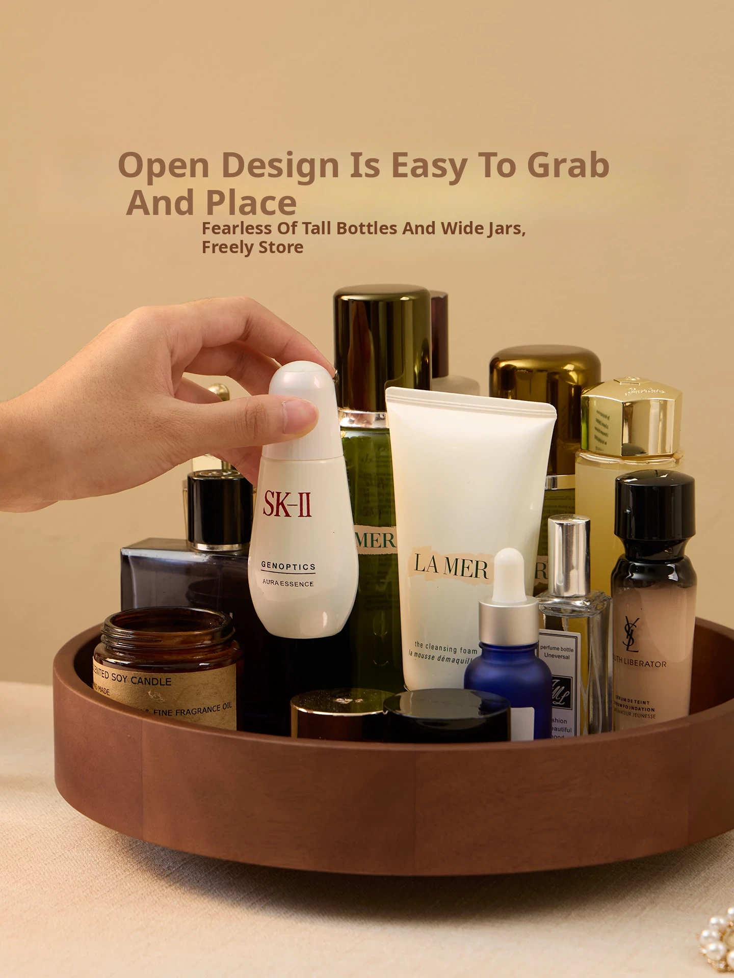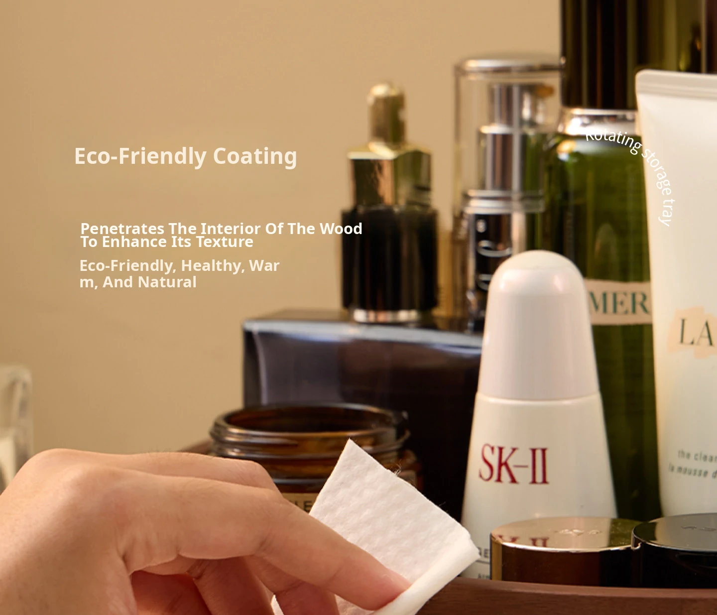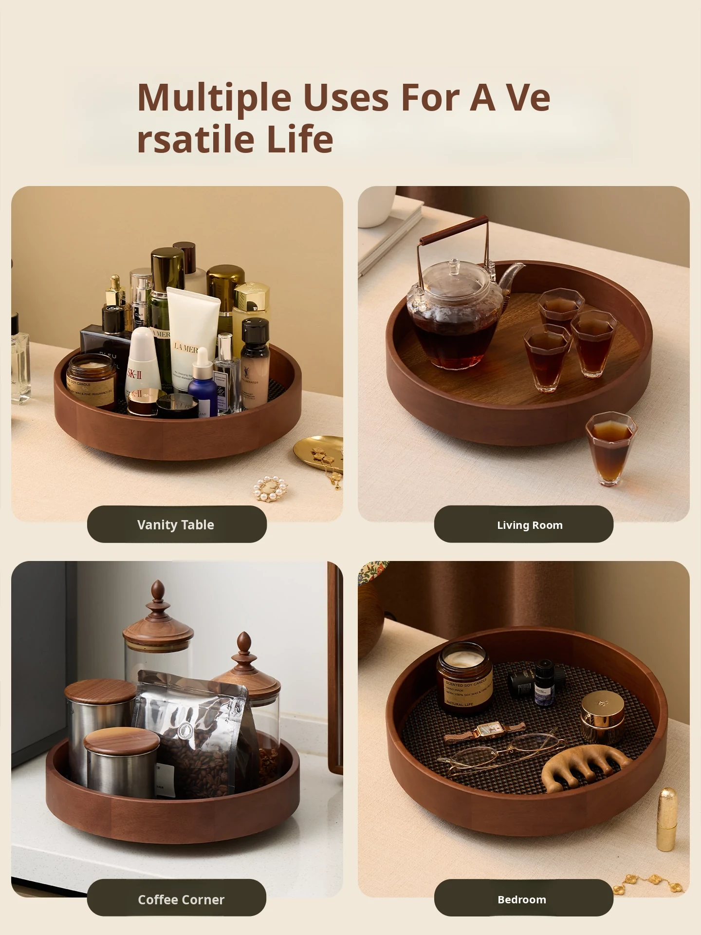 Vanhan 2025 New Rotating Cosmetic Organizer - Elegant Wooden Tray for Makeup, Perfume, and Skincare Products. Perfect for Your Vanity!