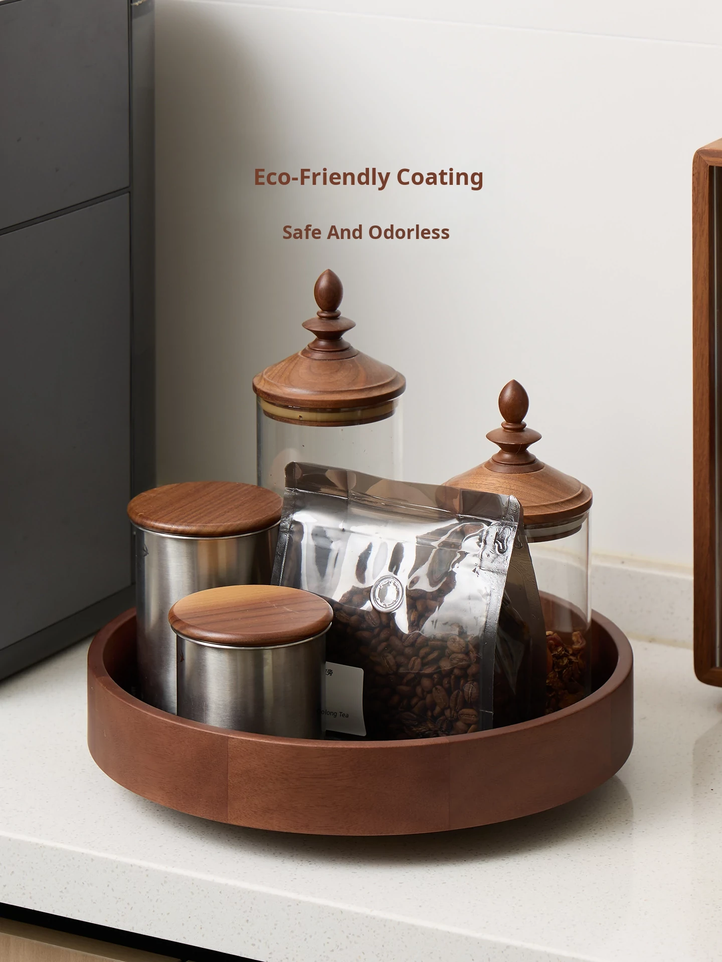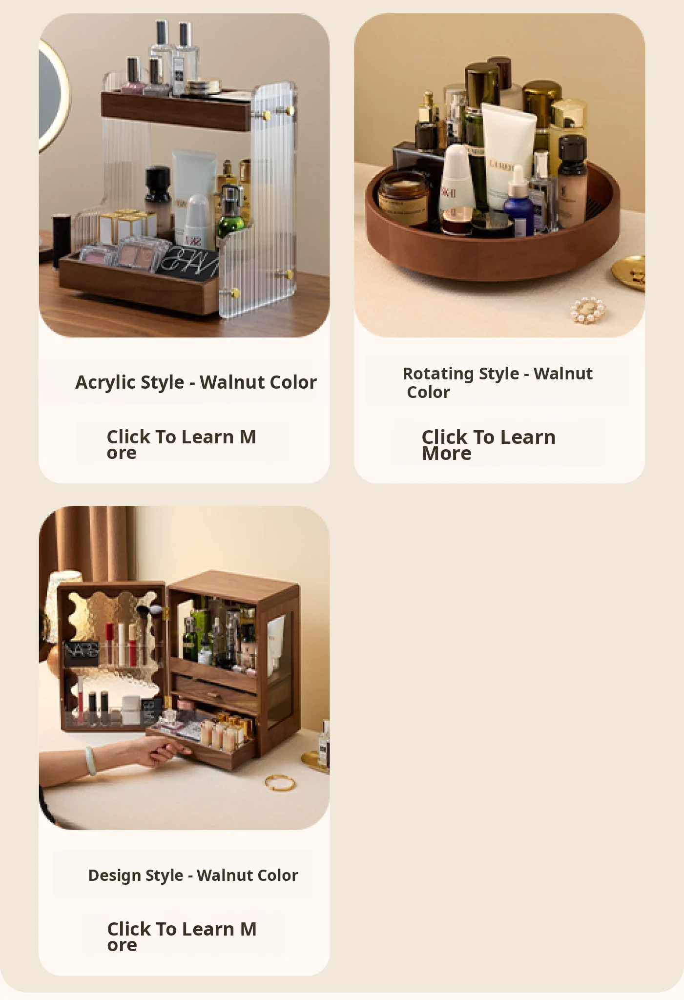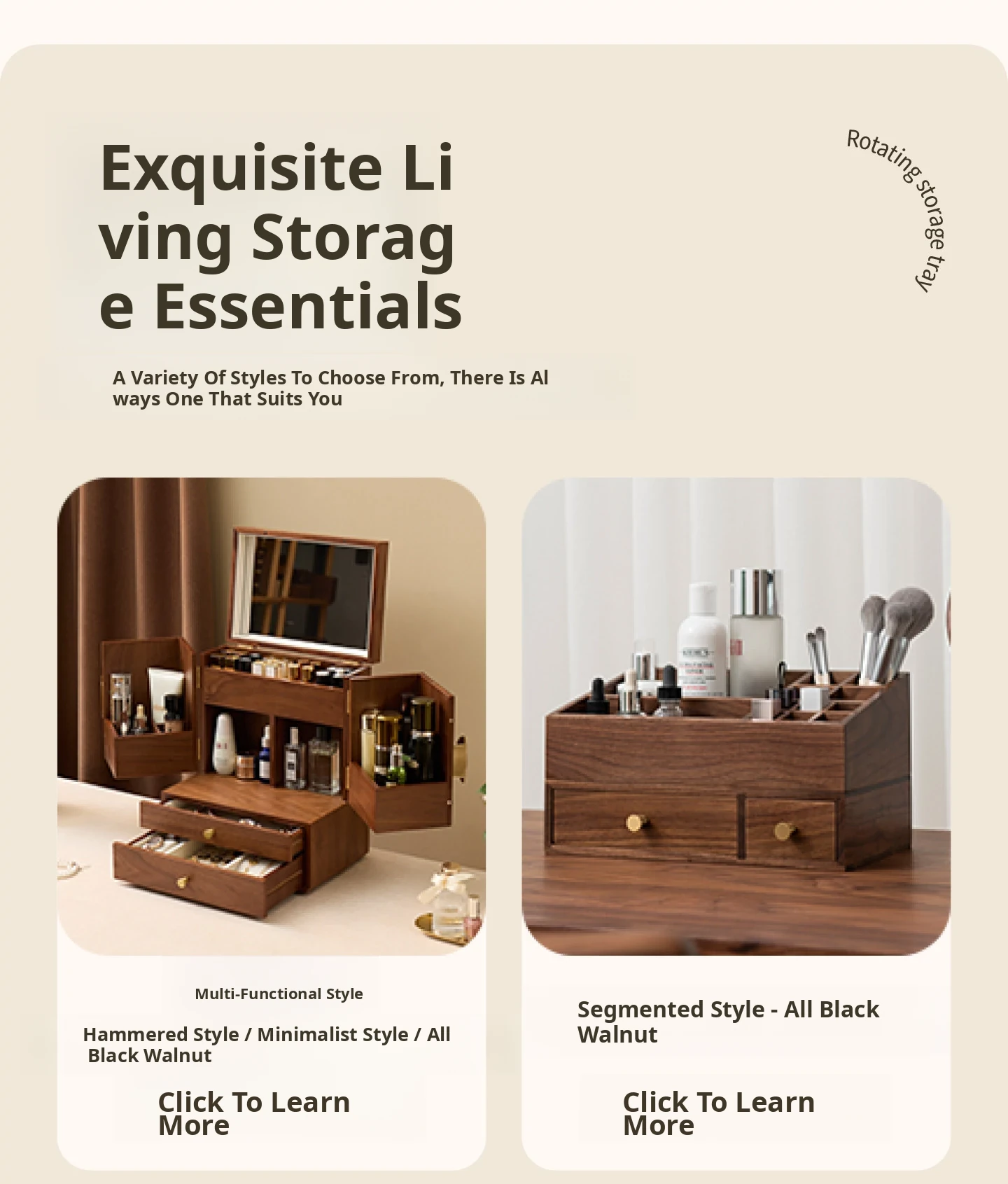 Round Makeup Organizer - Minimalist Design - North American Black Walnut