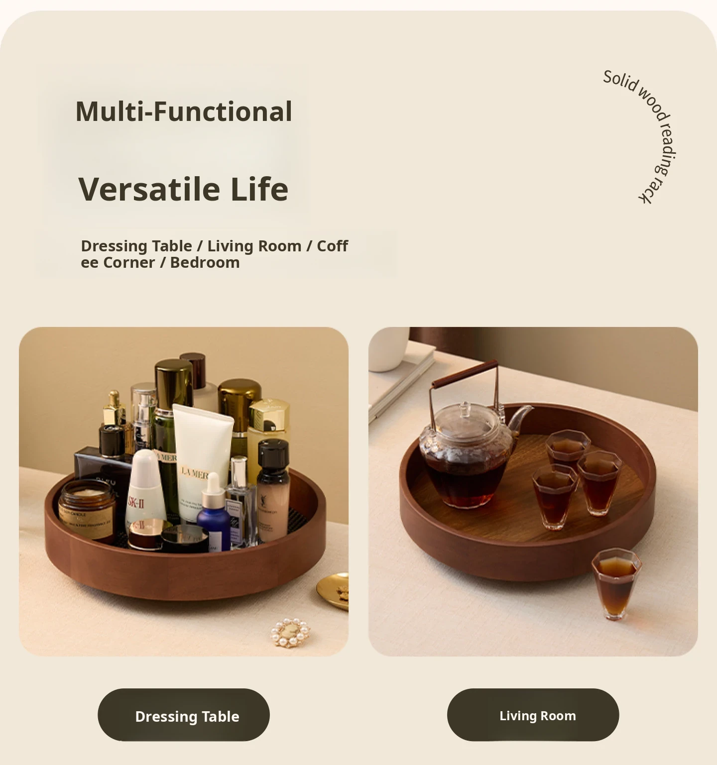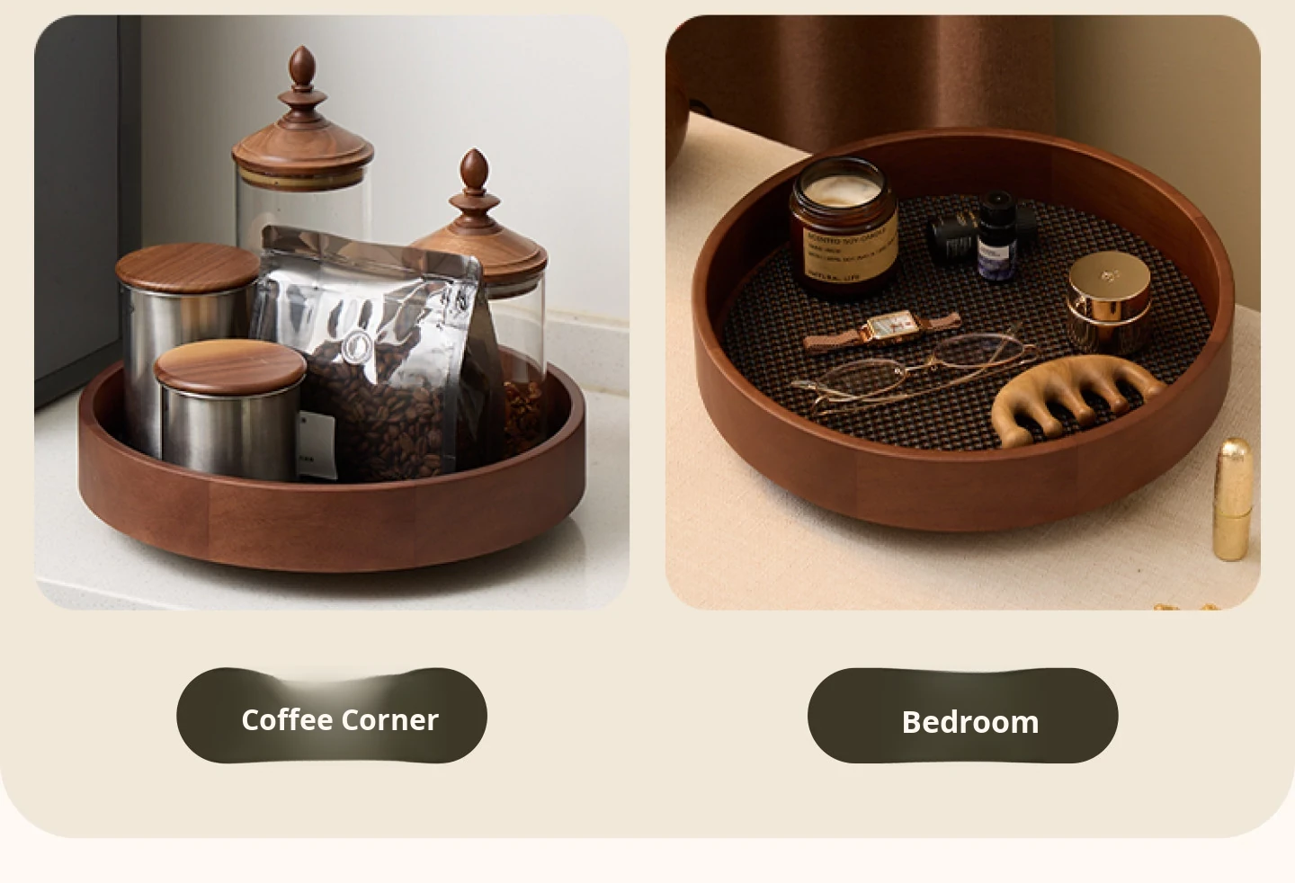 Round Makeup Tray Okoume Wood