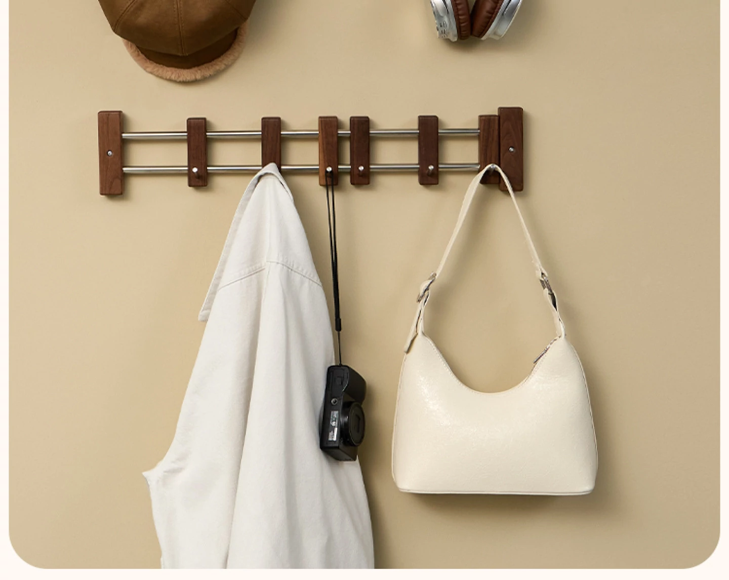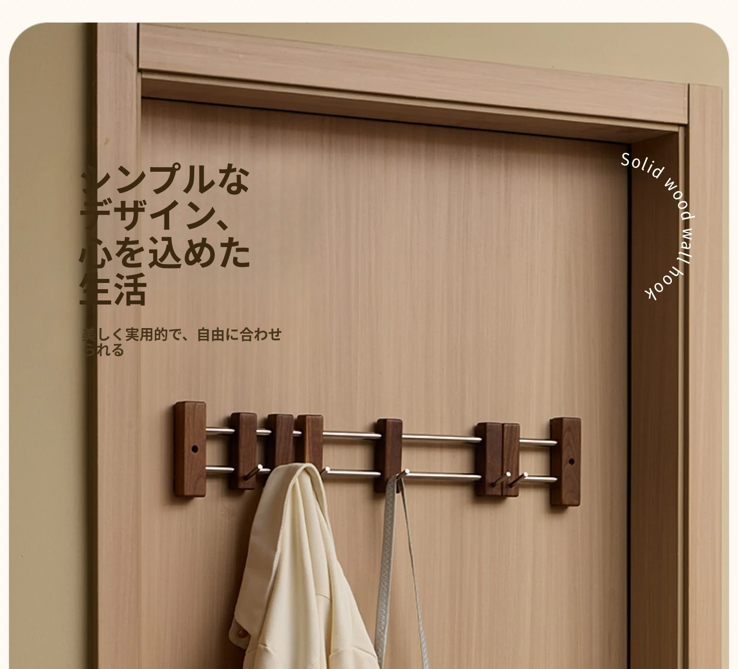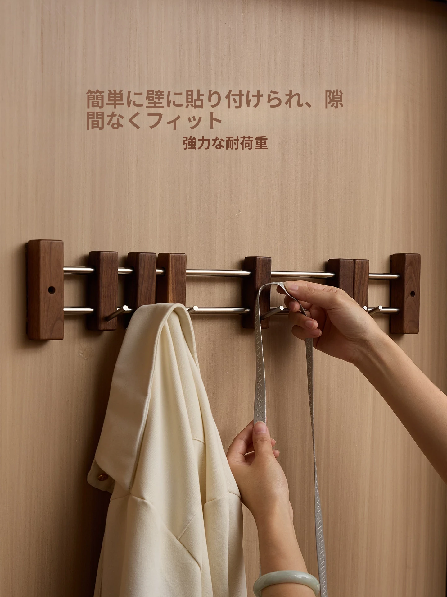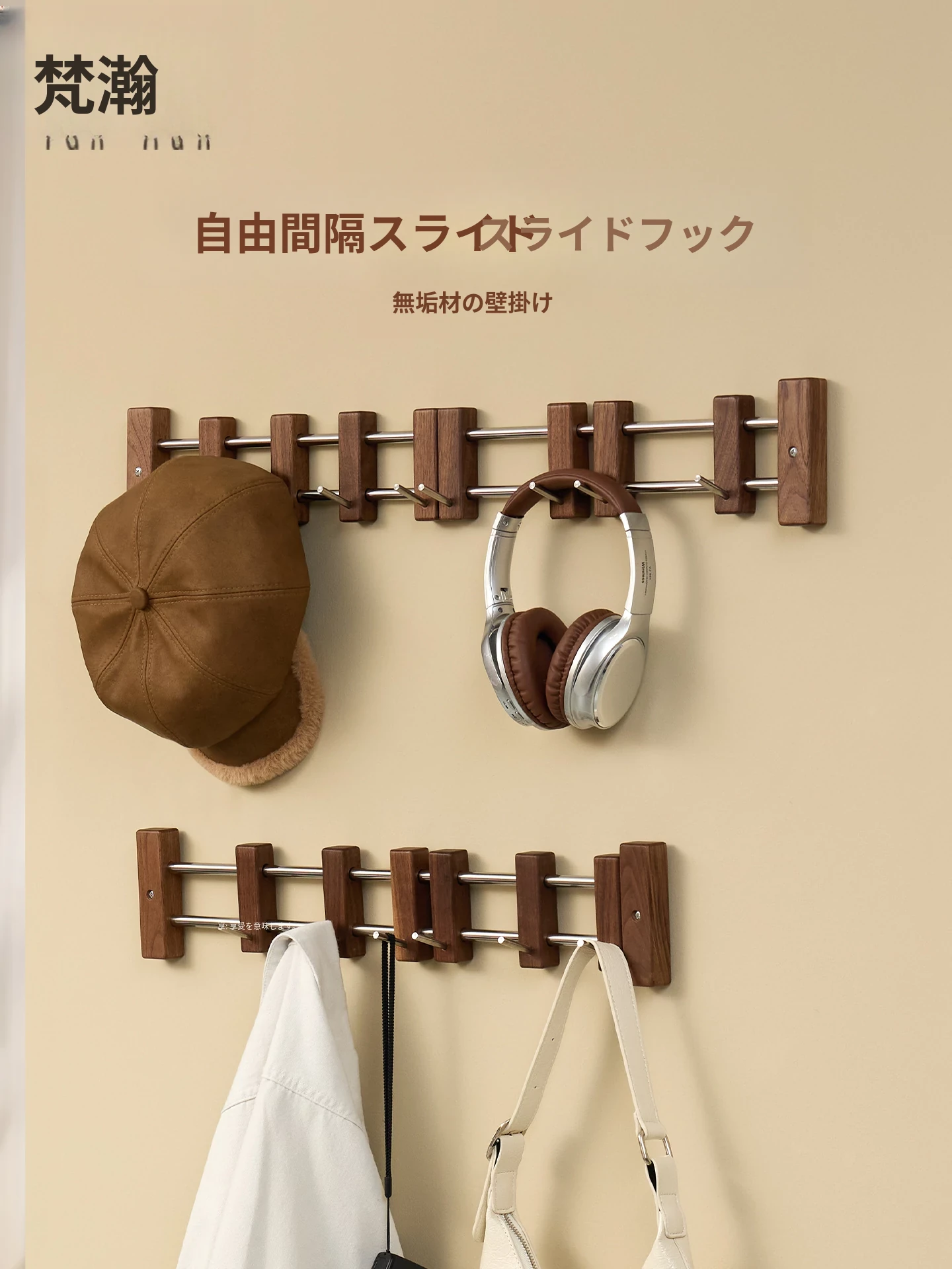 ヴァンハン スライド式フック ブラックウォールナット 壁掛けコートフック ドア裏粘着フック 穴なし玄関用コート&帽子ラック - スタイリッシュで機能的、あなたの玄関を美しく整理整頓!